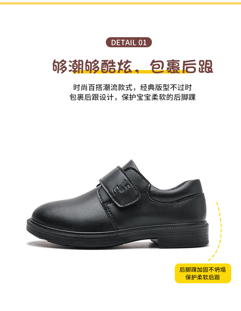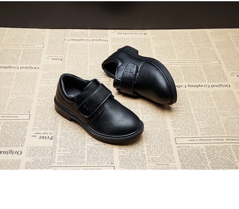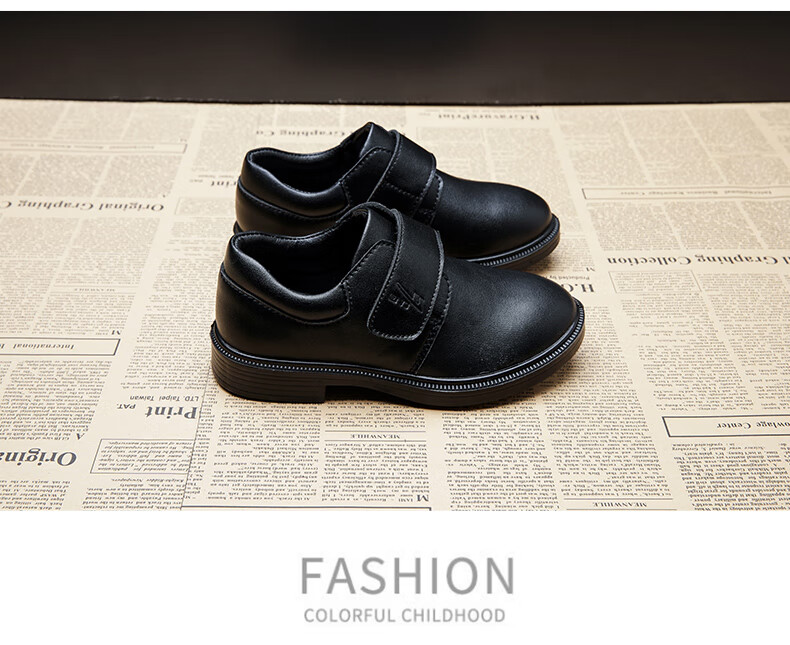 Pull back boys leather shoes campus performance shoes casual versatile little gentleman British etiquette children's shoes 0052 black 35