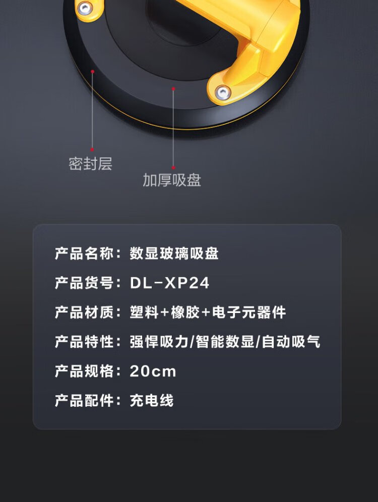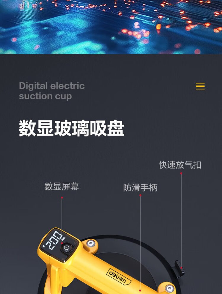 Deli electric vacuum suction cup digital display glass suction cup tile floor tile suction device vacuum pump automatic air replenishment