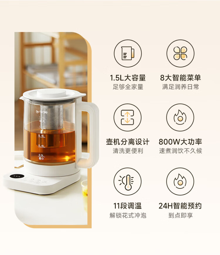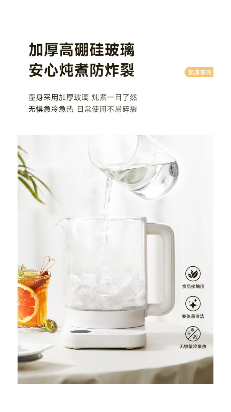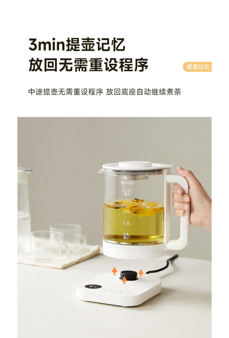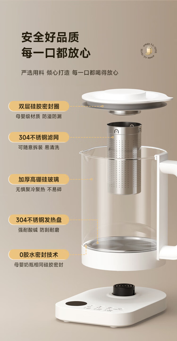 Ankale health pot 1.5L fully automatic constant temperature kettle 304 stainless steel + high borosilicate glass household large capacity office tea making hot water with tea drain AJL-15Y03