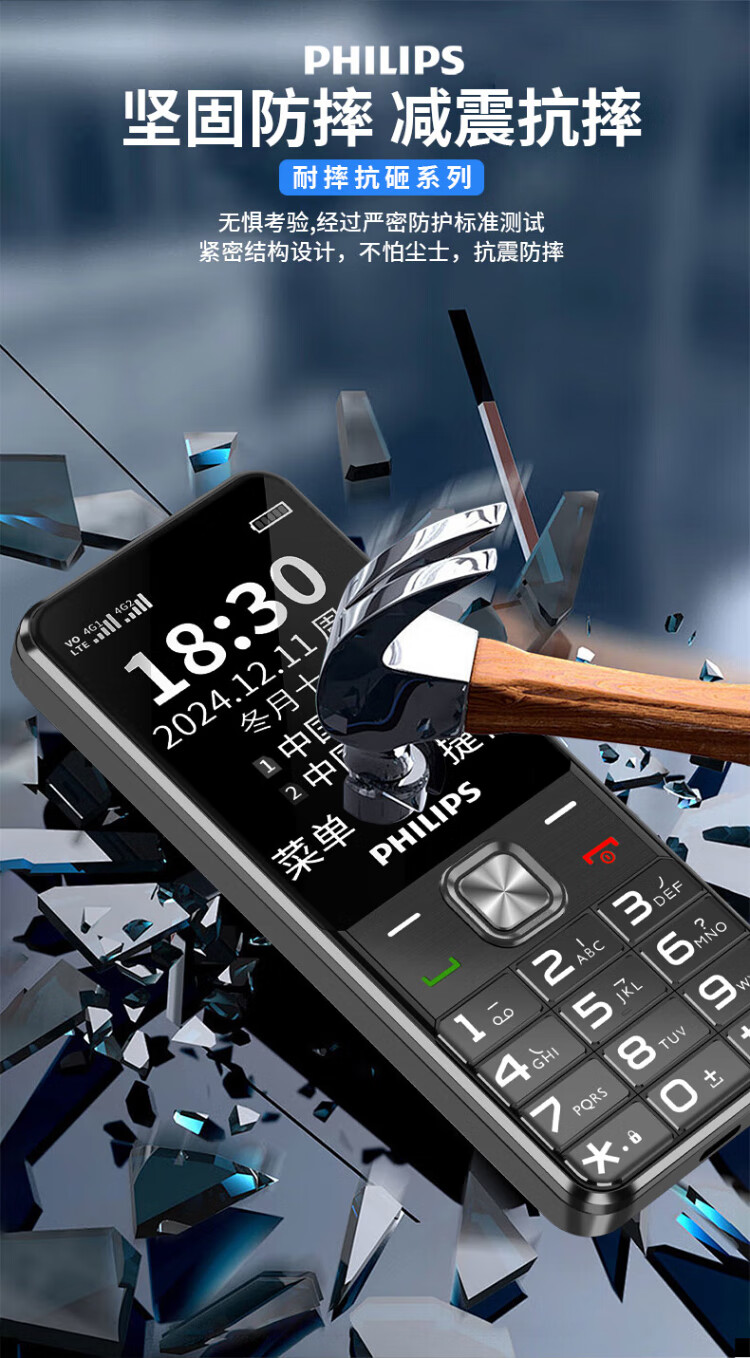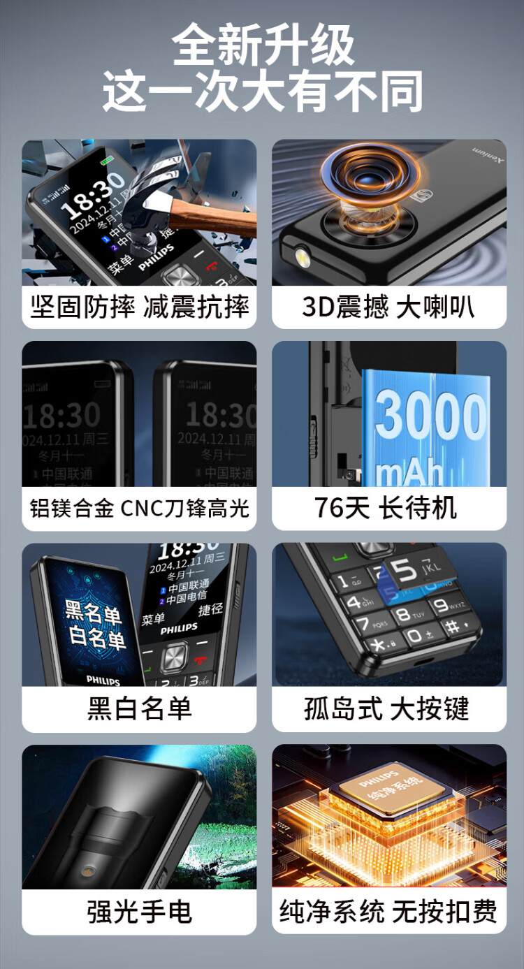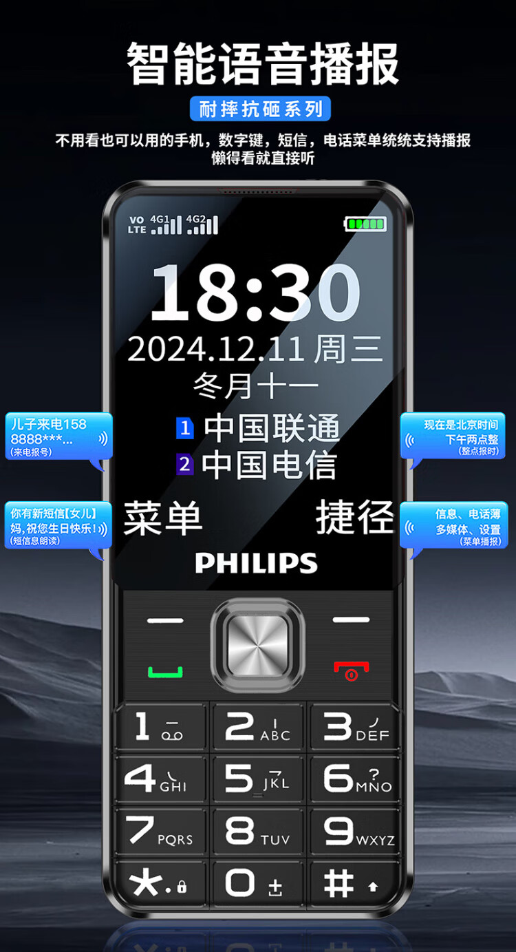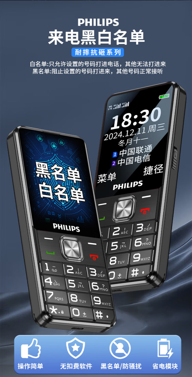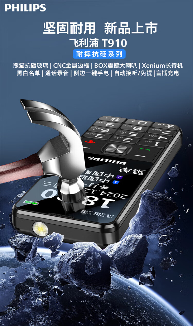 Philips (PHILIPS) T910 Full Netcom 4G mobile phone for the elderly, large speaker, large battery, ultra-long standby, mobile, China Unicom, Telecom, loud sound, straight button, functional phone for the elderly and students, Starry Sky Black