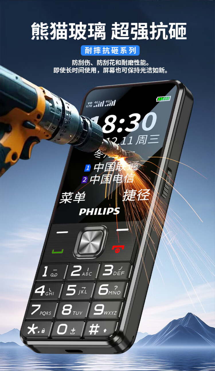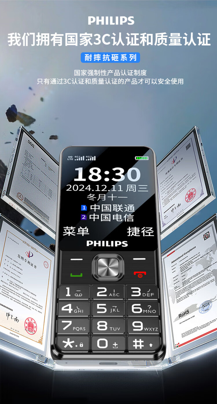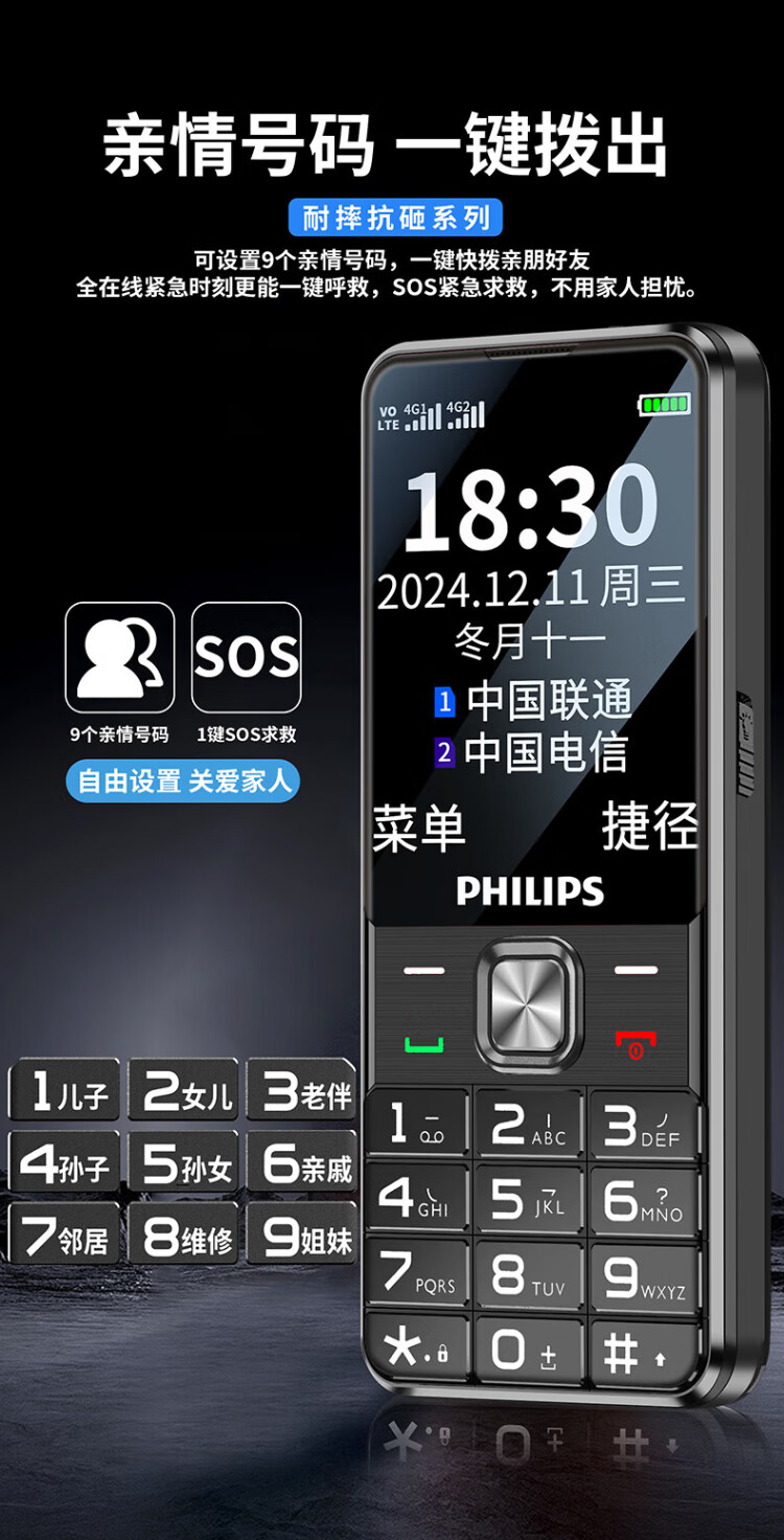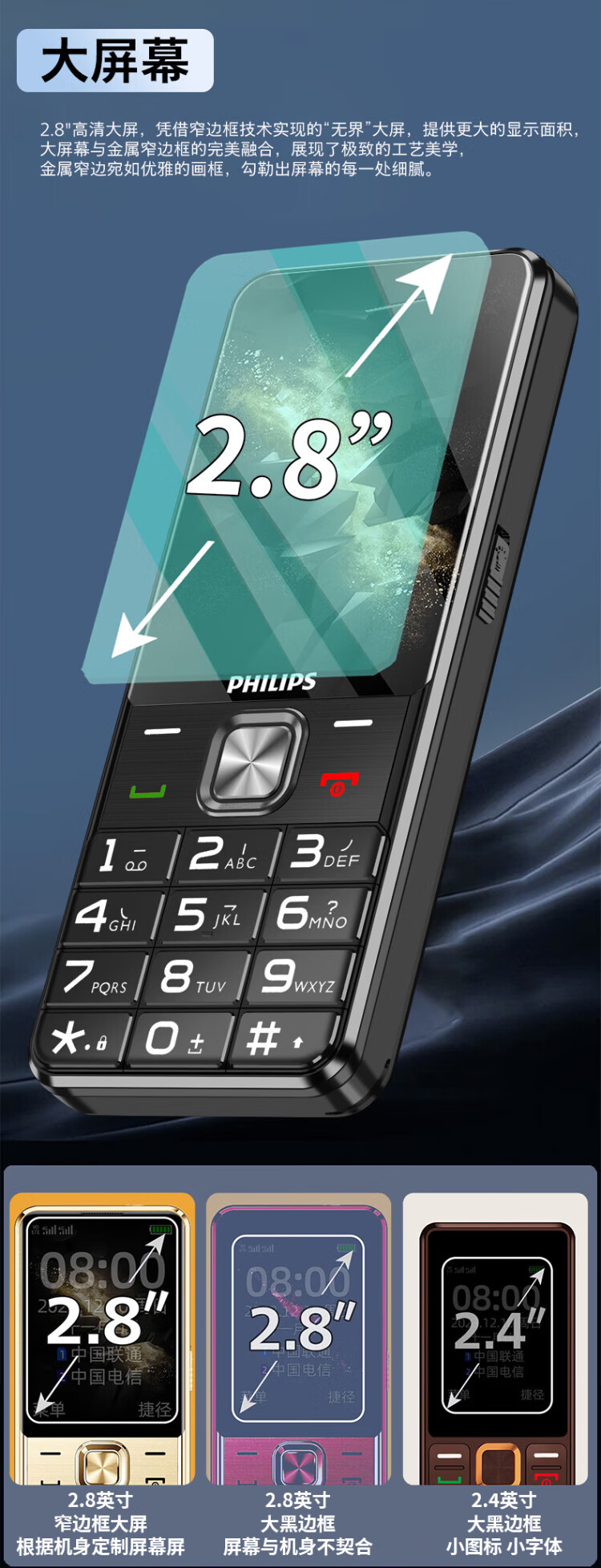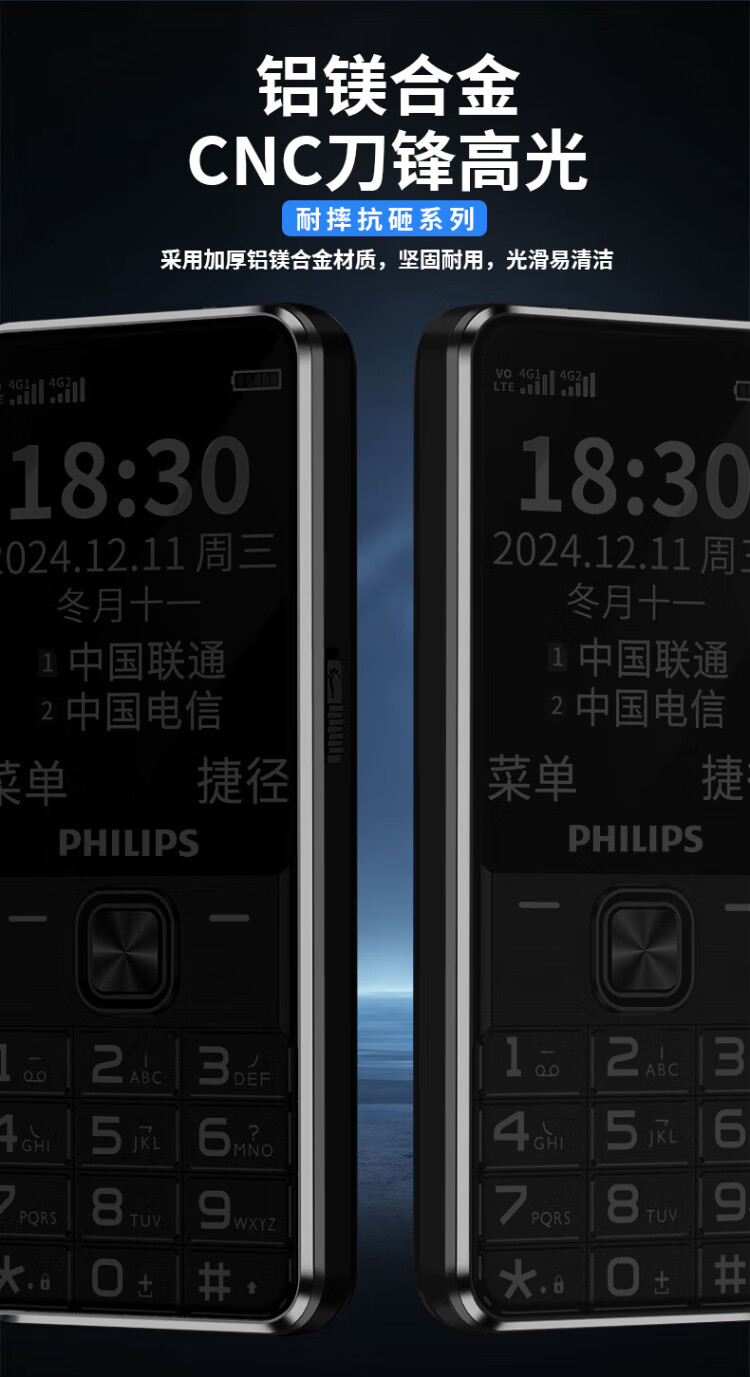 Philips (PHILIPS) T910 Full Netcom 4G mobile phone for the elderly, large speaker, large battery, ultra-long standby, mobile, China Unicom, Telecom, loud sound, straight button, functional phone for the elderly and students, Starry Sky Black