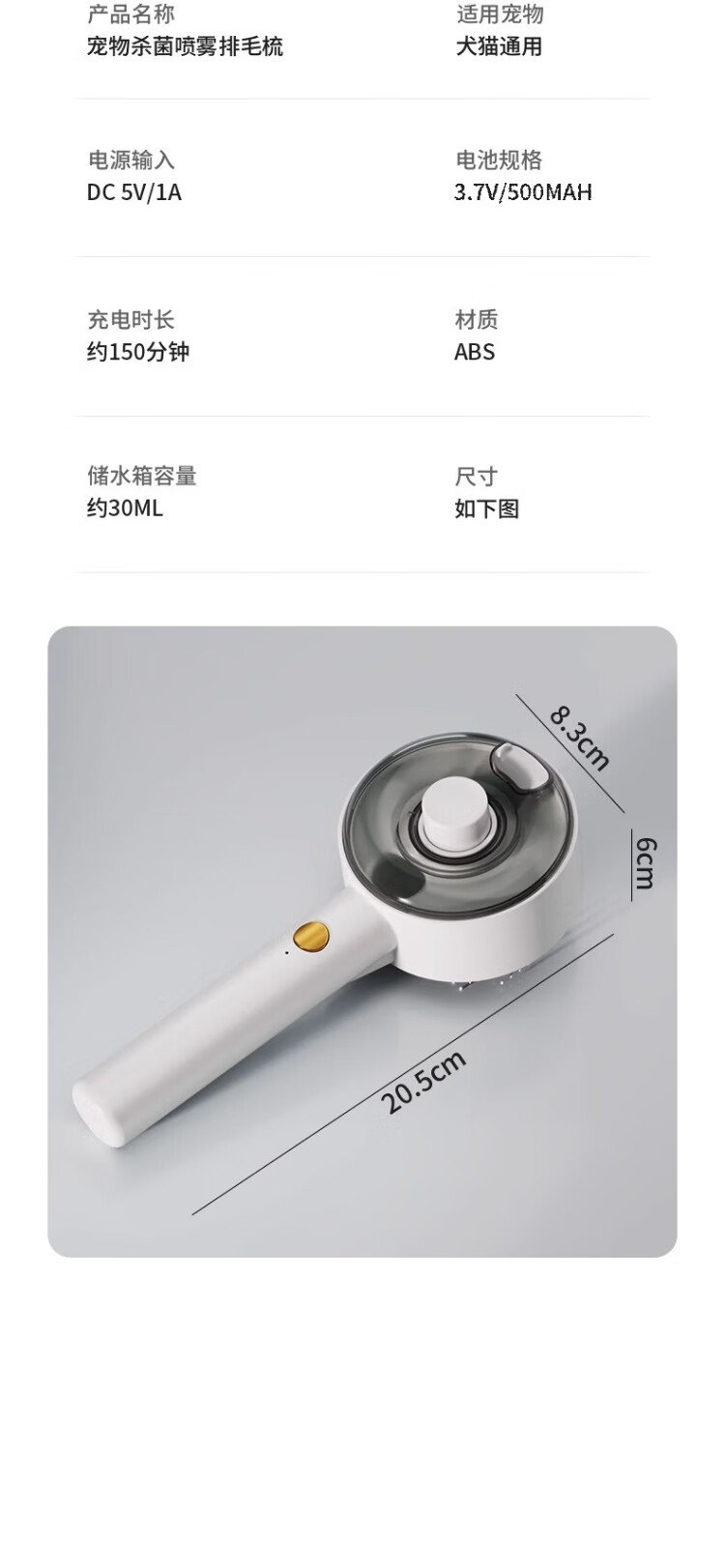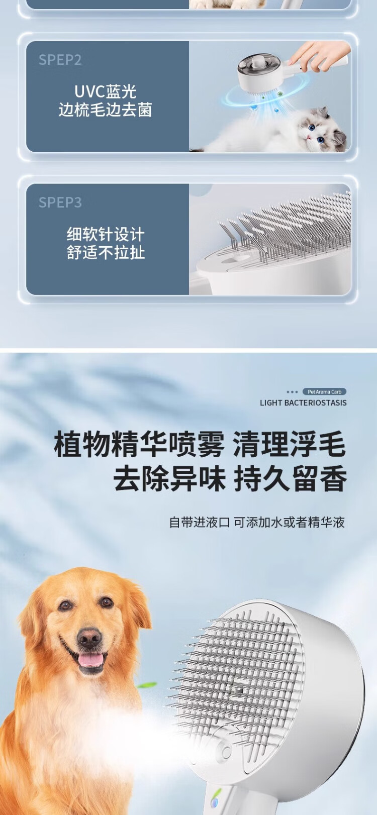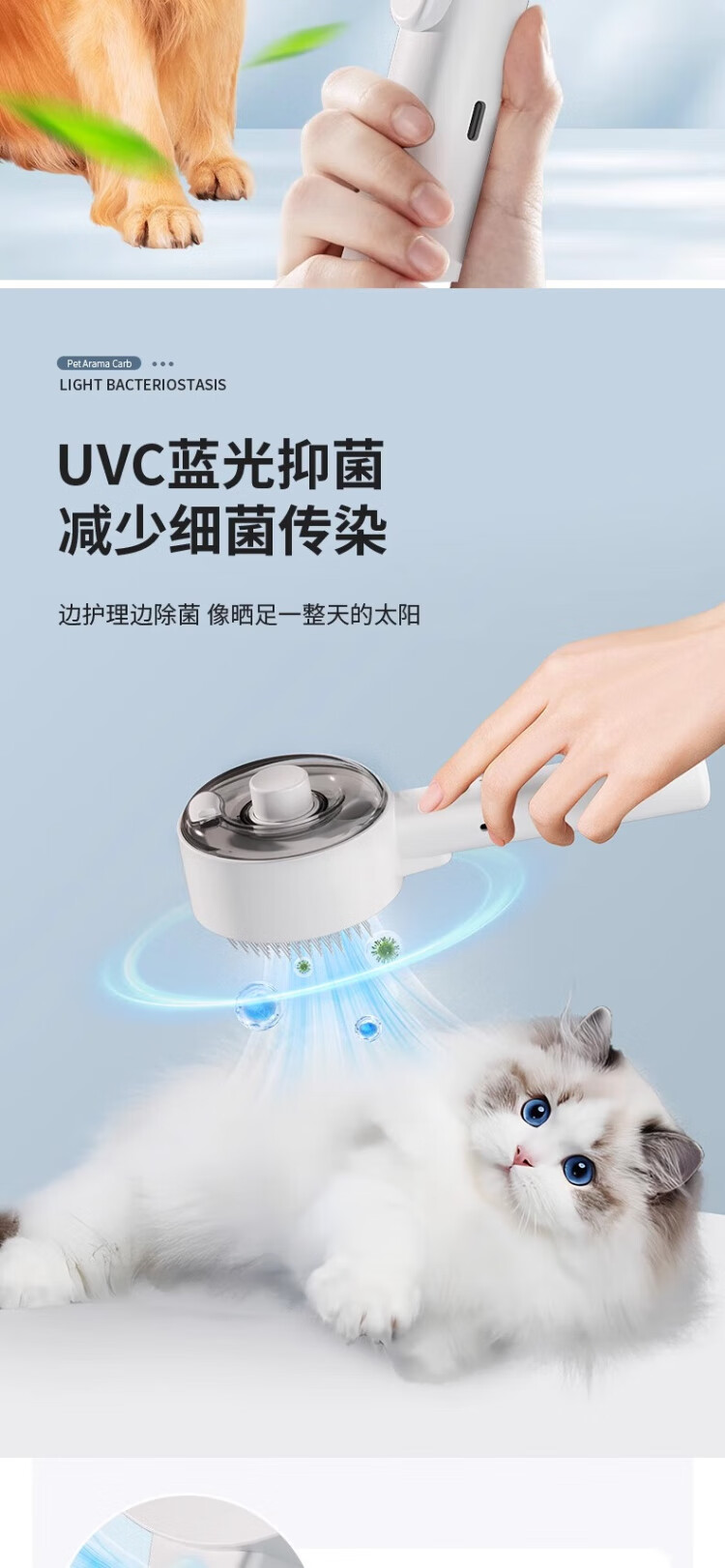BNBNO cat comb cat hair cleaner pet spray cat hair combing brush cat steam massage comb to remove floating hair without bathing