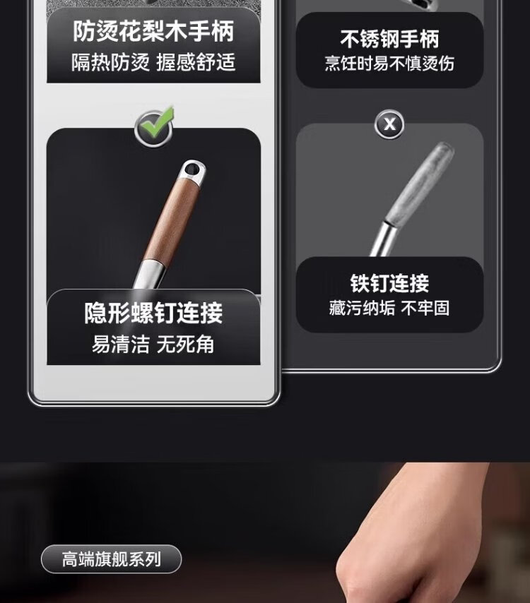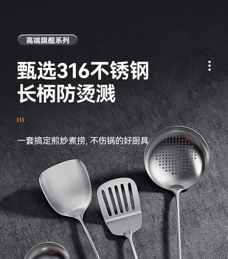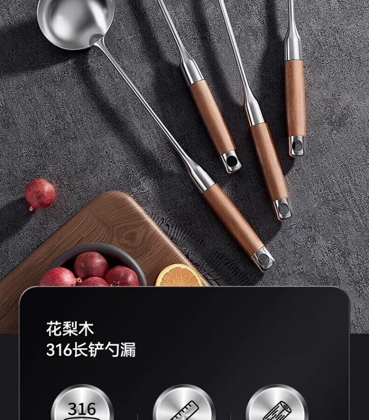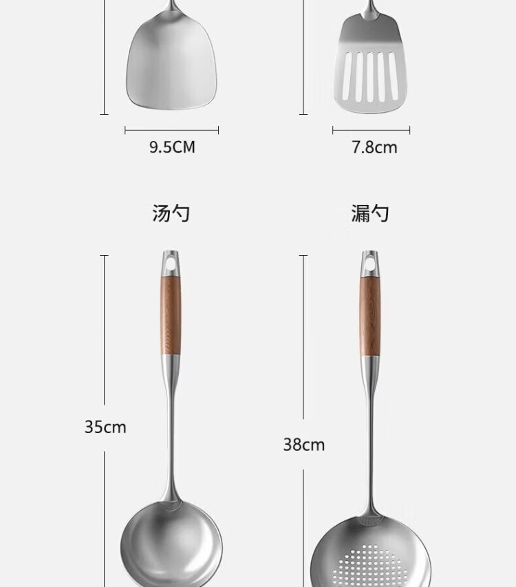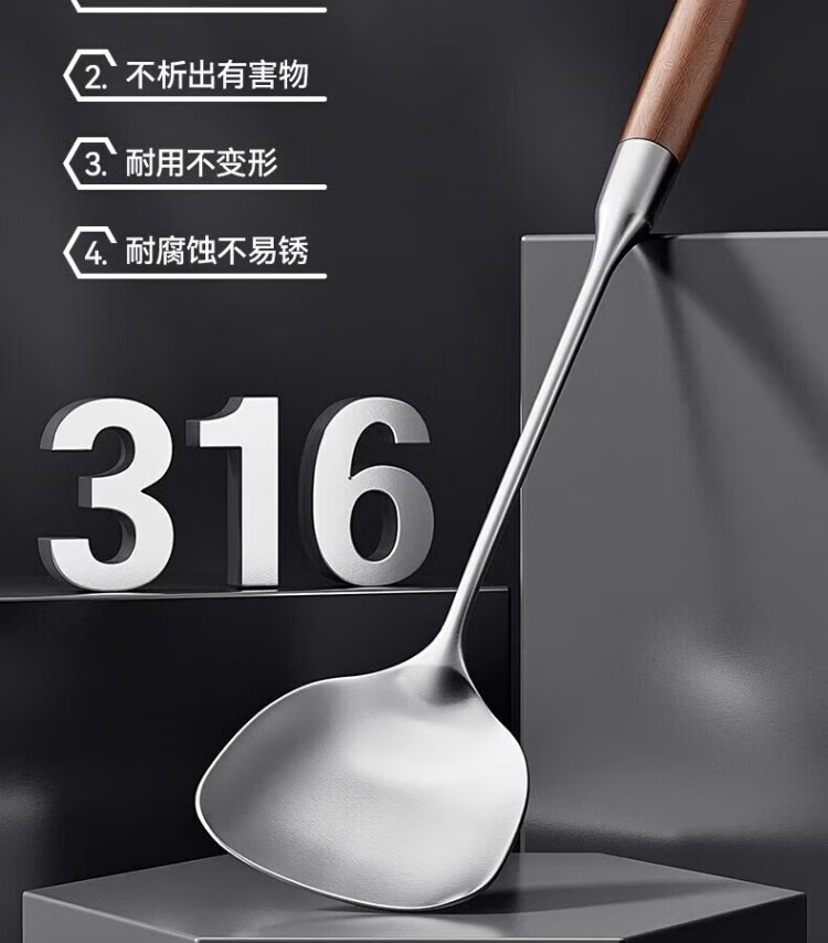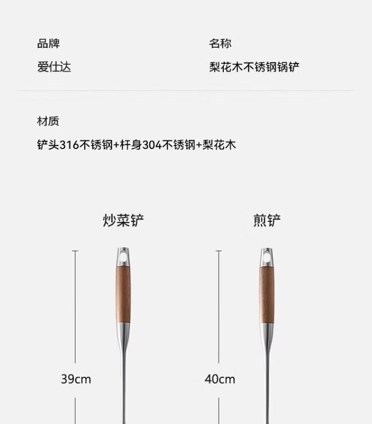 ASD spatula 316 stainless steel cooking spatula frying spoon rosewood handle household thickened iron pot stainless steel spatula