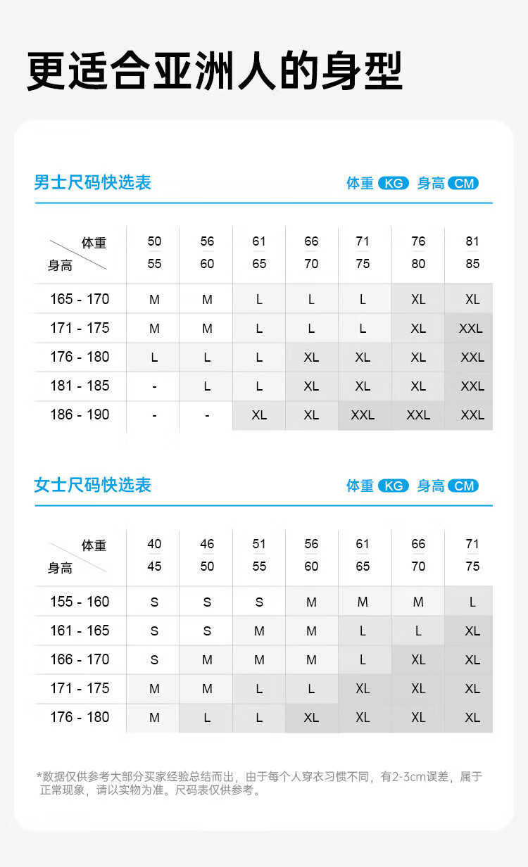China (cm) 160-165/84-86 165-170 / 88-90 167-172 / 92-96 168-173 / 98-102 170-176 / 106-110