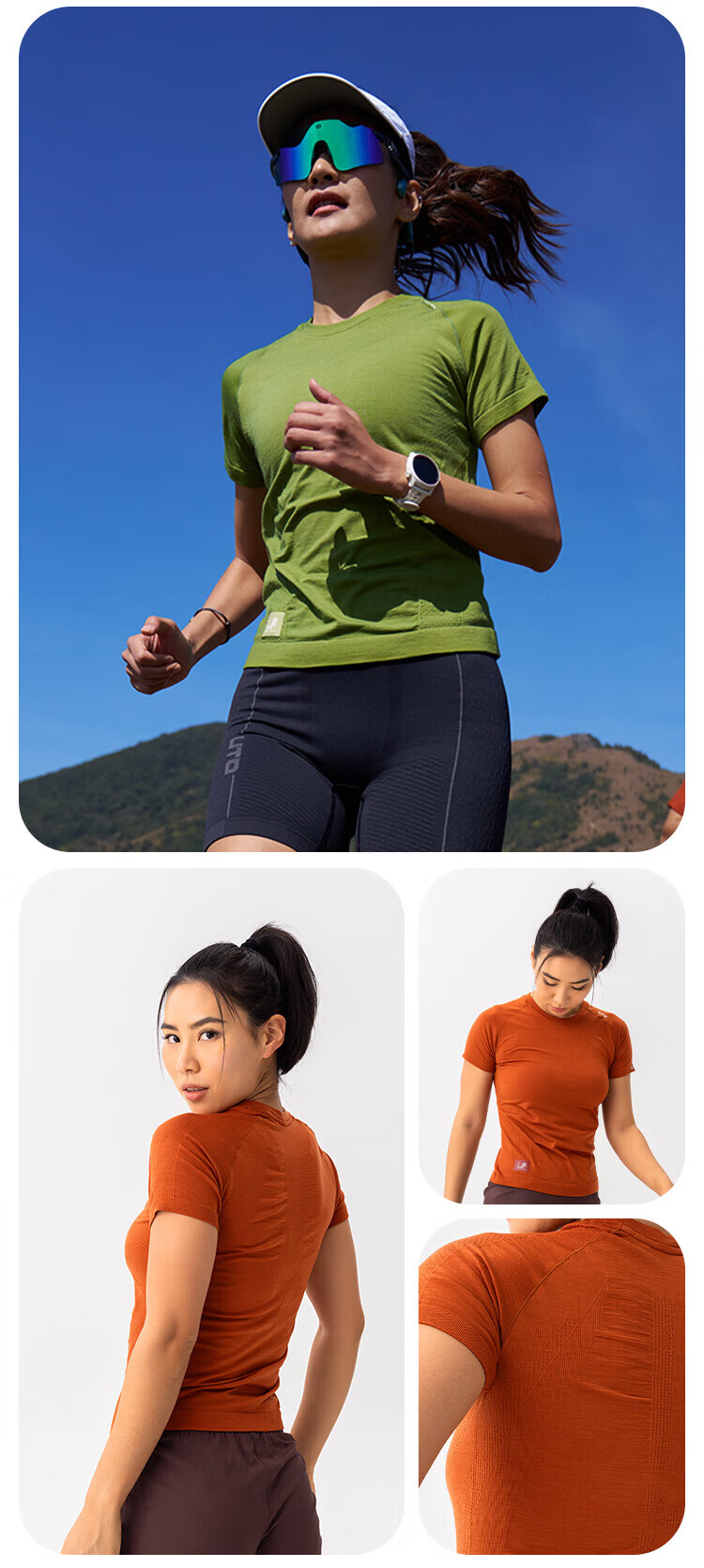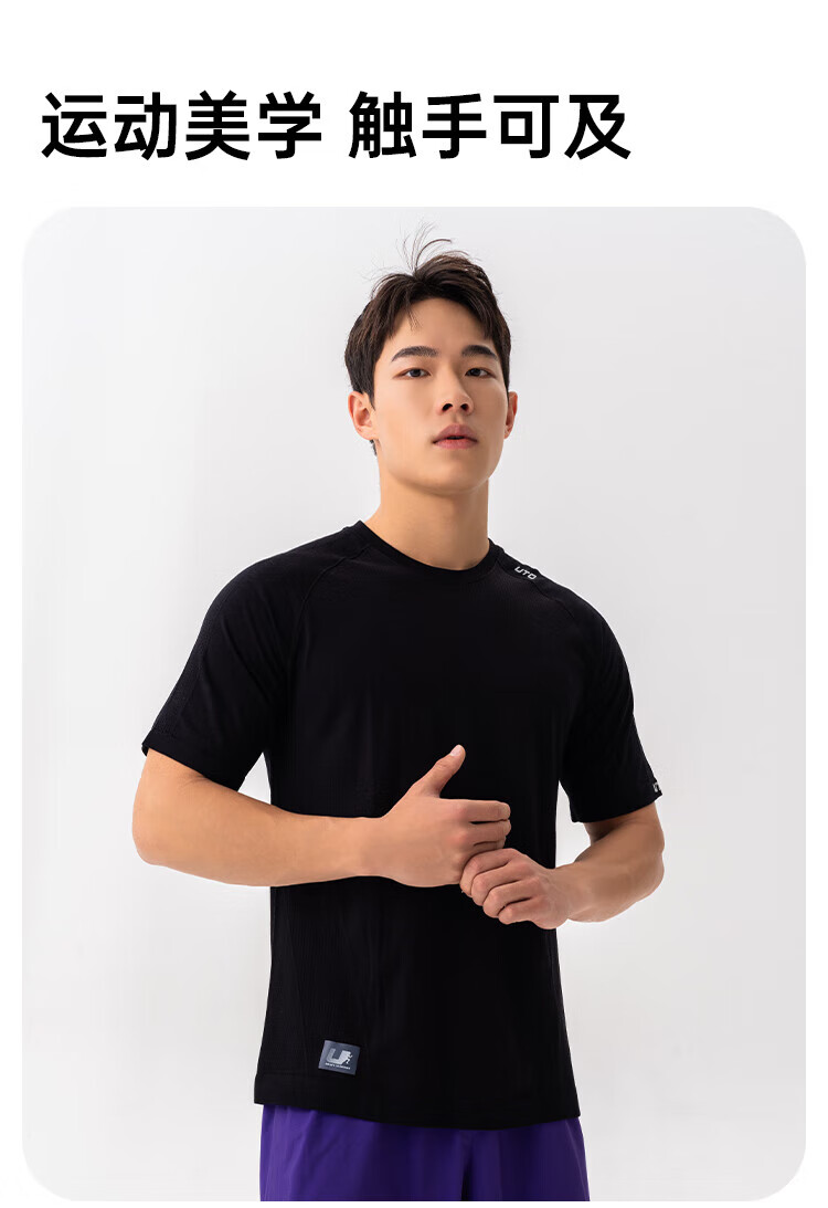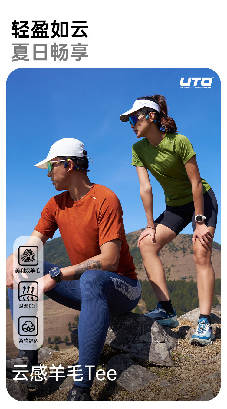 UTO Merino Wool Quick-Drying Short-Sleeved Sports T-Shirt Outdoor Running Hiking Top Men's Style - Classic Black XL