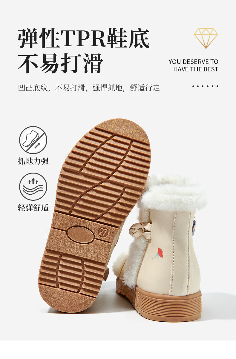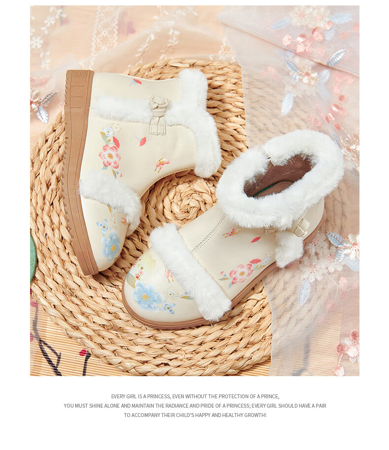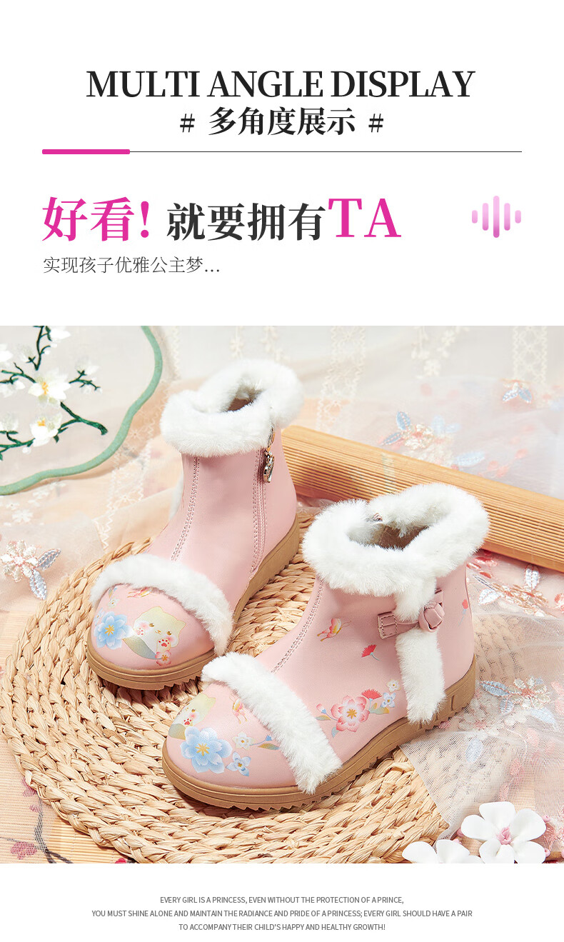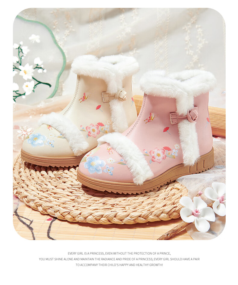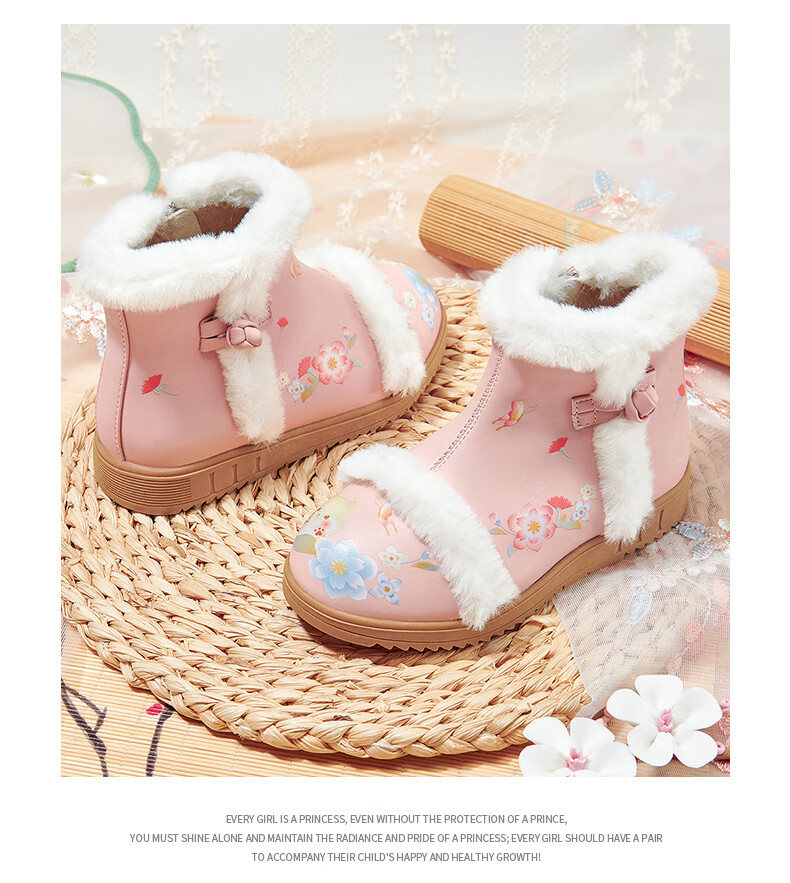 Disney children's shoes, Chinese style girls' Hanfu shoes, sweet winter plus velvet short boots, retro cotton boots DP22160 pink 31