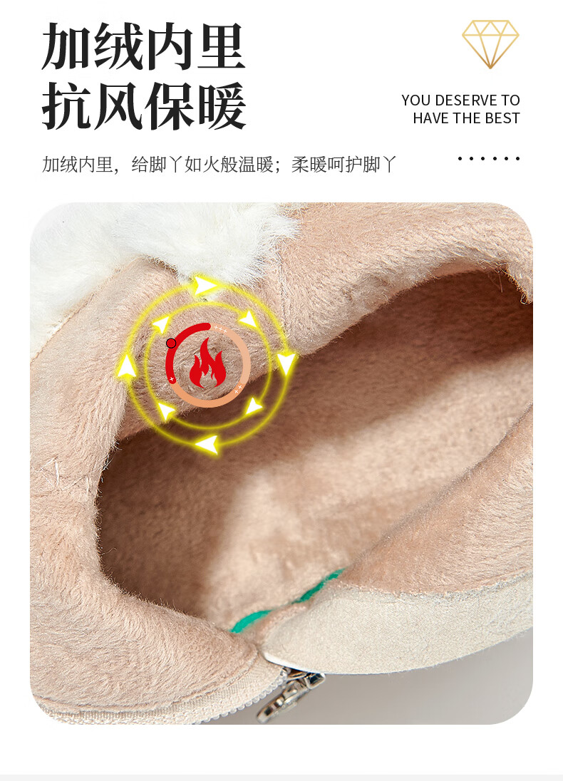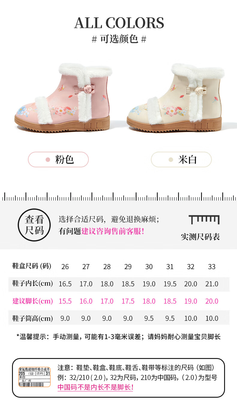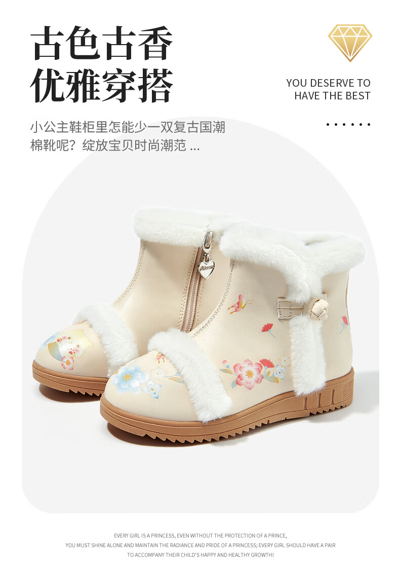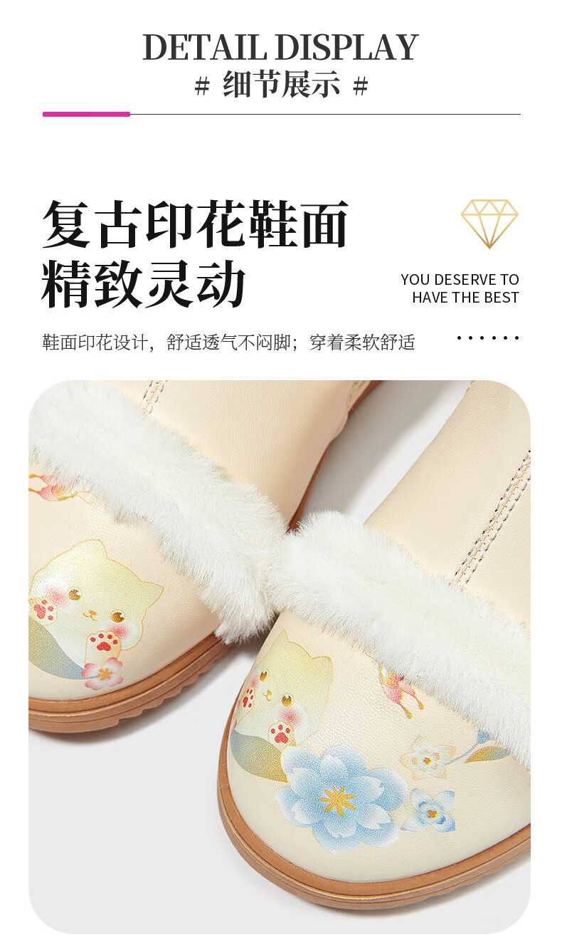 Disney children's shoes, Chinese style girls' Hanfu shoes, sweet winter plus velvet short boots, retro cotton boots DP22160 pink 31