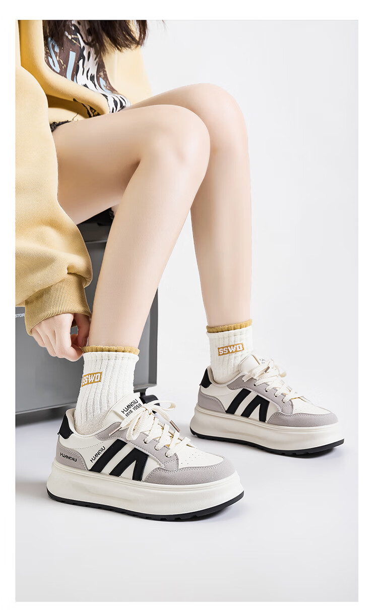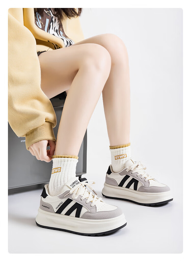 Global hot style 2025 autumn ins trendy white shoes for women, versatile student campus style fashionable thick-soled heightening casual sneakers