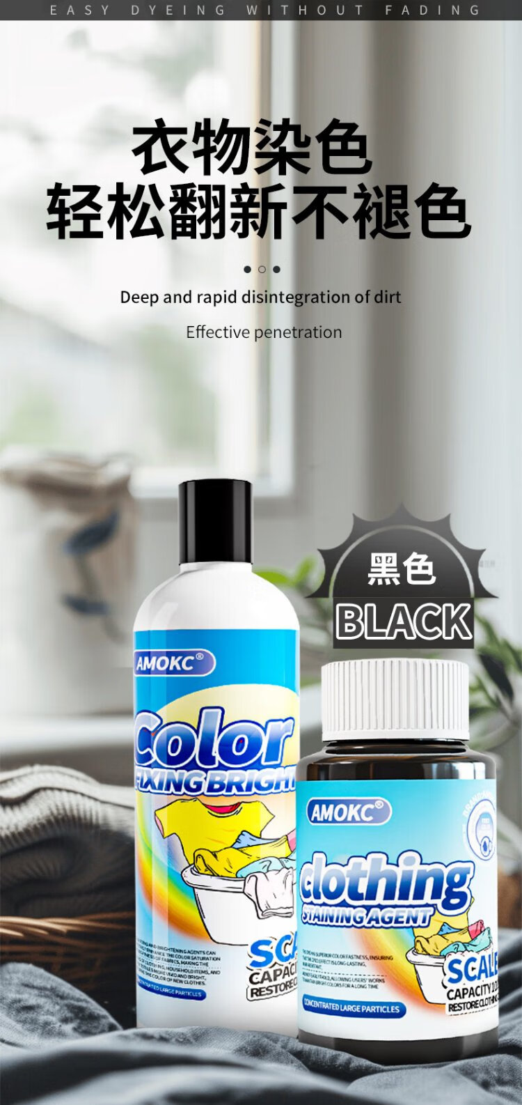AMOKC Clothes Dyeing Agent Black Special Non-Fading Clothes Dye No-cooking Non-Fading Old Clothes Renovation Restoration Set