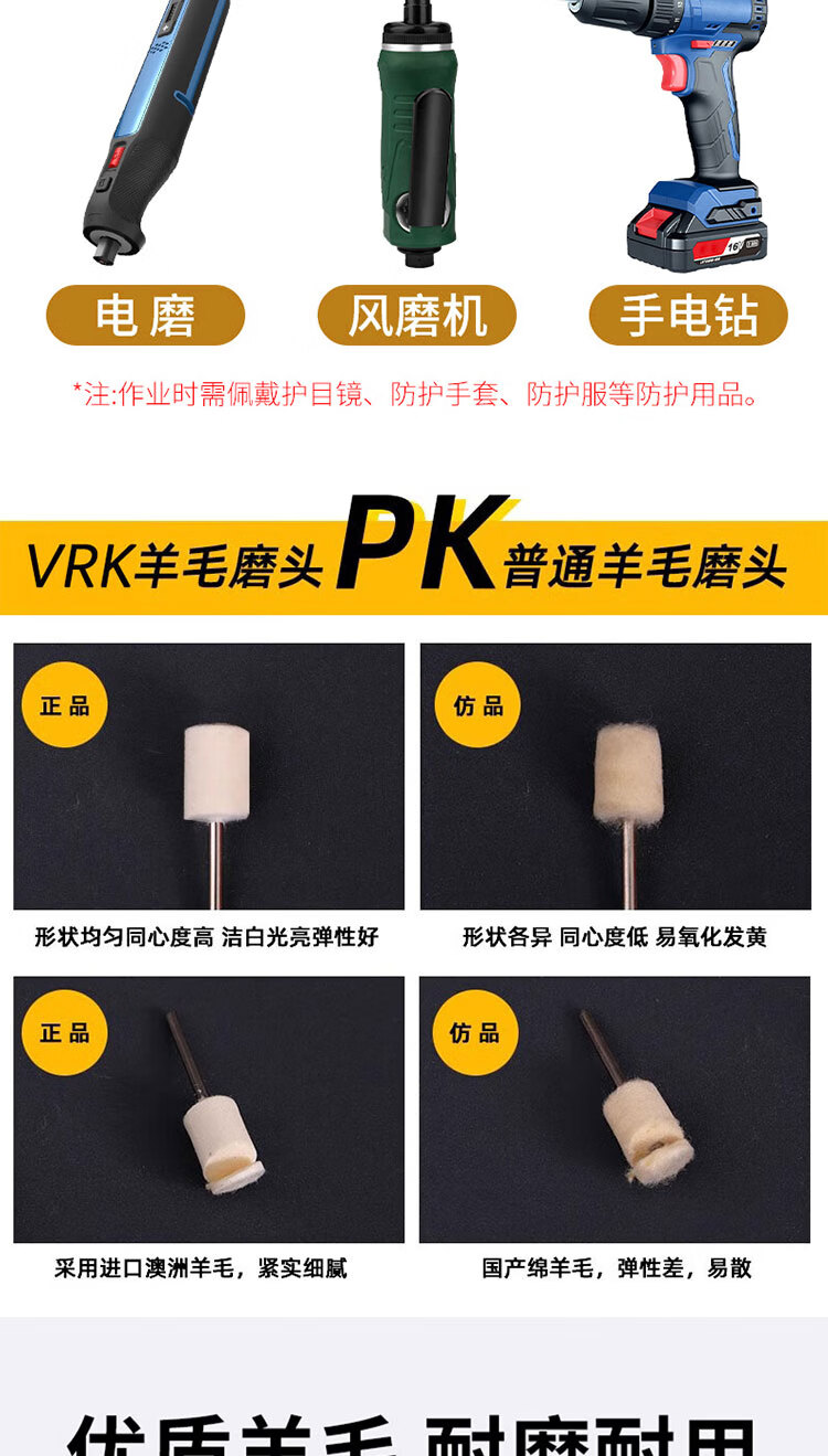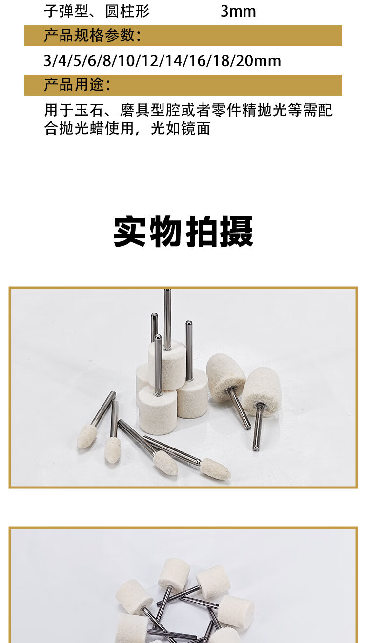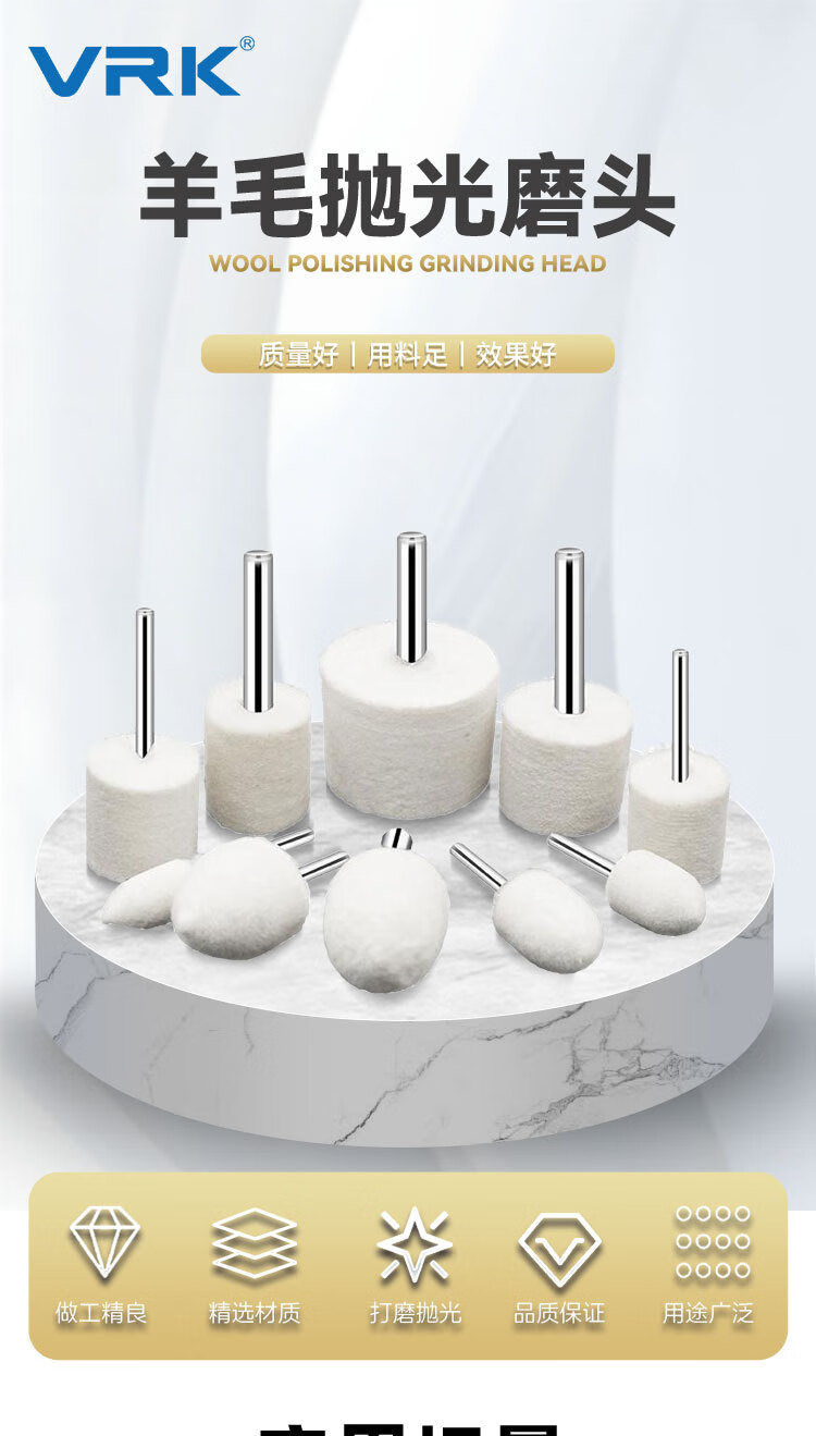 VRK wool grinding head polishing cylindrical handle 3mm*10mm set mirror polishing jade metal grinding head wool wheel polishing 12 pieces/pack