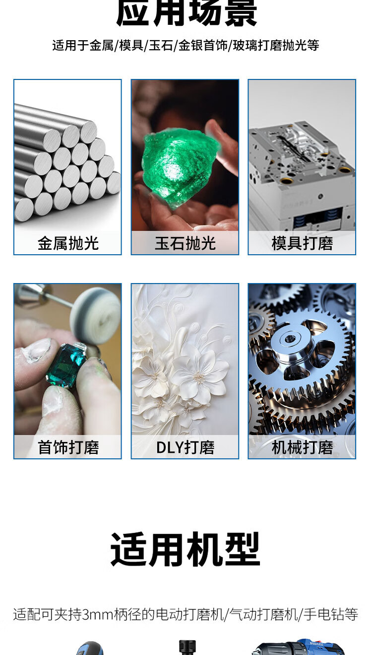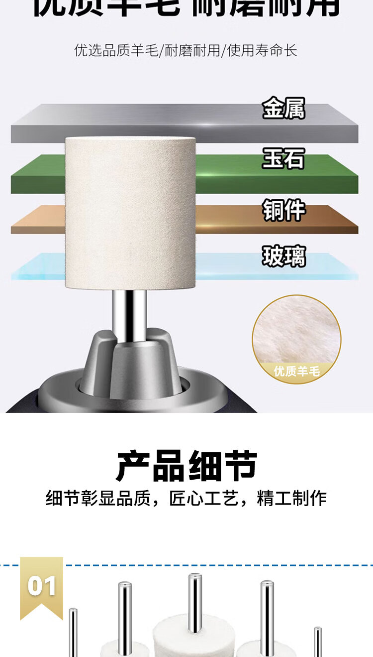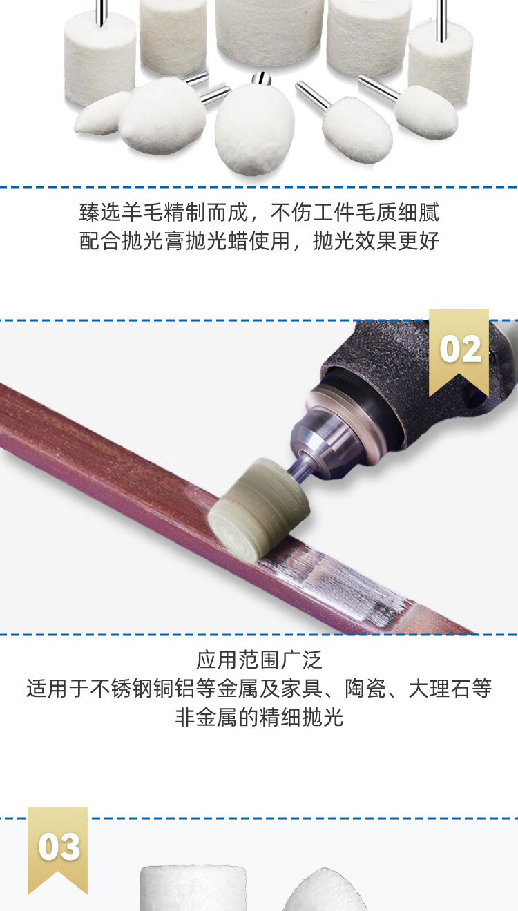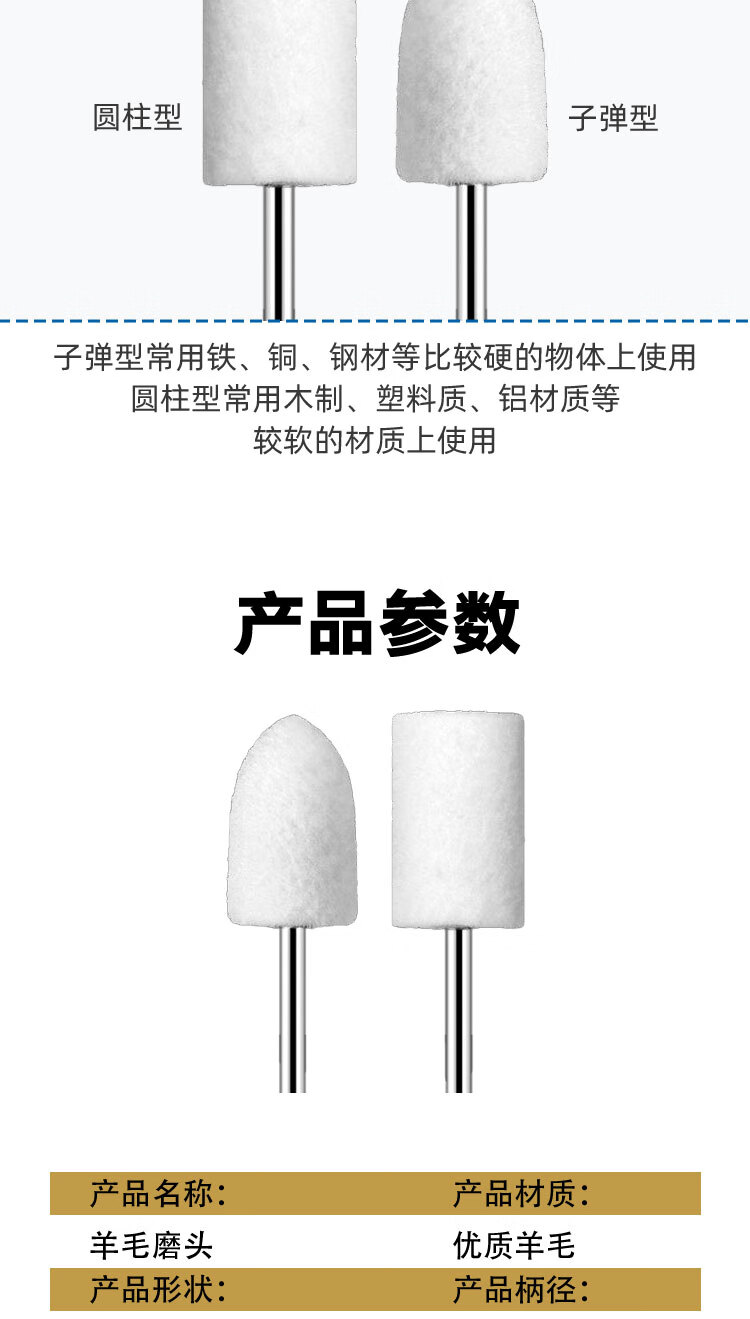 VRK wool grinding head polishing cylindrical handle 3mm*10mm set mirror polishing jade metal grinding head wool wheel polishing 12 pieces/pack