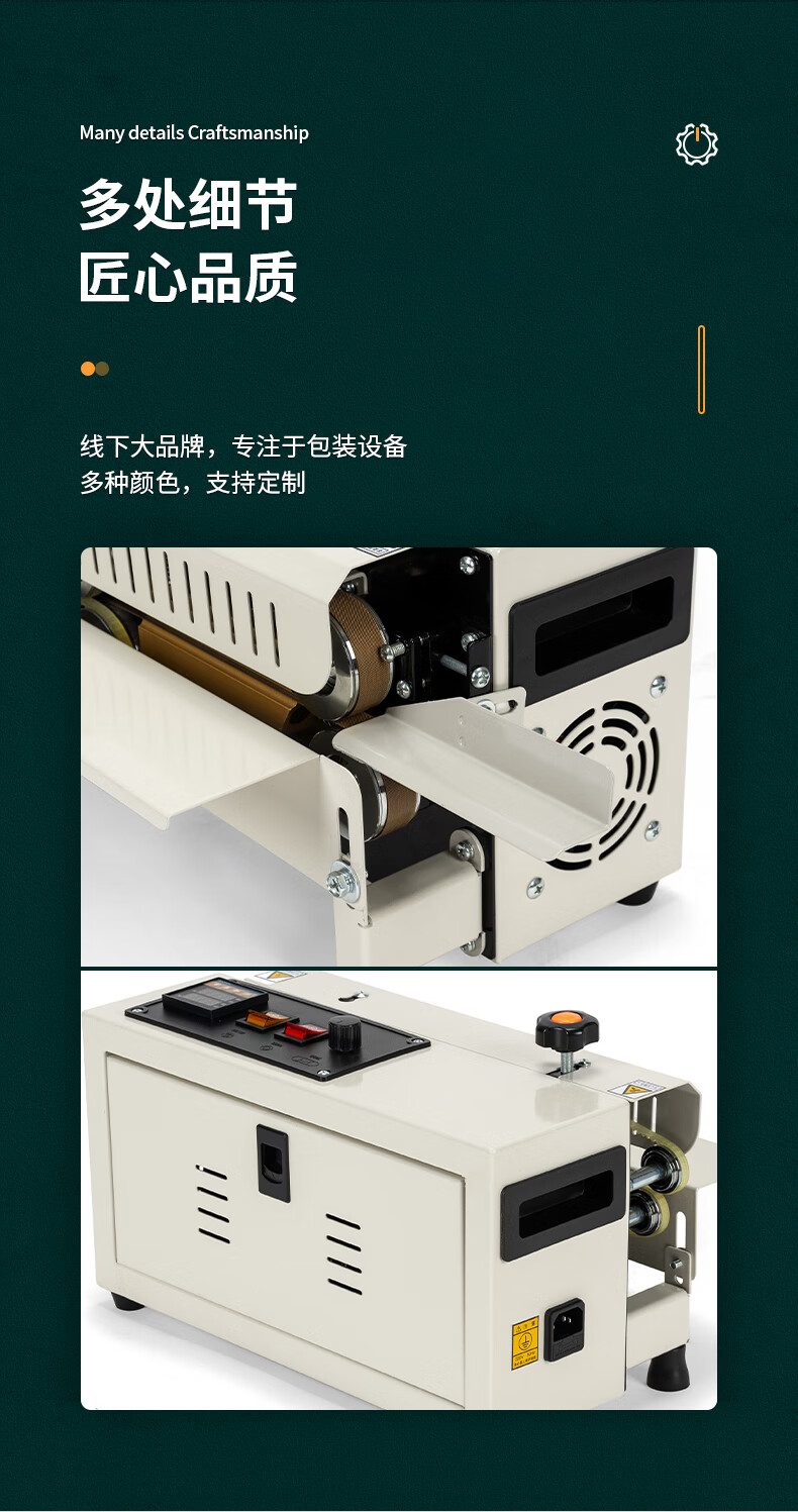 Du Nai continuous sealing machine fully automatic film commercial printing production date small heat sealing machine moon cake tea snack plastic bag aluminum foil bag FR400 paint