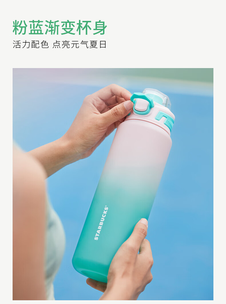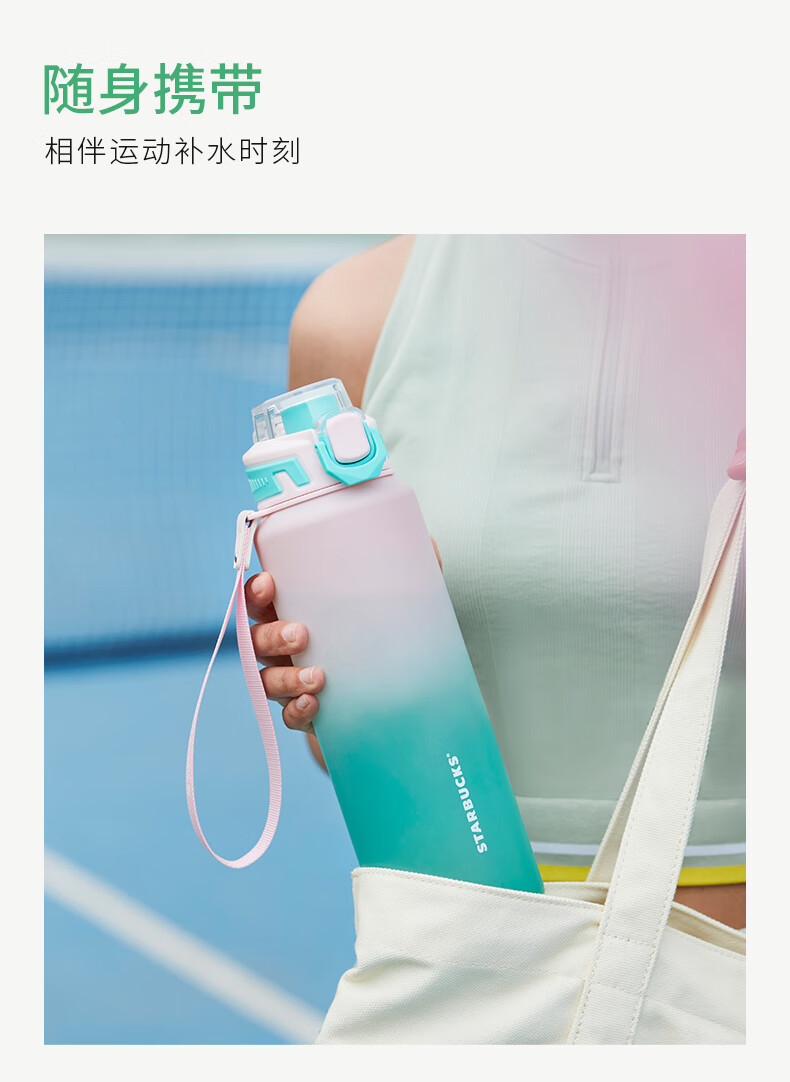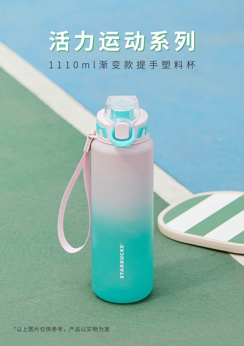 Starbucks large-capacity sports water cup tritan plastic cup with rope outdoor fitness cycling badminton basketball men and women 1.1L