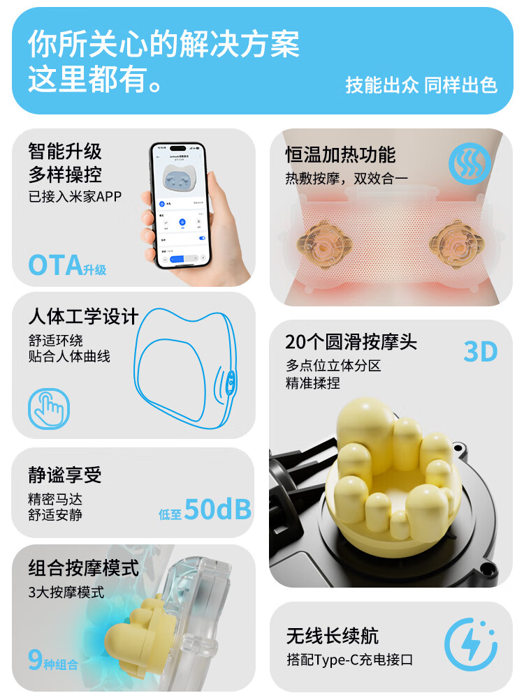 Jeeback spinal comfort waist massager Mijia APP back massager physical cushion shoulder and neck lumbar spine G New Year's Day gift for parents and men and women practical birthday gift box