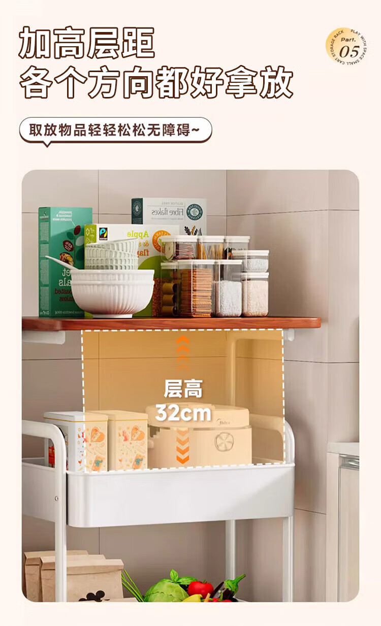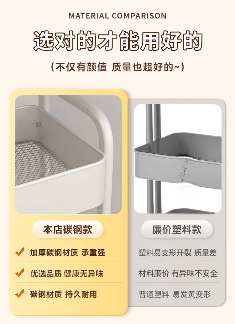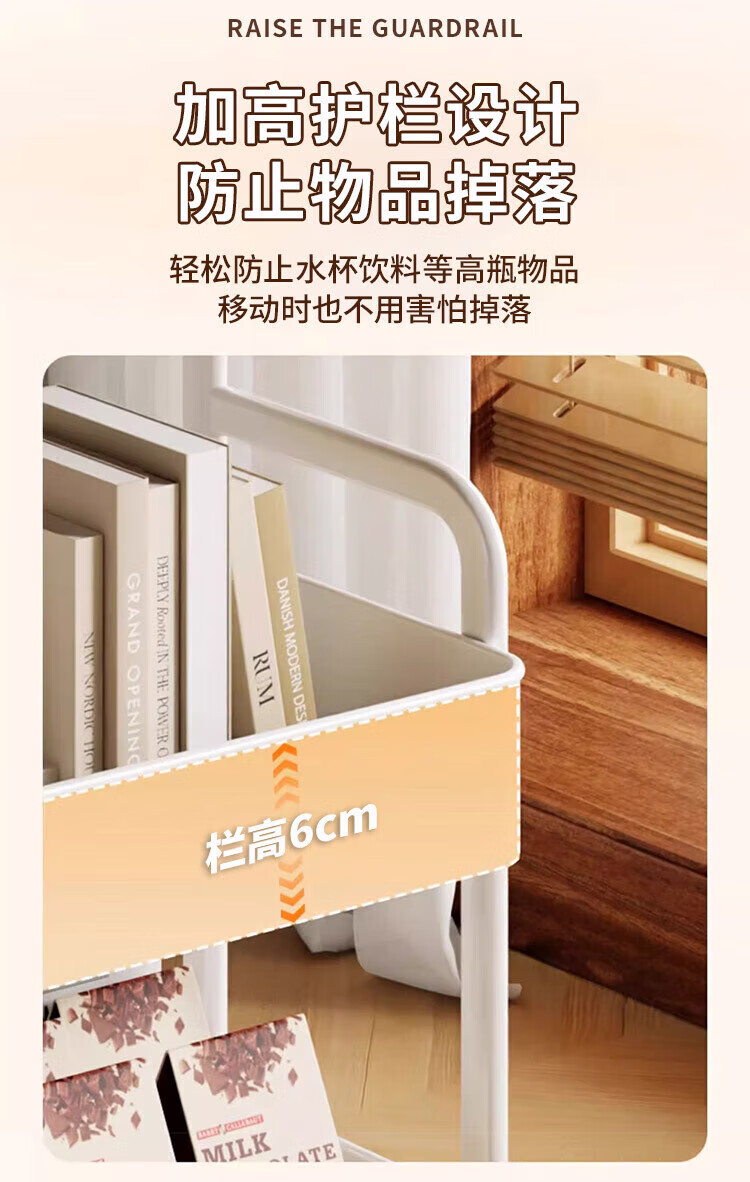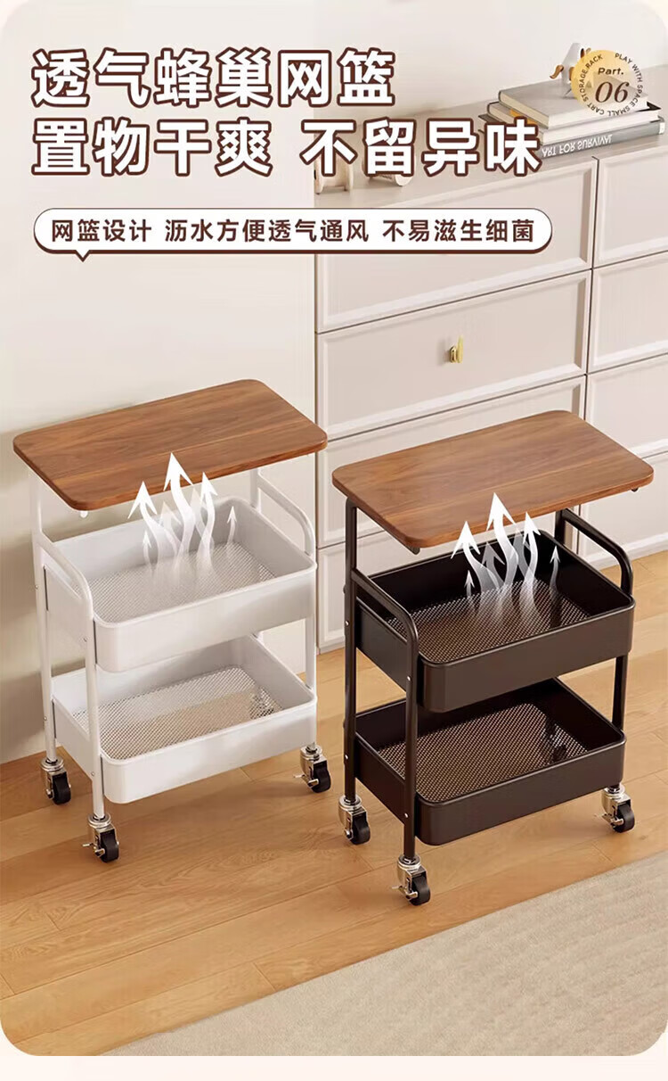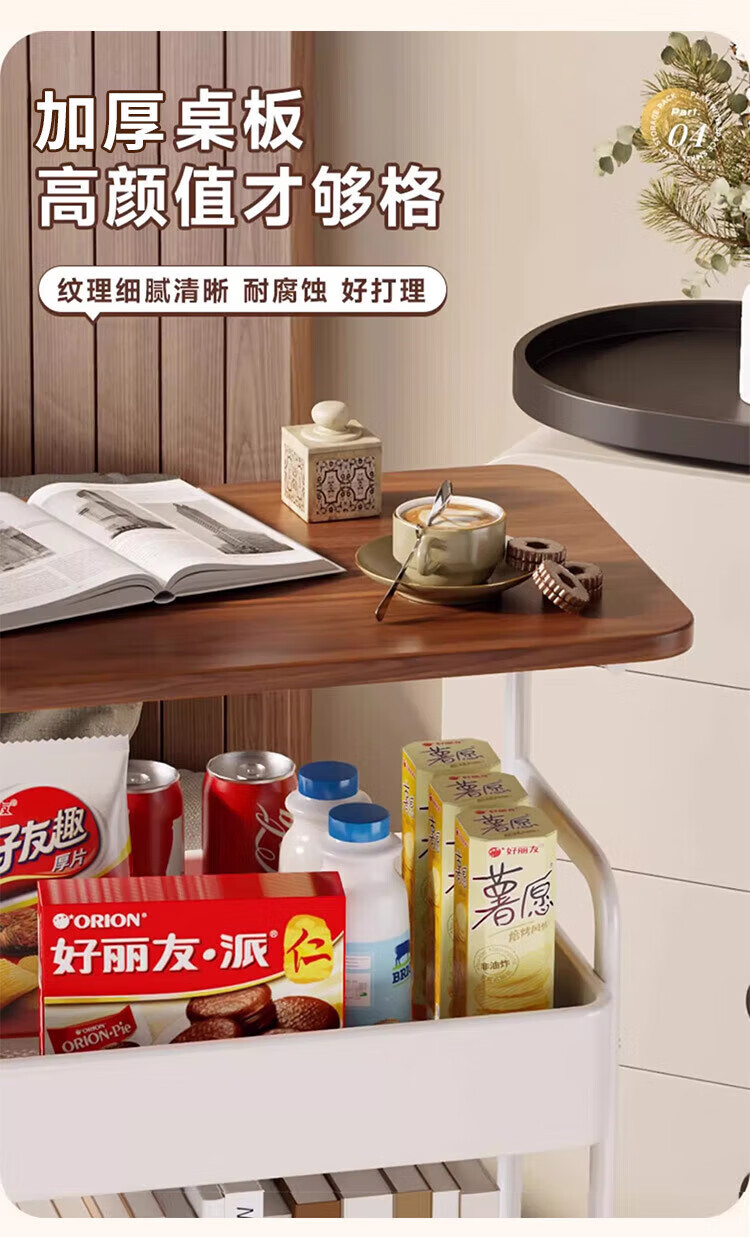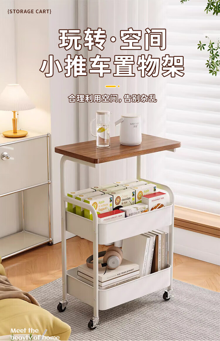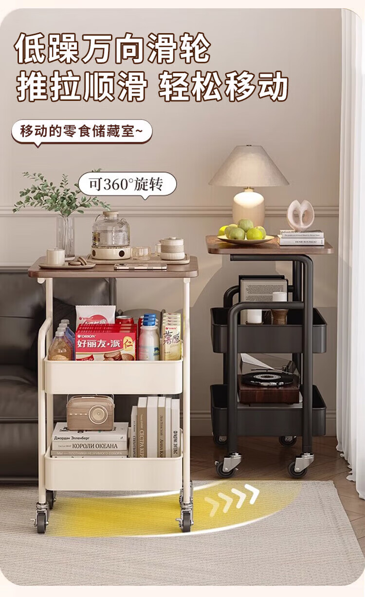 Jingcai floor-standing storage rack trolley movable storage rack coffee table side table small table JCJ13 white
