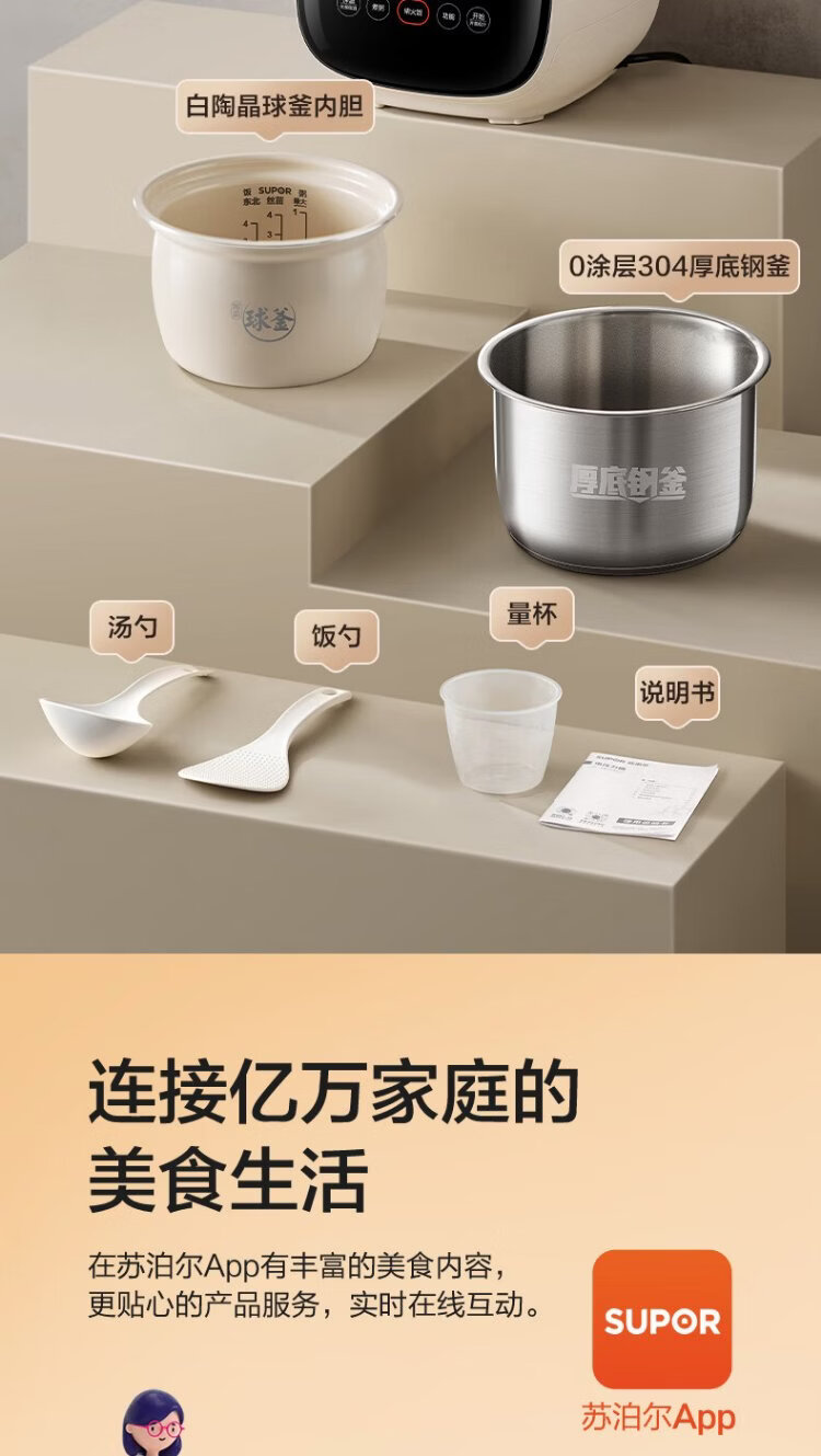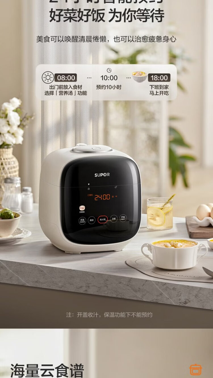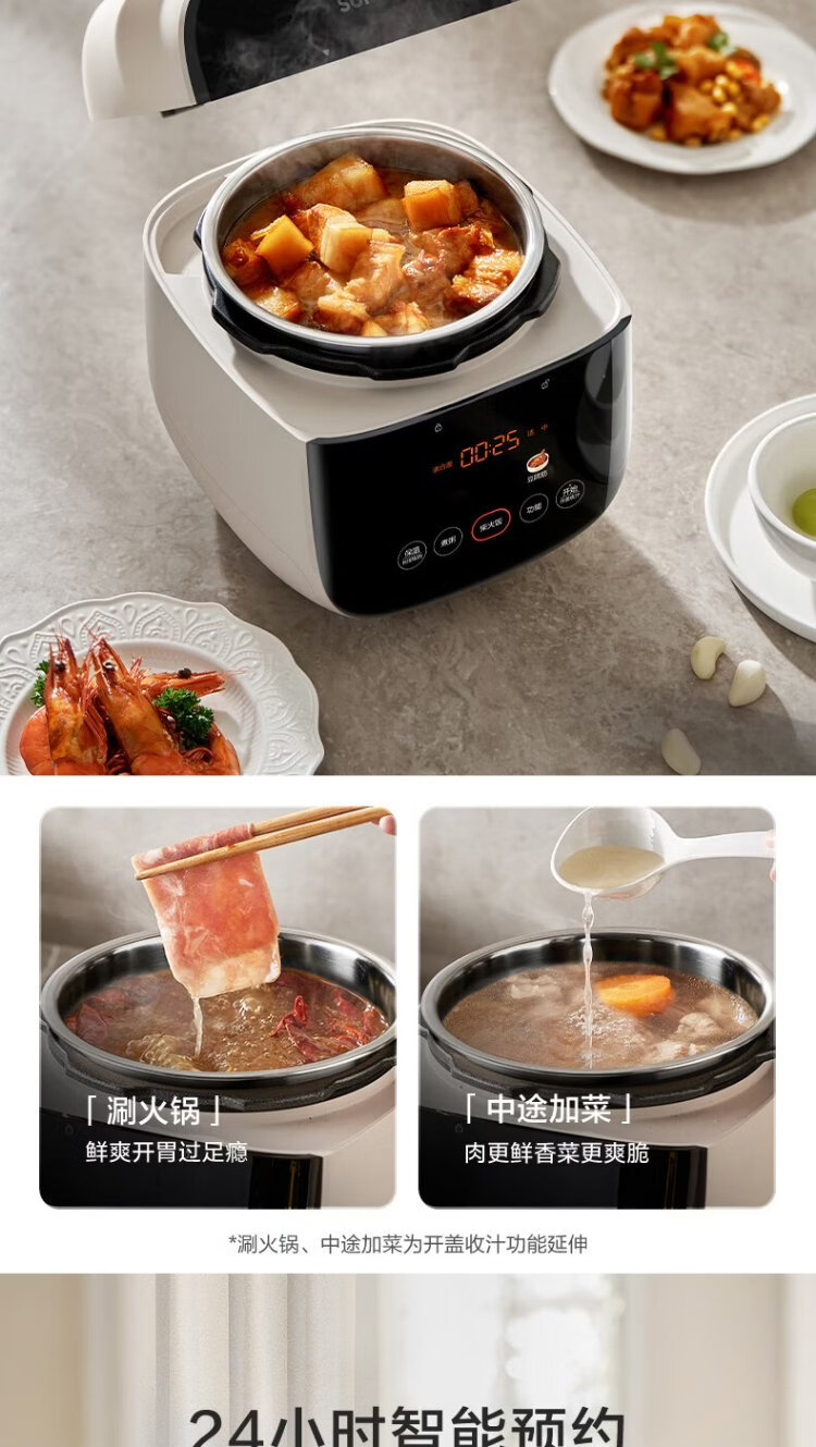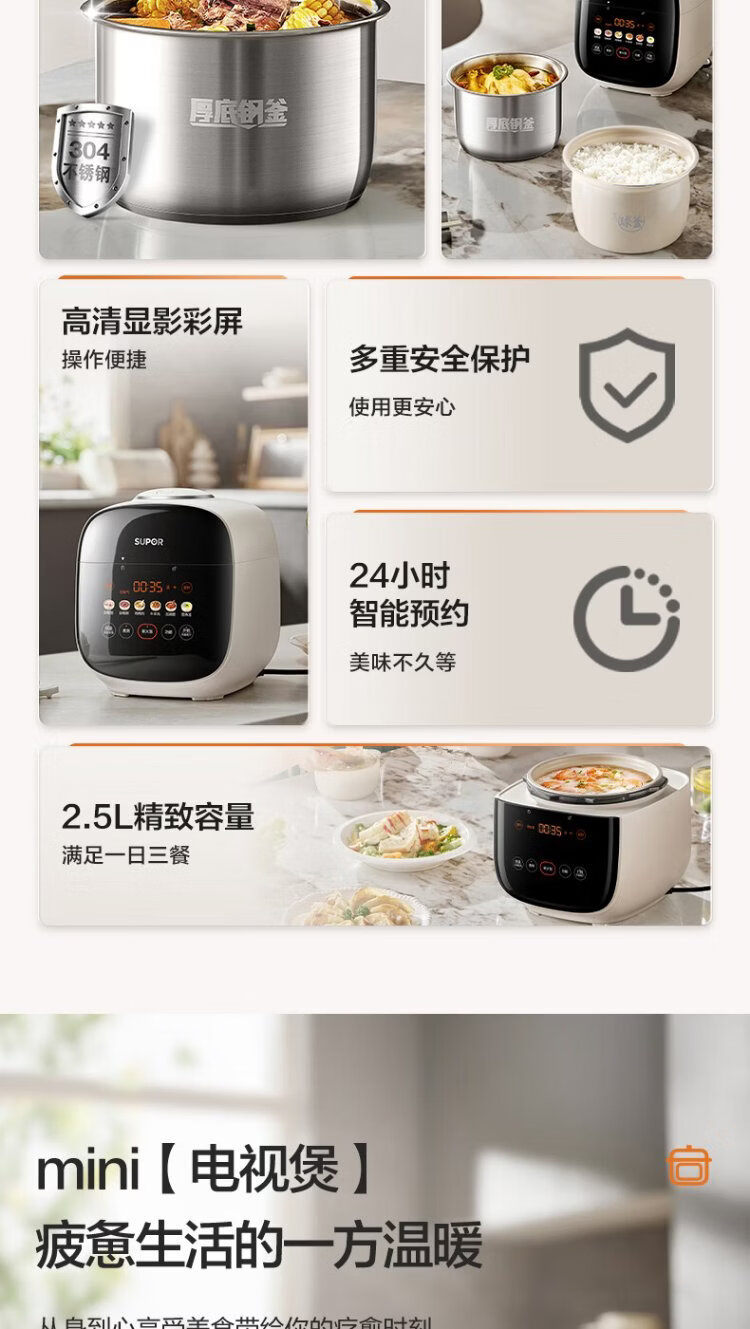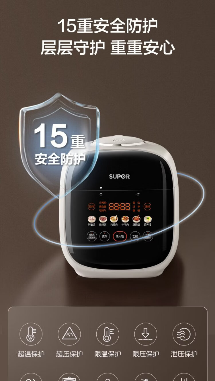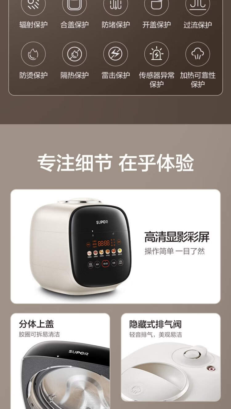 SUPOR 0-coated stainless steel ball kettle electric pressure cooker 2.5L household smart touch display SY-25FC2501Q double-gallon rice cooker pressure cooker for 1-3 people