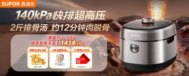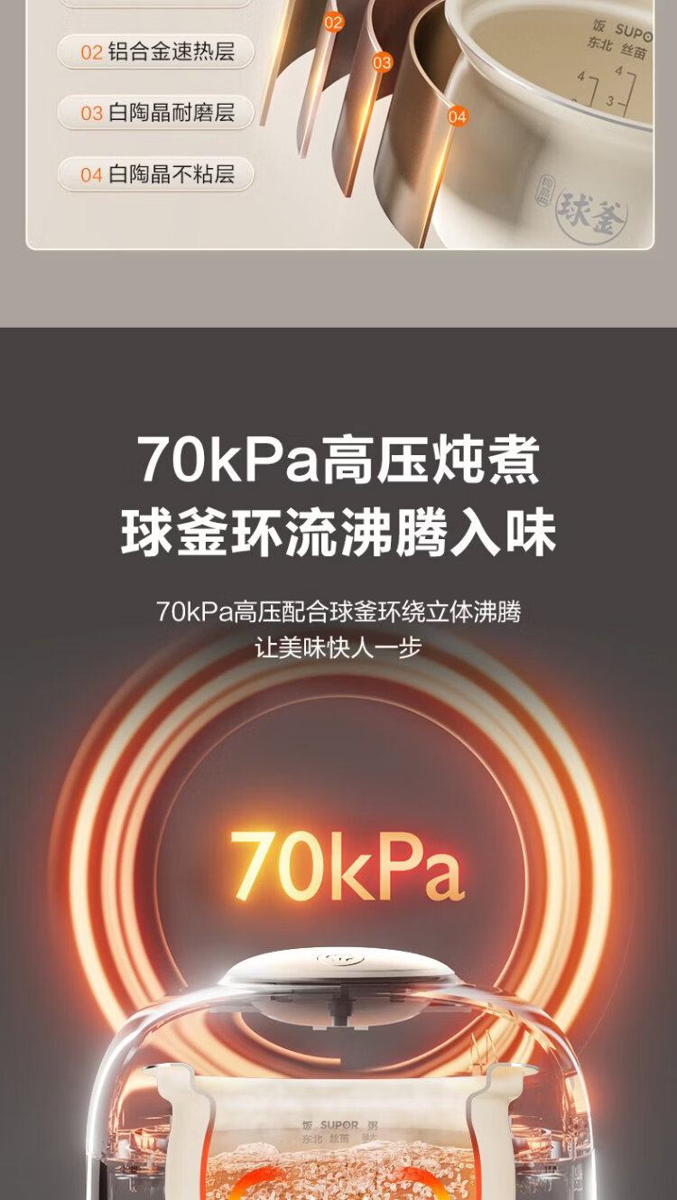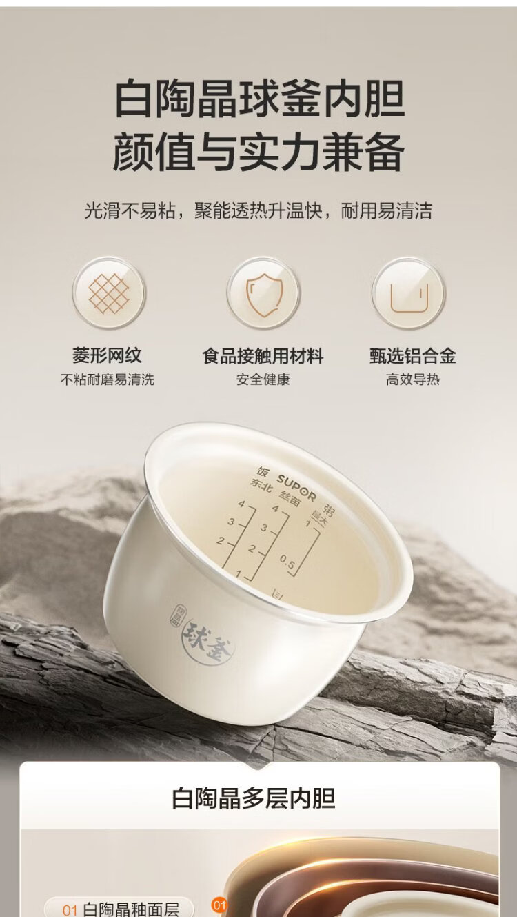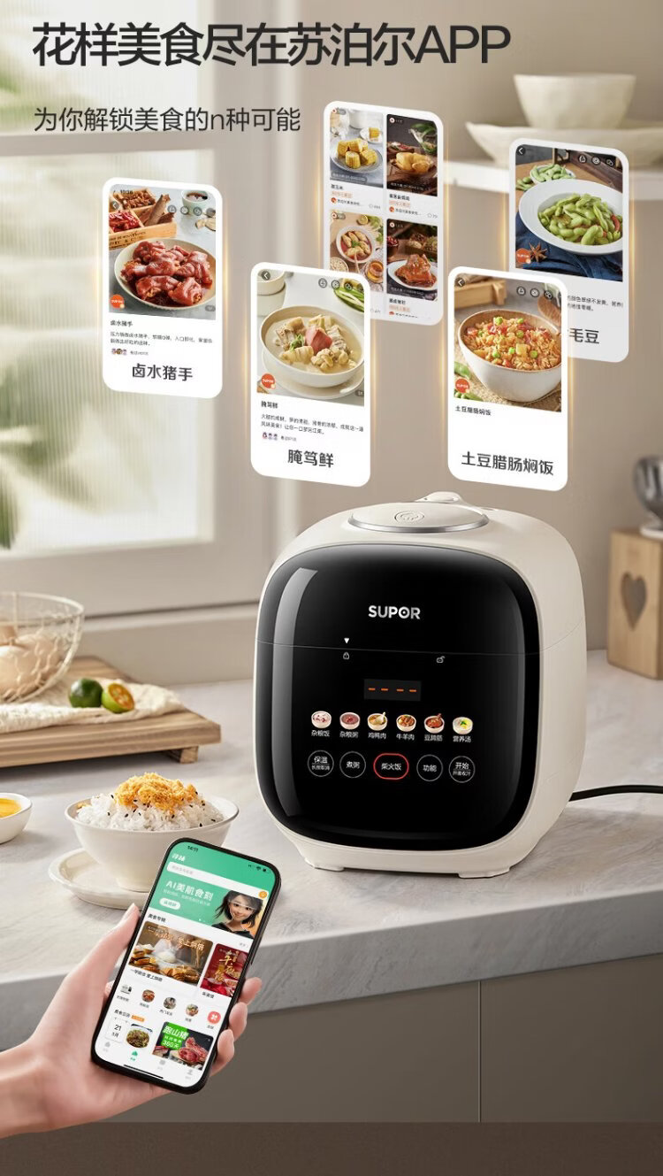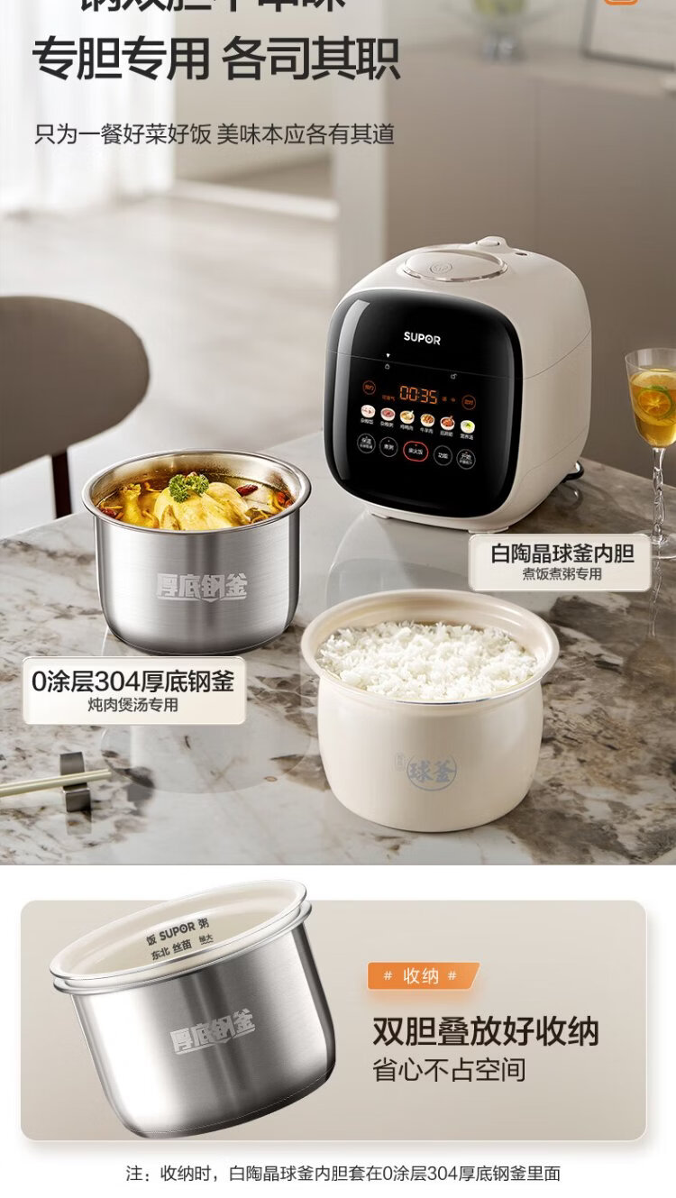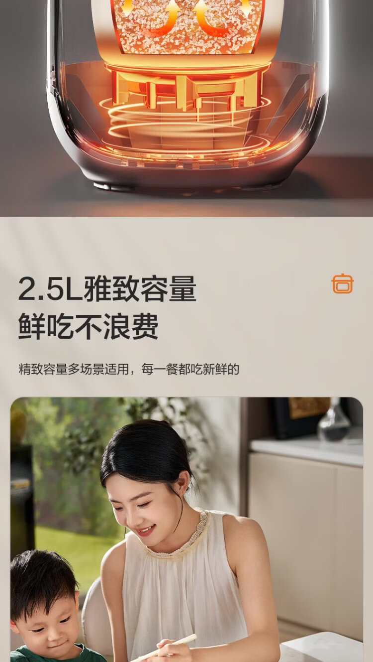 SUPOR 0-coated stainless steel ball kettle electric pressure cooker 2.5L household smart touch display SY-25FC2501Q double-gallon rice cooker pressure cooker for 1-3 people
