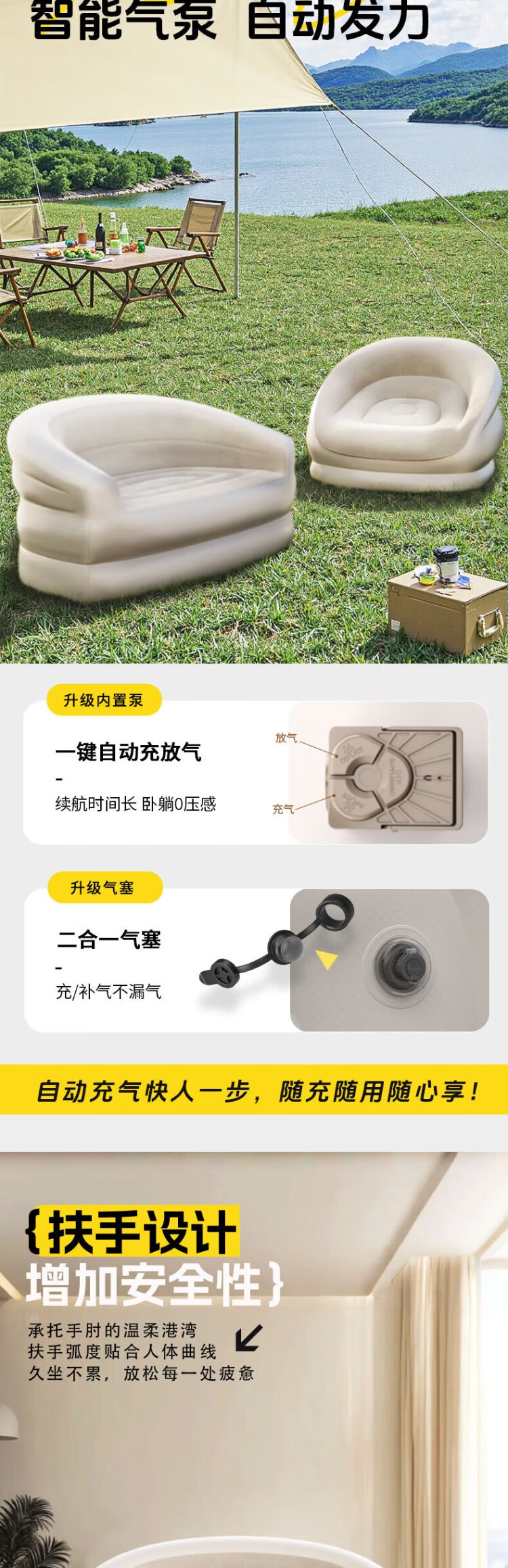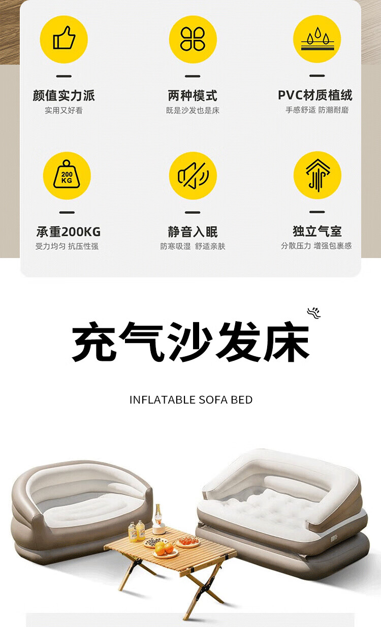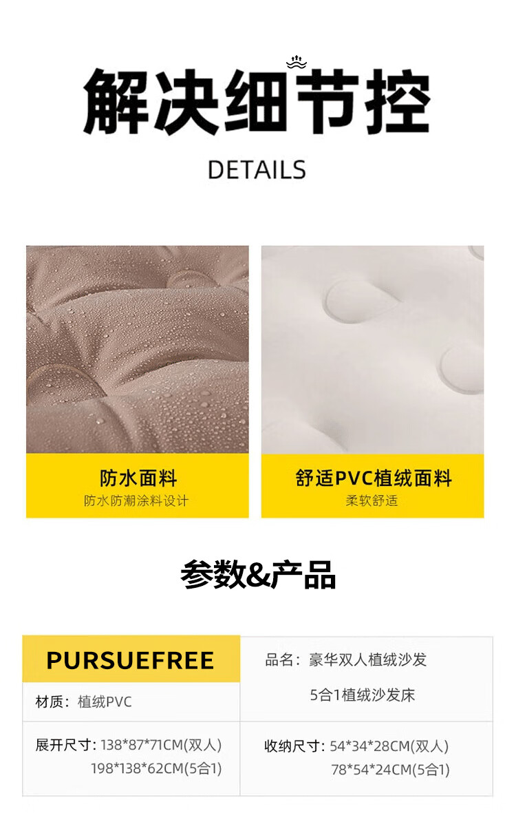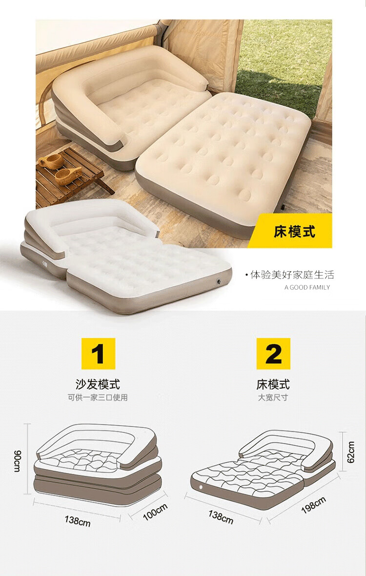 PURSUEFREE automatic inflatable sofa lazy leisure sofa bed portable folding camping tent flocked lounge chair YW22384