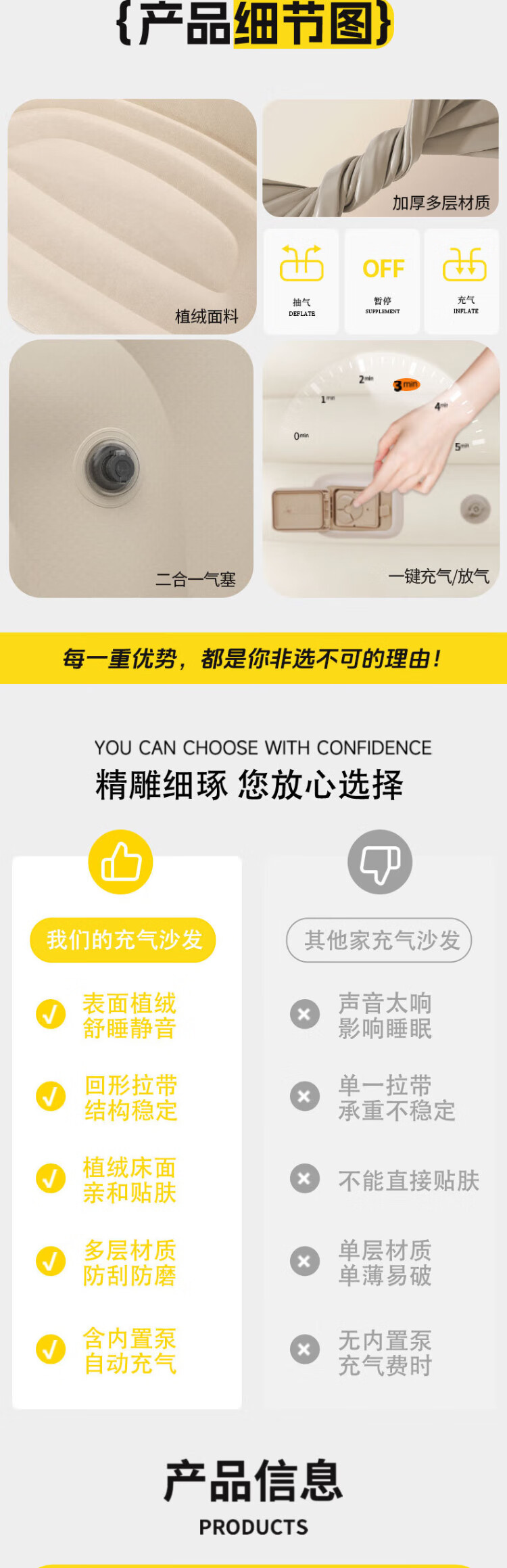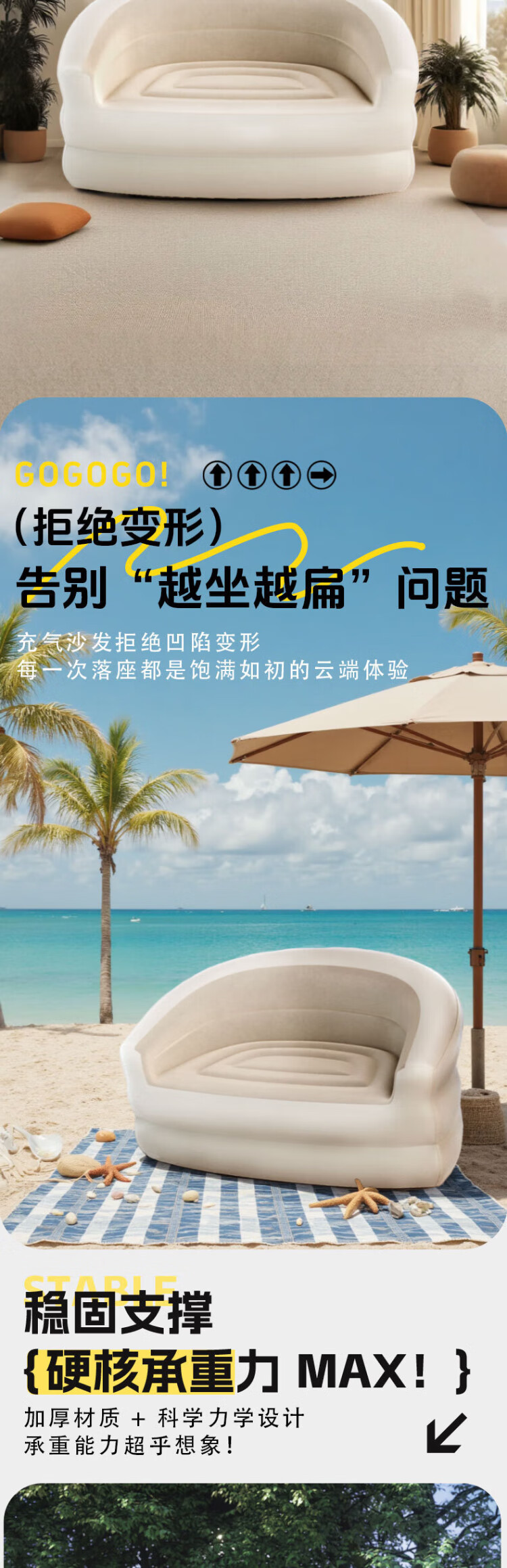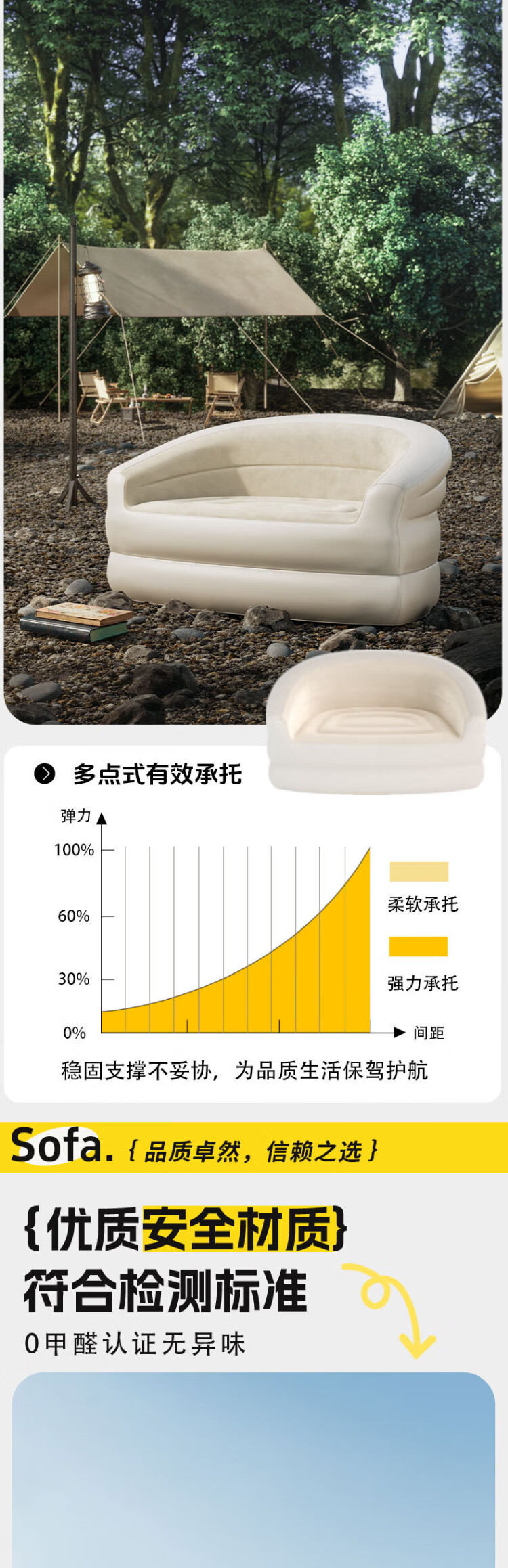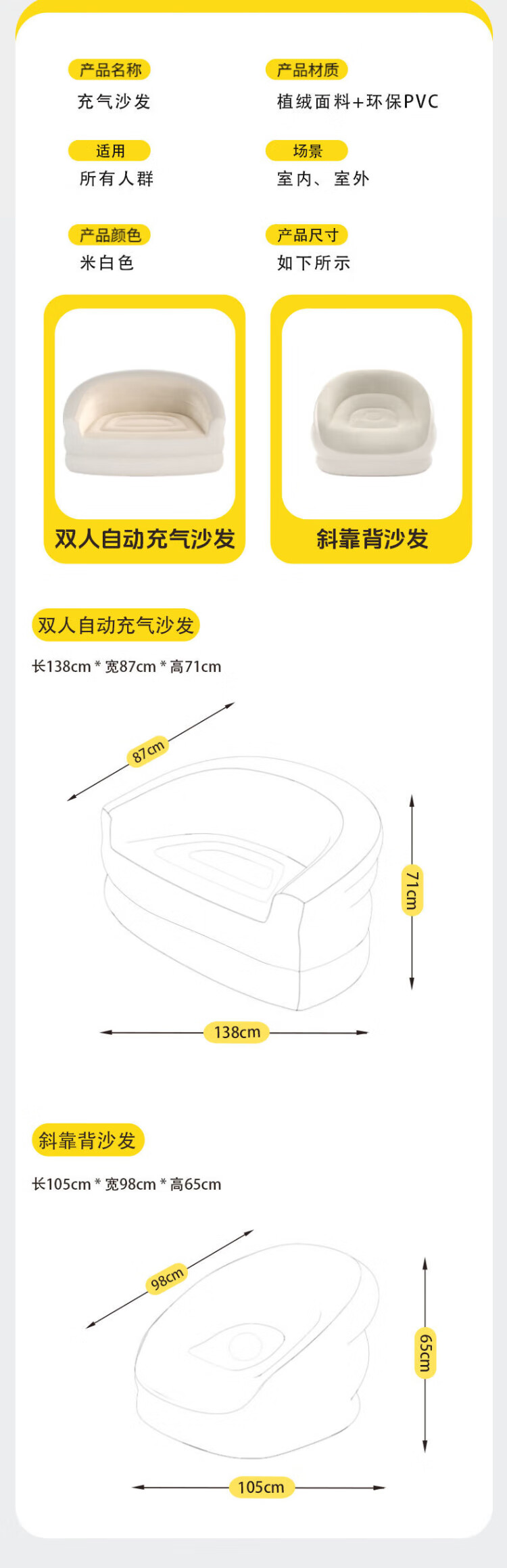 PURSUEFREE automatic inflatable sofa lazy leisure sofa bed portable folding camping tent flocked lounge chair YW22384