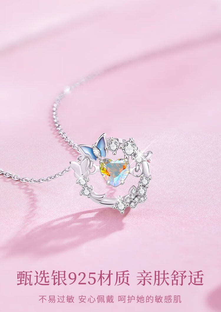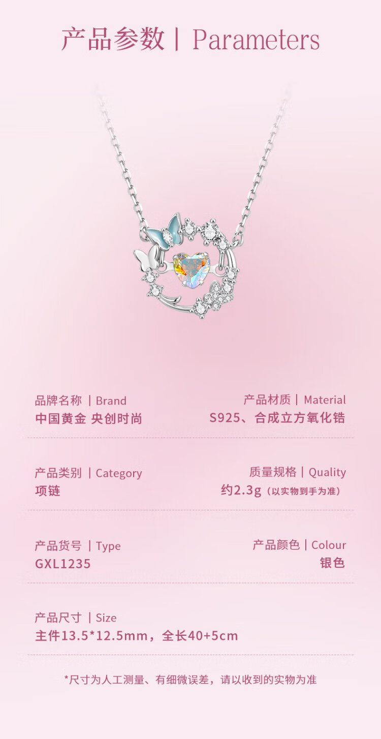 Central Chuang Fashion Chinese Gold Necklace Girls Birthday Gift Women's Pendant Light Luxury Niche High-end Gift for Girlfriend and Best Friend S925