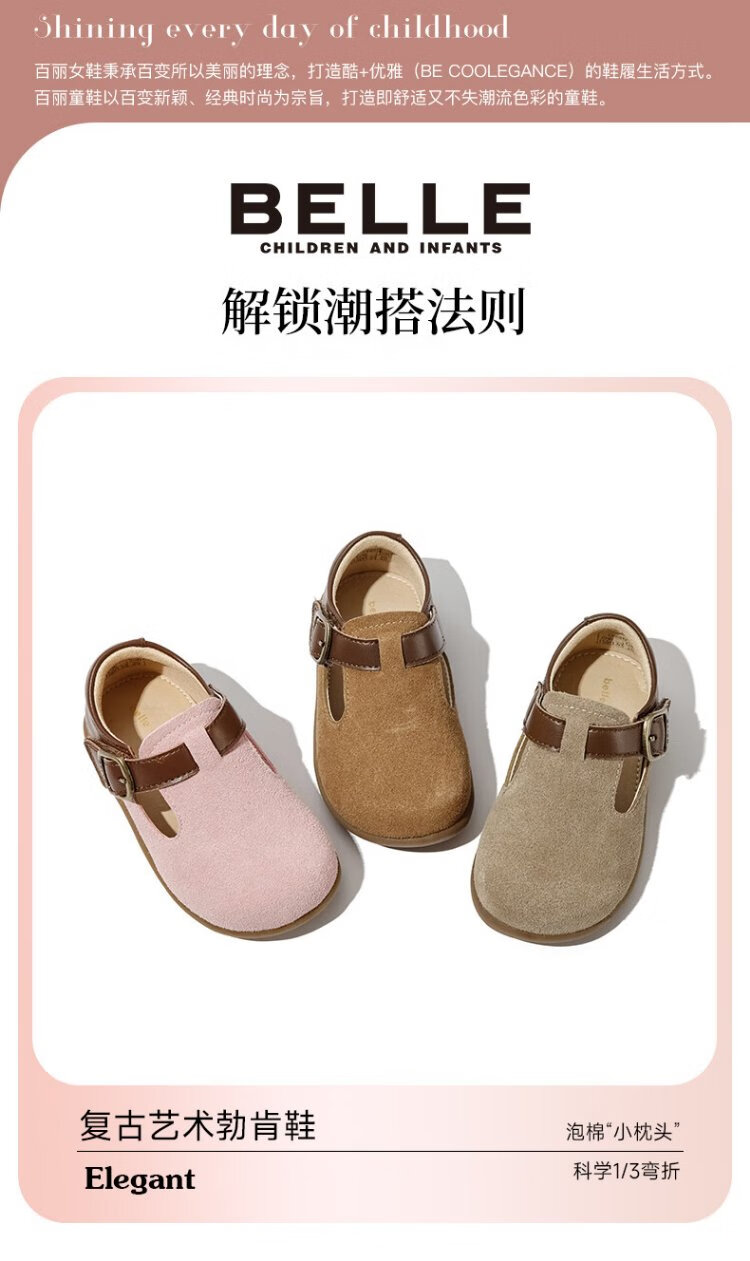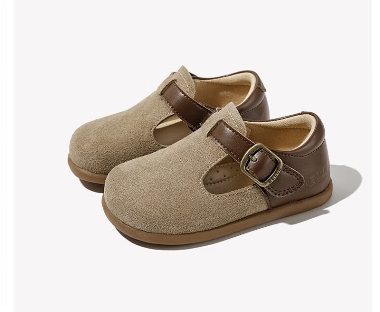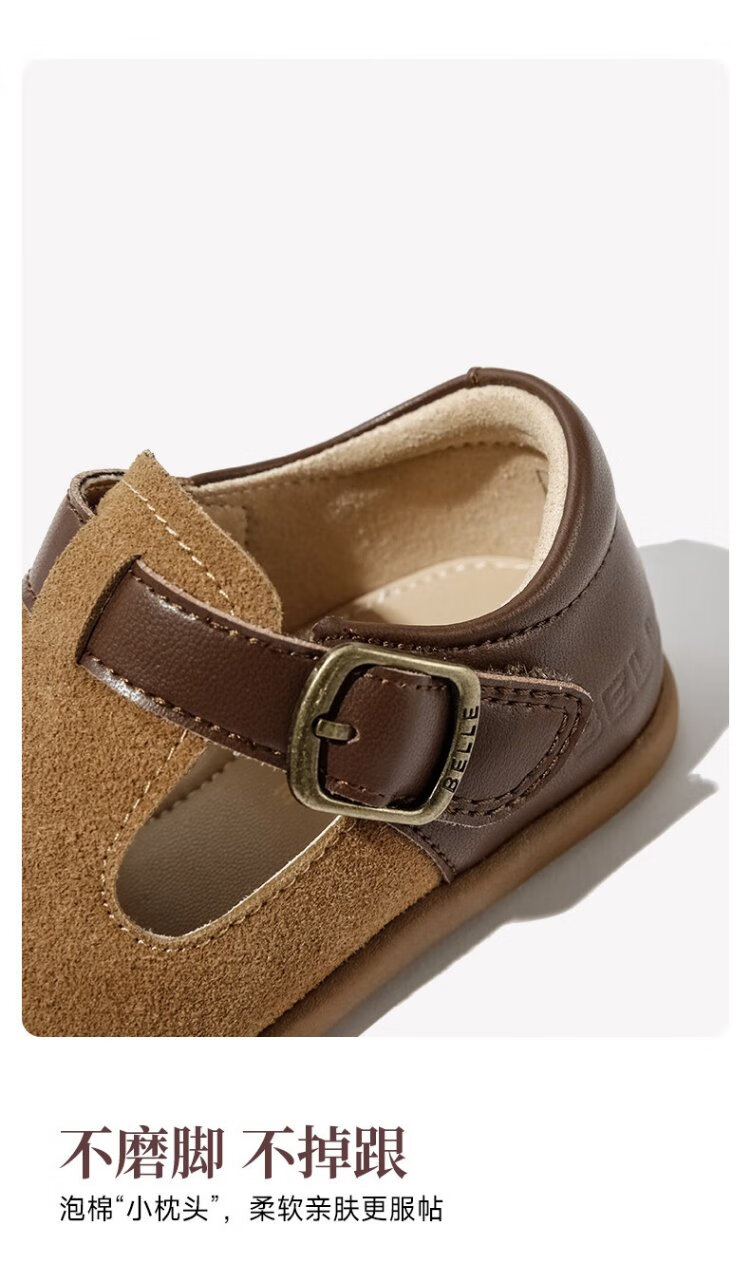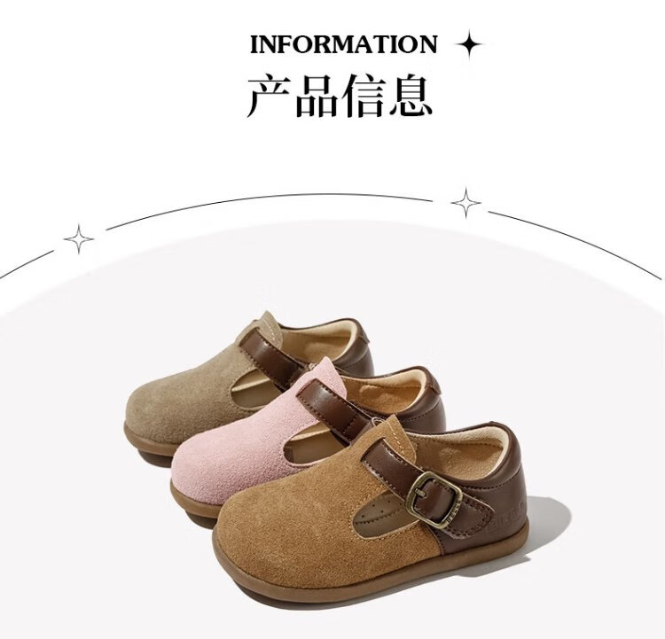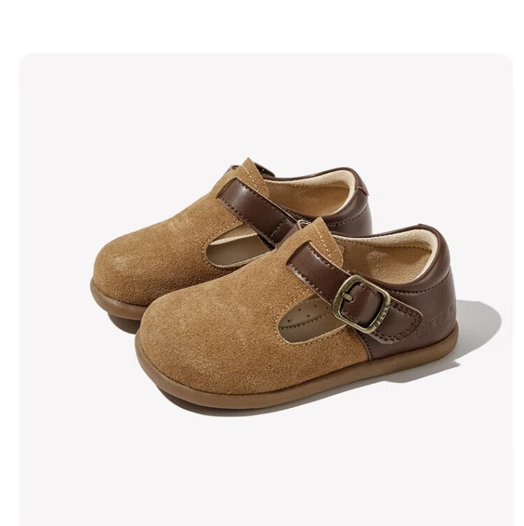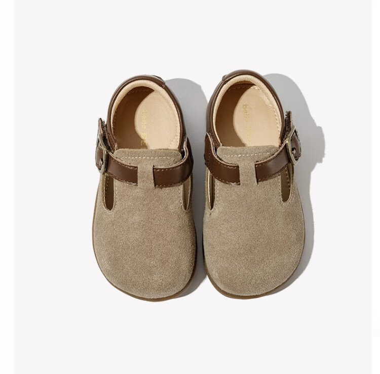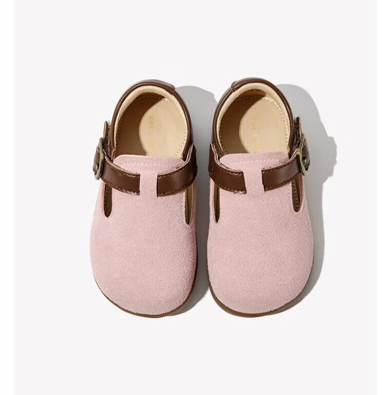 Belle Children's Shoes Girls' Birkenstock Shoes 1-3 Years Old Baby Shoes 25 Years Spring and Autumn New Single Shoes Leather Shoes Twilight Pink/Brown 24