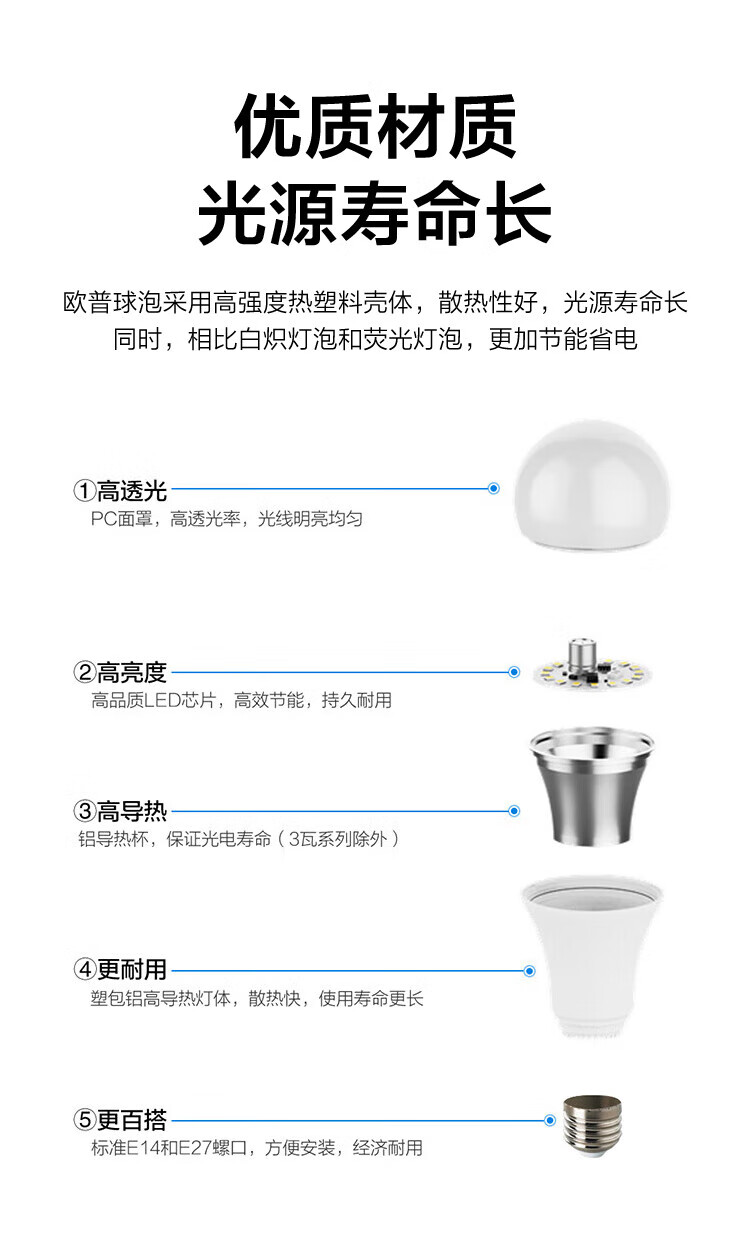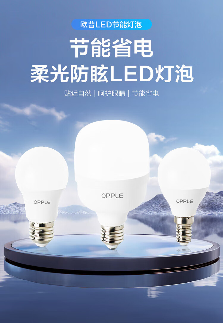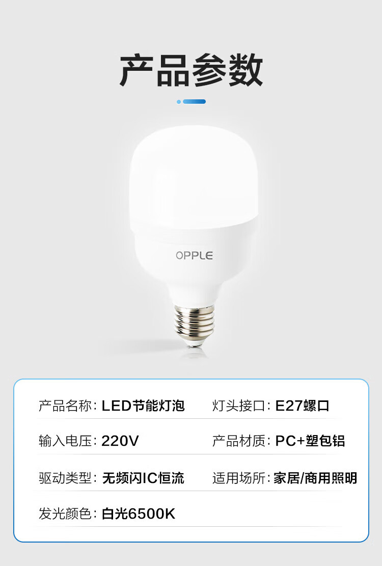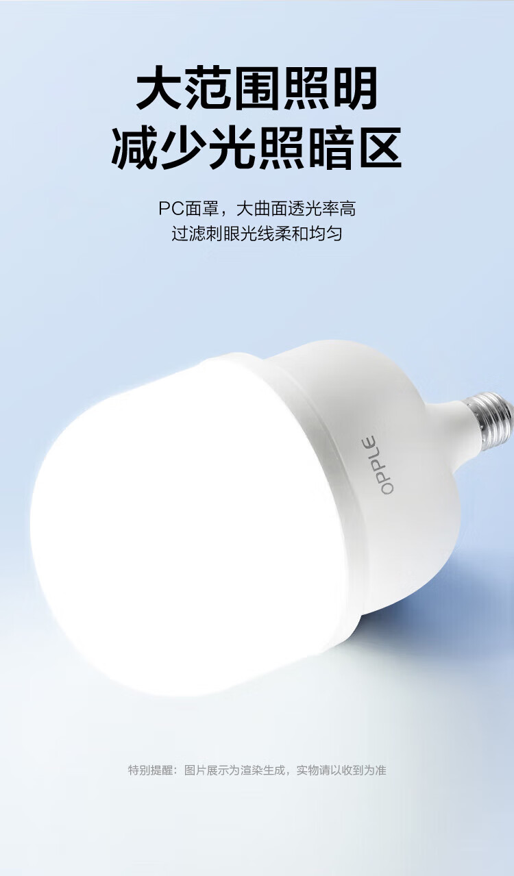 OPPLE LED bulb bulb E27 screw commercial high-power factory industrial and mining lamp chandelier 6500K incandescent lamp 70W white light floor lamp