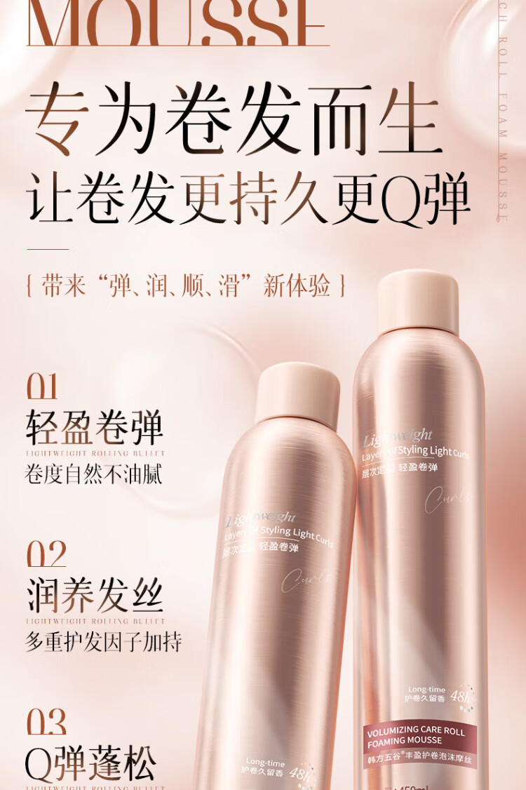 Korean herbal grain foam hair wax hair gel elastic curling mousse curling spray moisturizing styling elastic for men and women 450ml