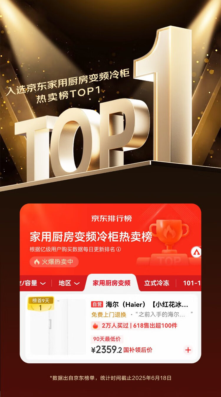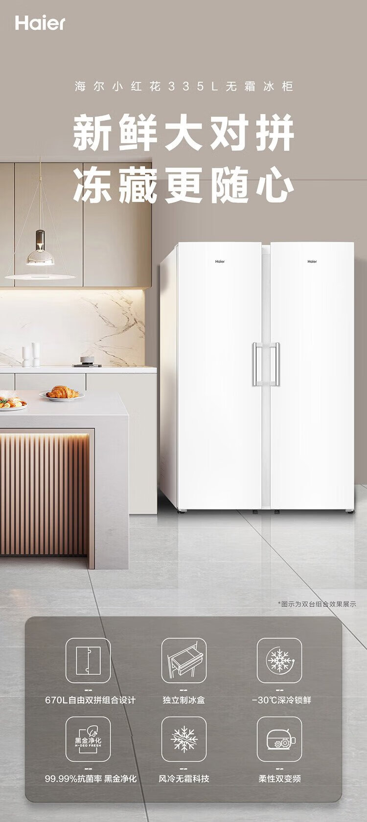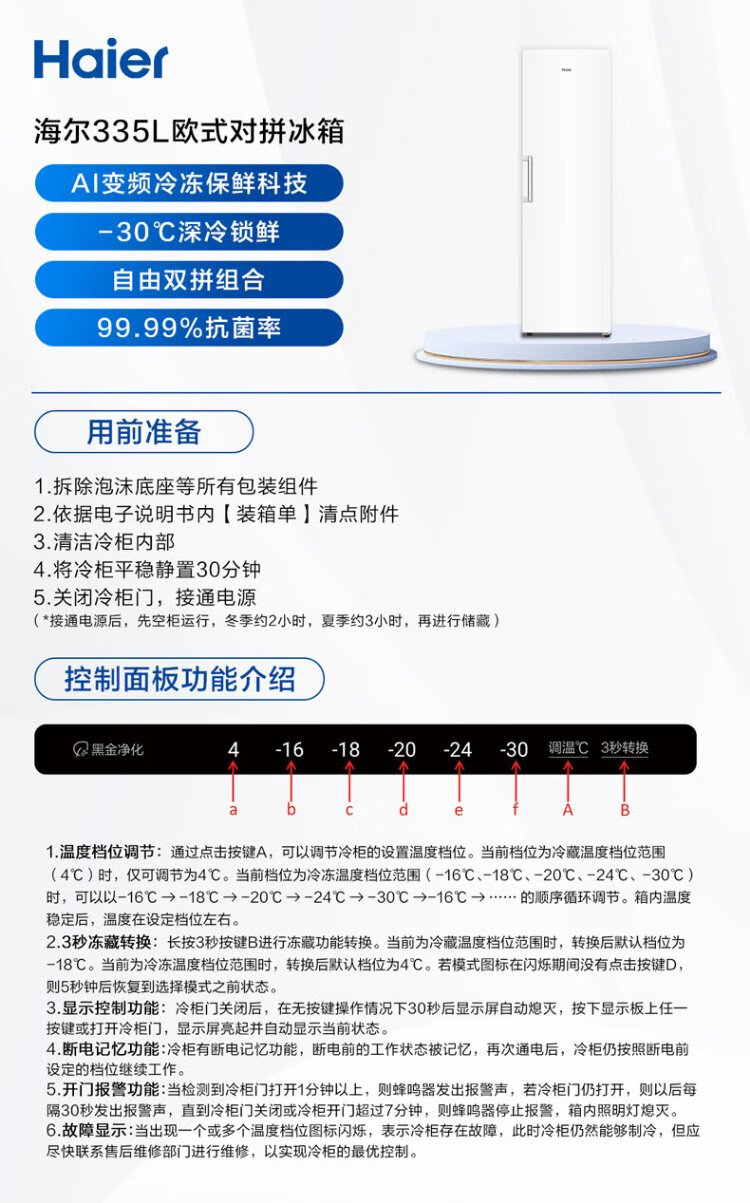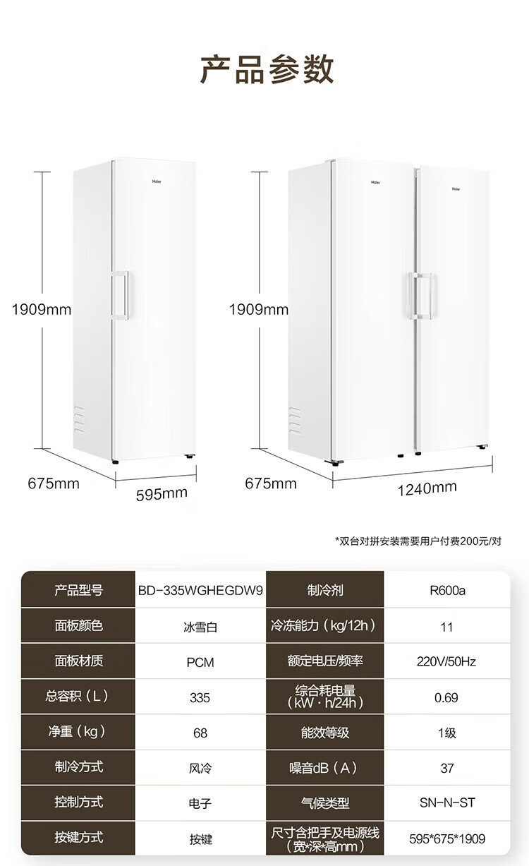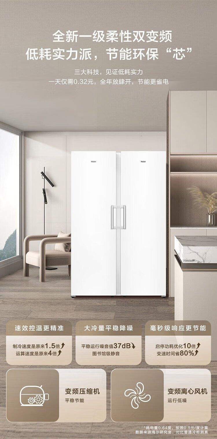 Haier Xiaohonghua Freezer-Blooming Edition 335L air-cooled frost-free small freezer household upright freezer refrigeration freezer small refrigerator BD-335WGHEGDW9 national subsidy