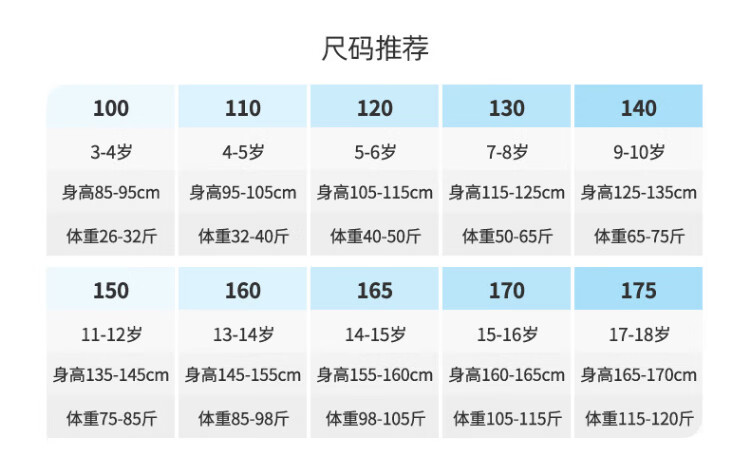 China (cm) 160-165/84-86 165-170 / 88-90 167-172 / 92-96 168-173 / 98-102 170-176 / 106-110