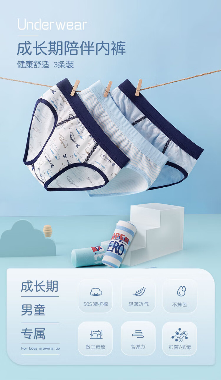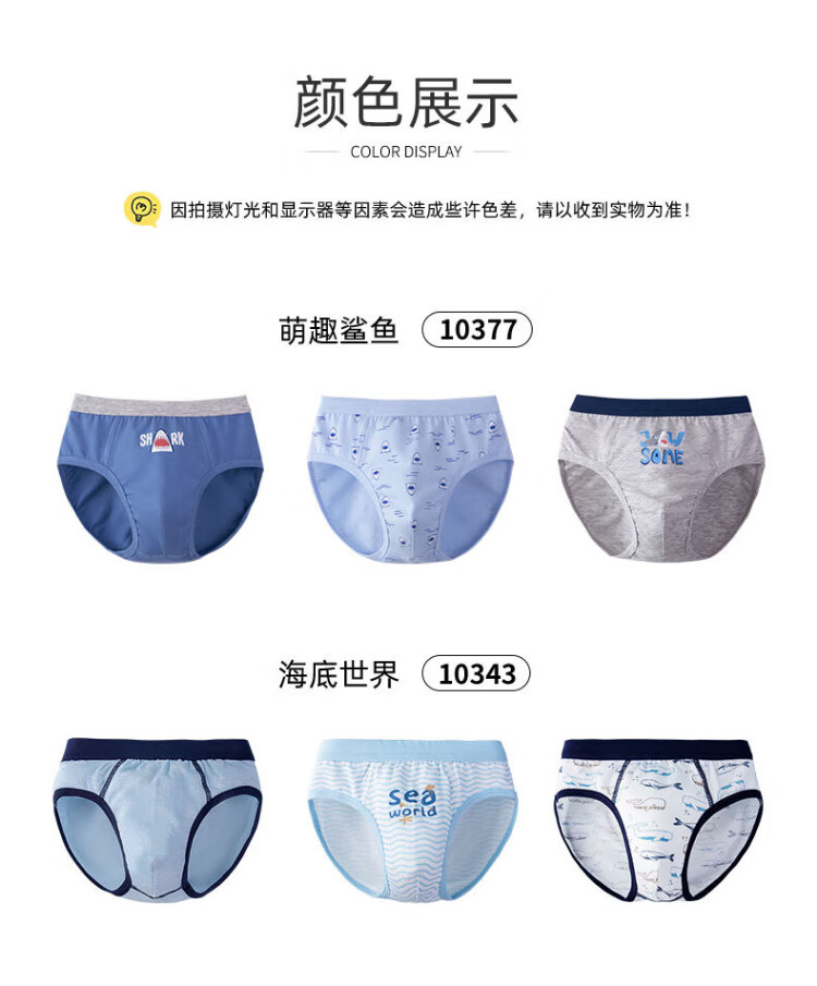 Inbolen boys pure cotton Lycra briefs children's shorts 10343 Underwater World 3 pairs 150