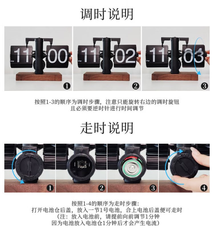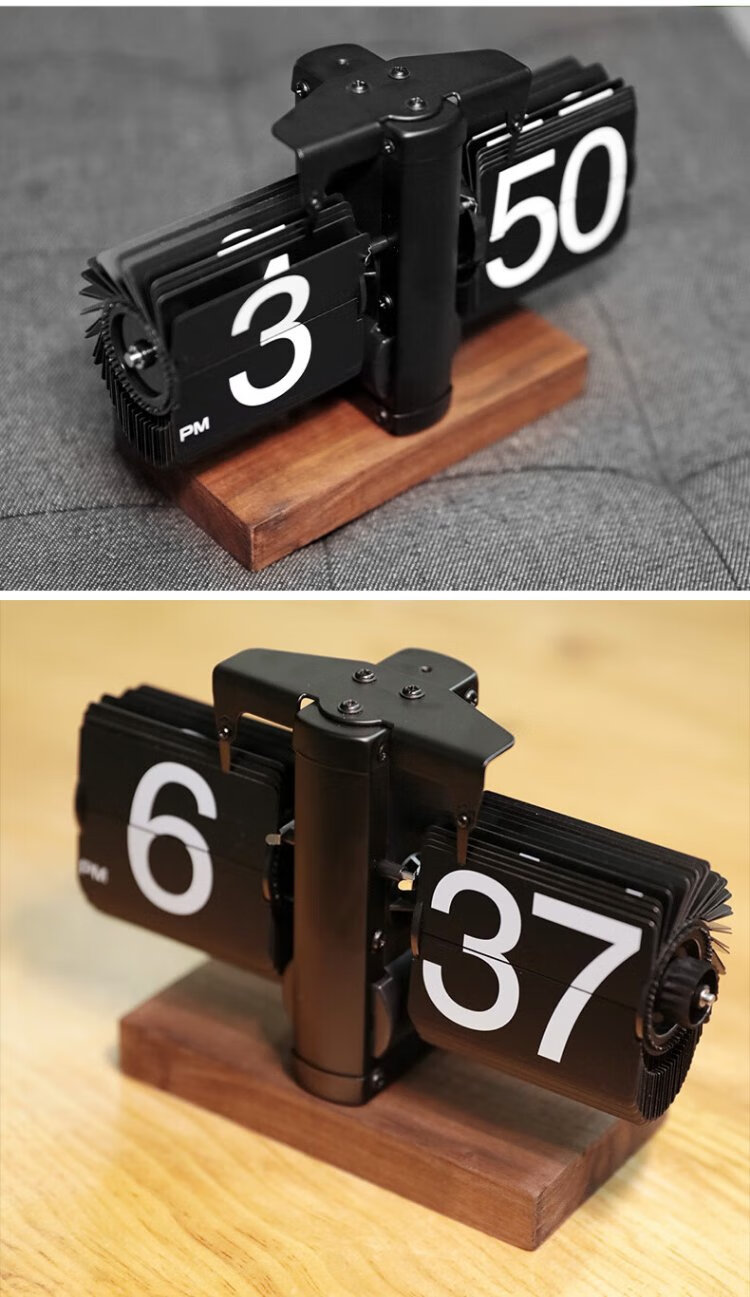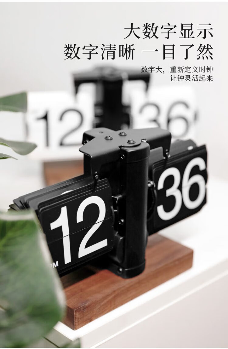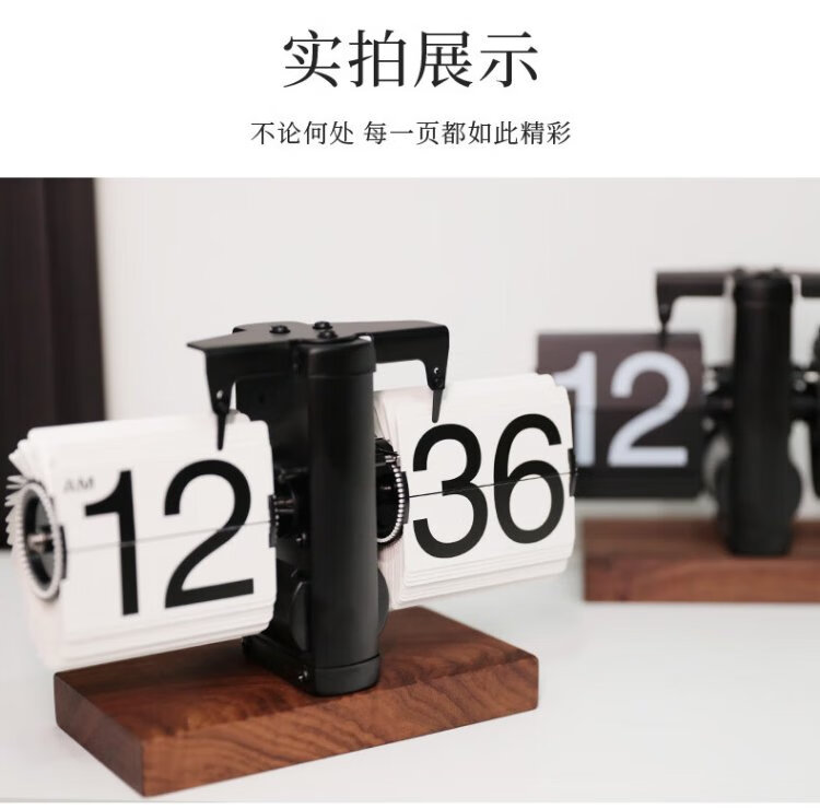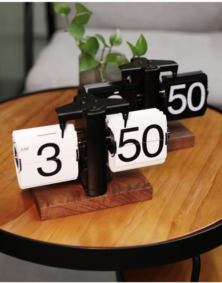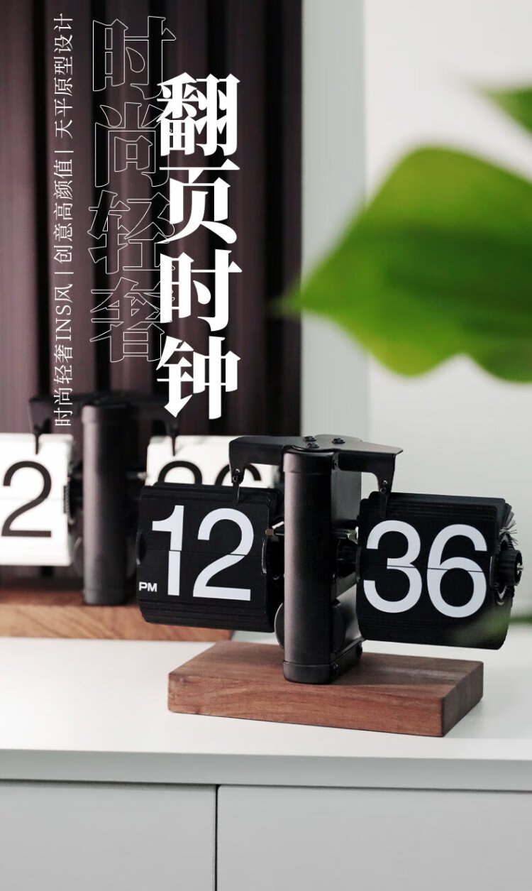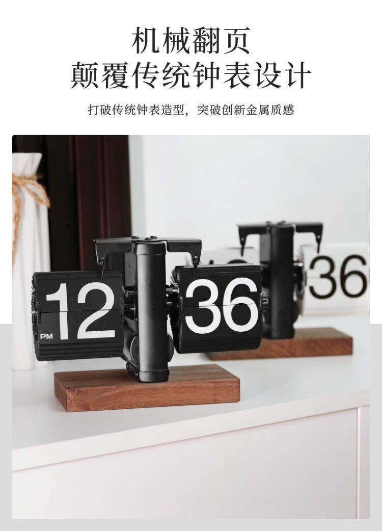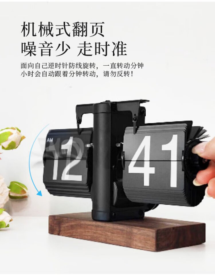 Momen mechanical automatic page-turning clock, retro Nordic simple style clock, living room personalized desktop creative ornament solid wood base clock