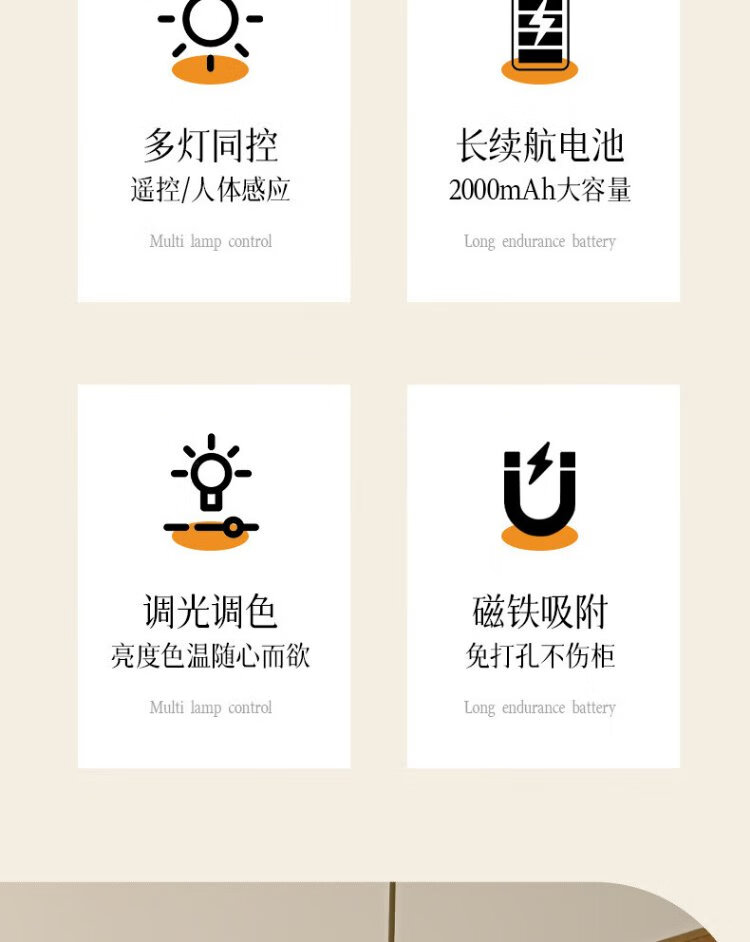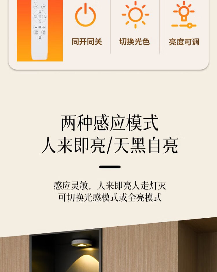 Guan'an LED induction rechargeable spotlight wireless remote control atmosphere light magnetic suction figure lamp white three-color dimming + remote control