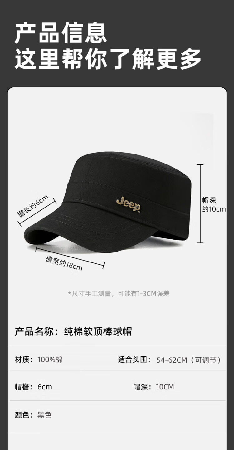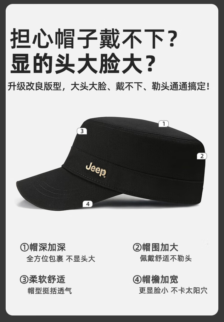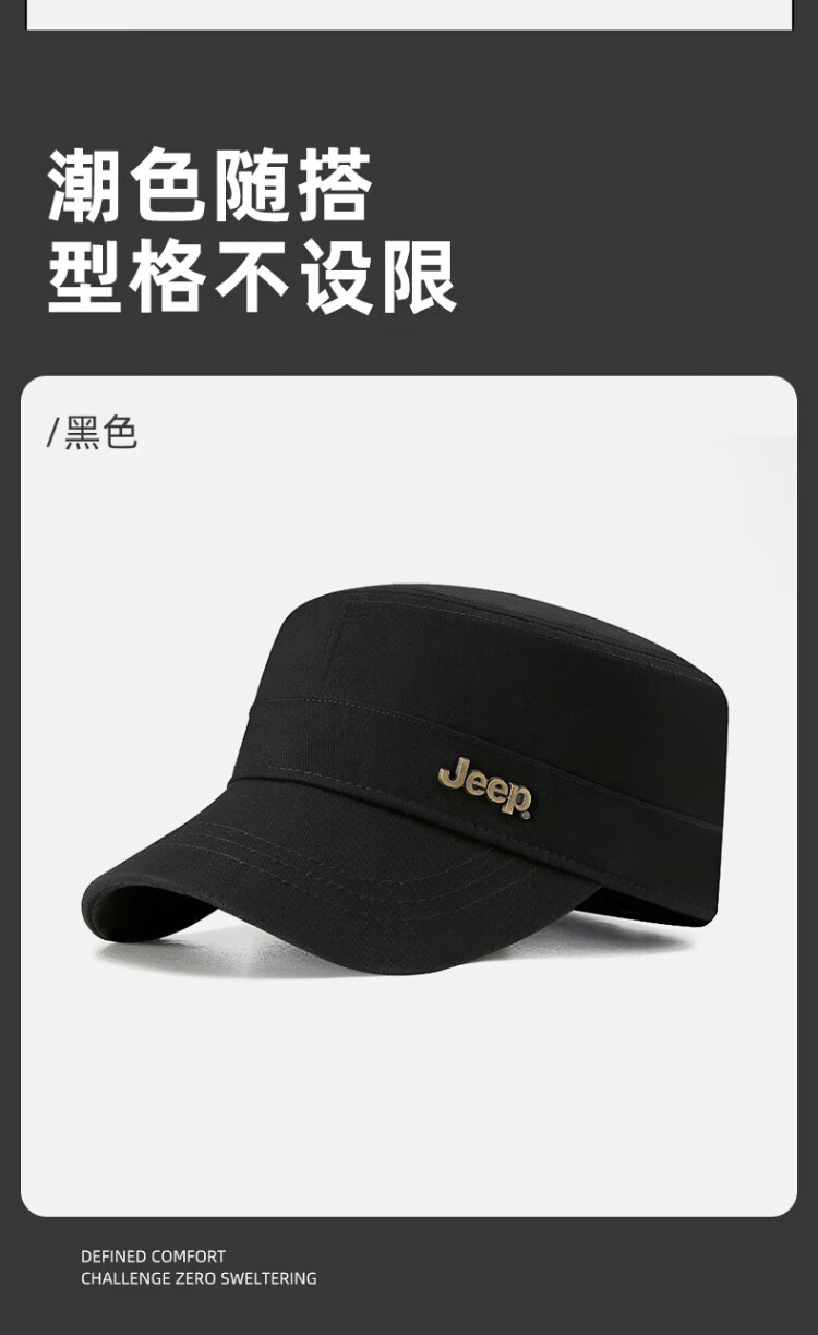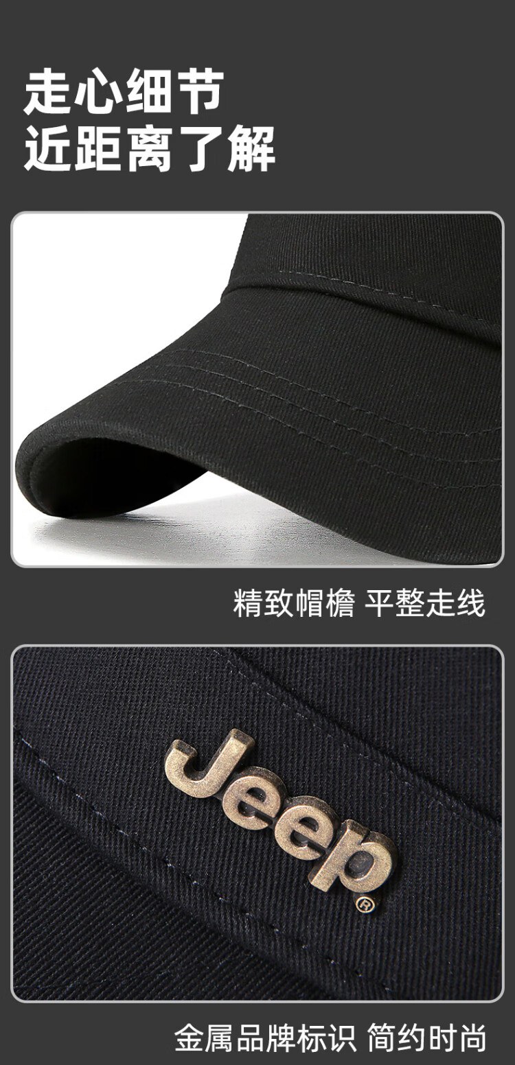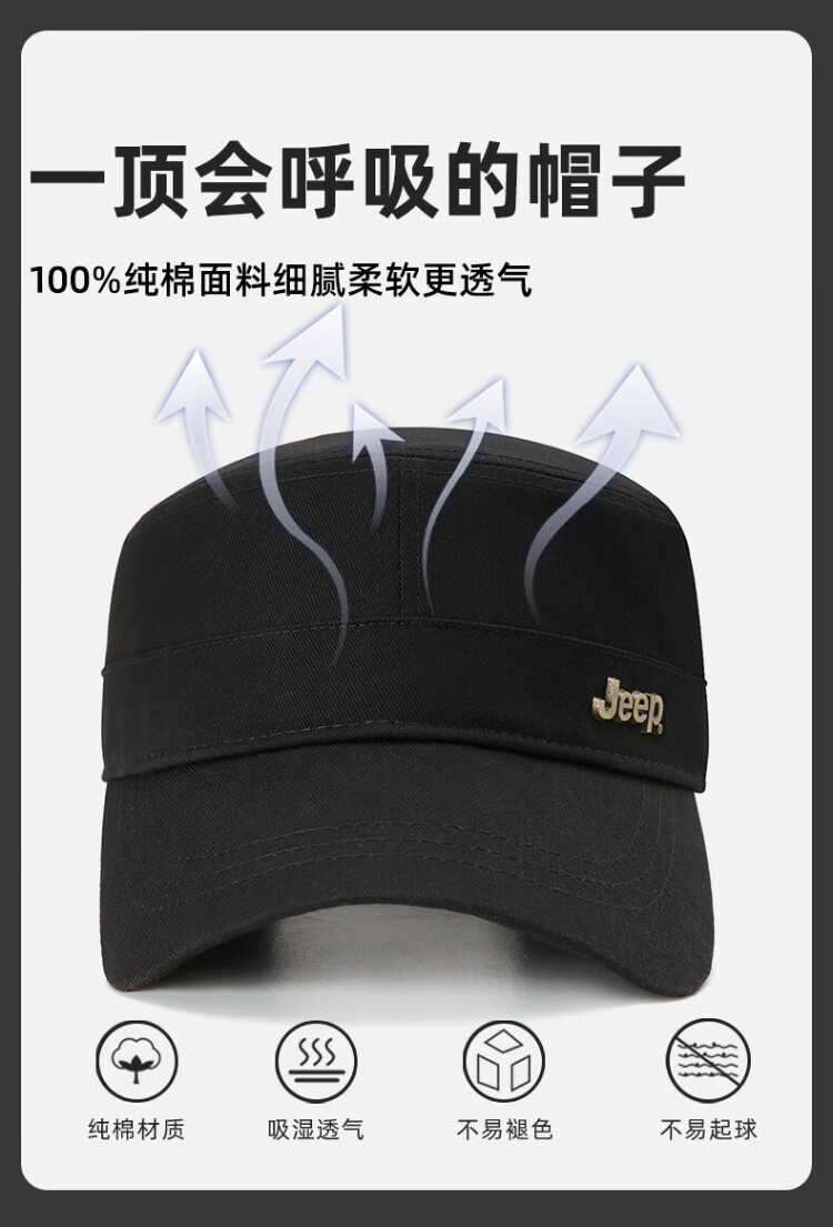 Jeep (JEEP) hat men's four-season flat cap pure cotton breathable casual baseball cap metal label middle-aged and elderly sunvisor peaked cap