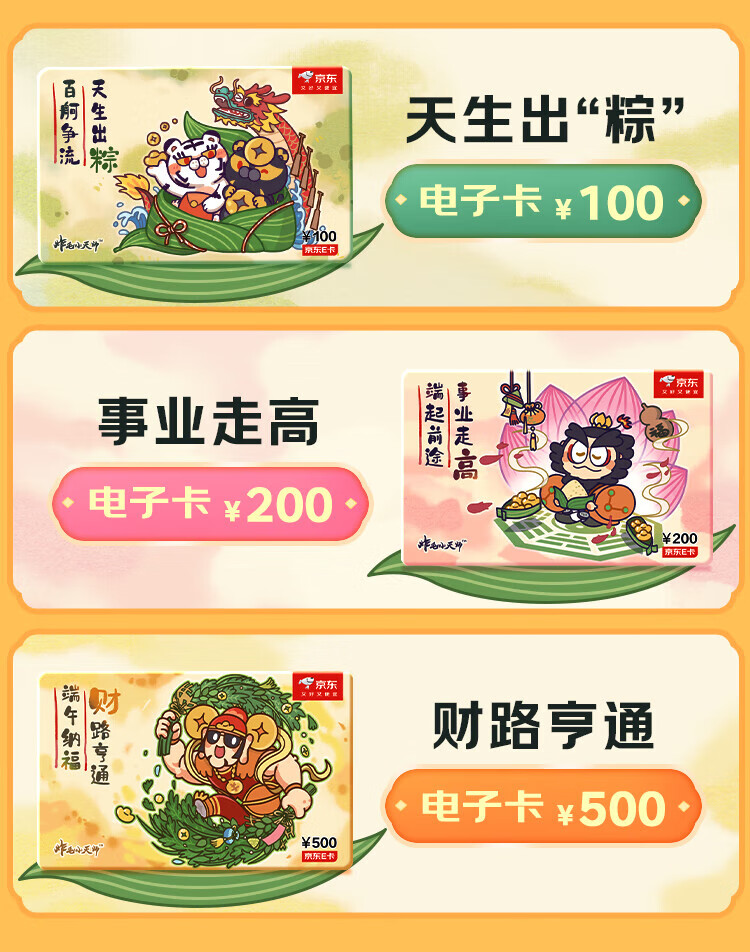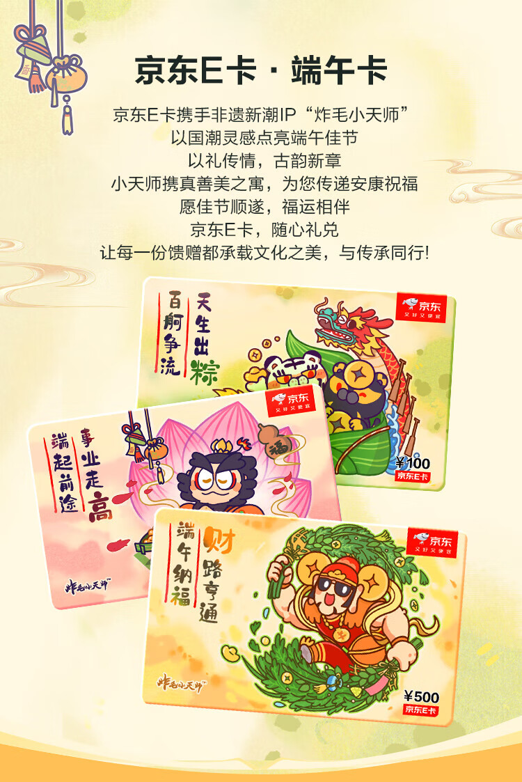 Jingdong E Card Dragon Boat Festival Card Fried Little Heavenly Master co-branded 200 yuan (electronic card) official self-operated gift card/shopping card/pickup card
