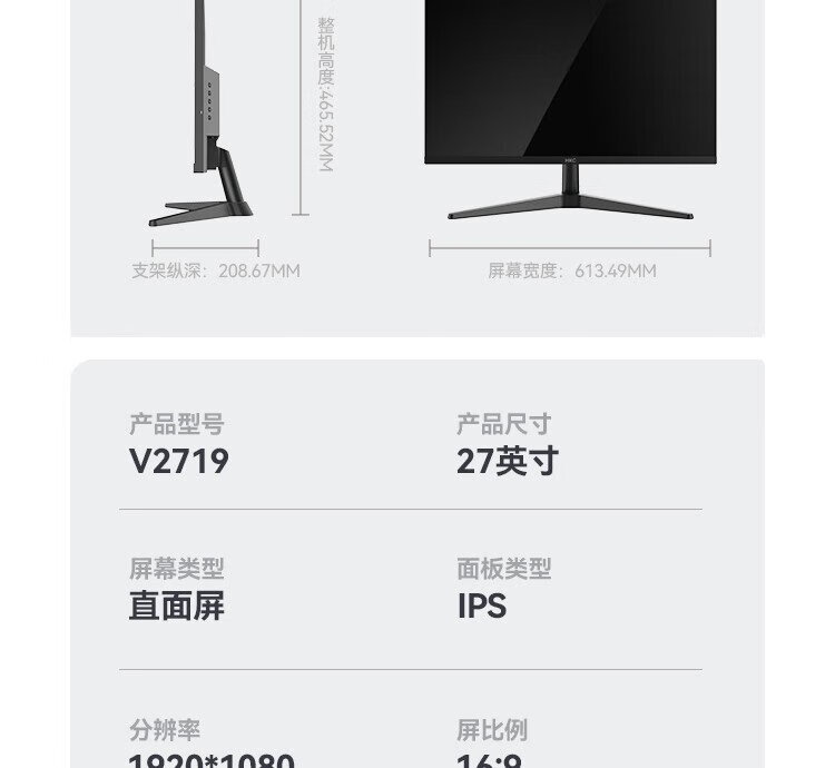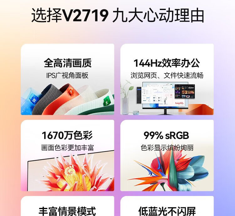 HKC 27-inch 144Hz high brush IPS panel 1080P low blue light non-flicker screen 99%sRGB wide color gamut e-book computer external e-sports game office monitor V2719