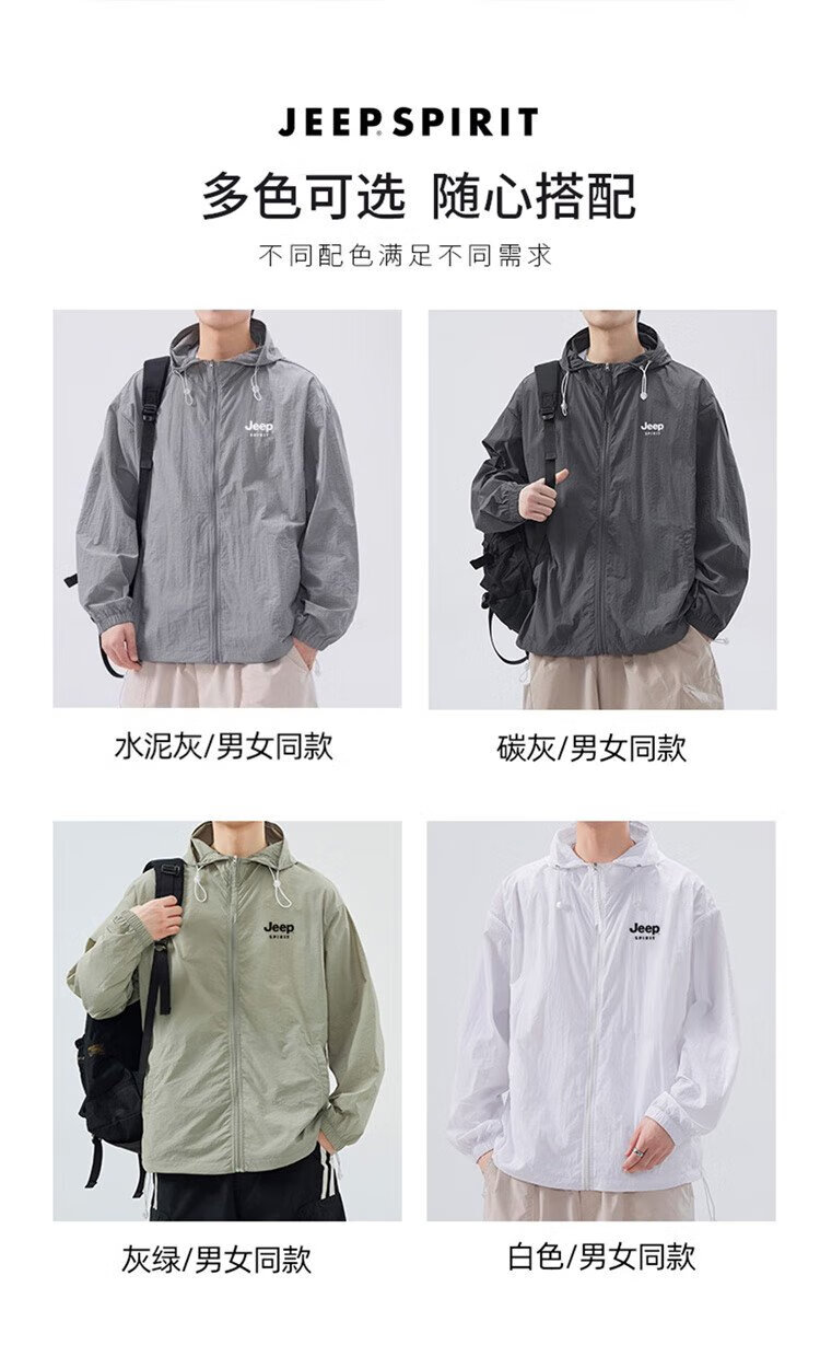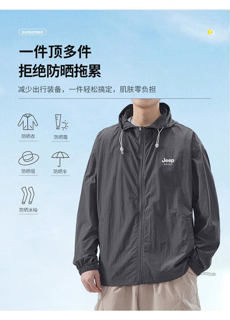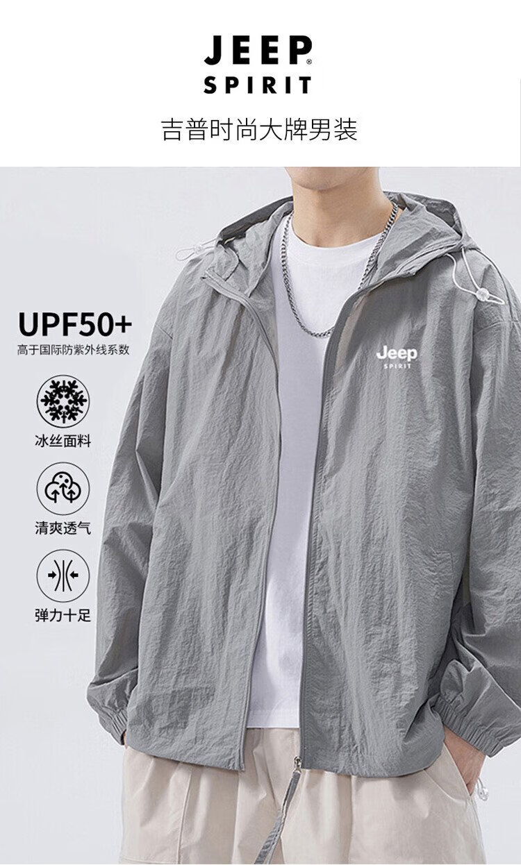 JEEP SPIRIT Jeep sun protection clothing men's ice silk summer jacket thin outdoor fishing high-end anti-UV skin clothing