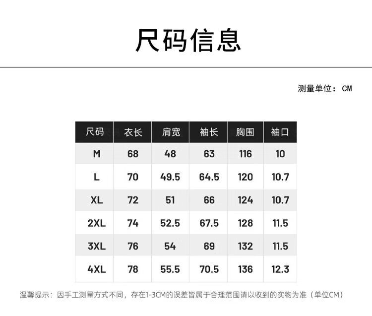 China (cm) 165 / 88-90 170 / 96-98 175 / 108-110 180 / 118-122 185 / 126-130