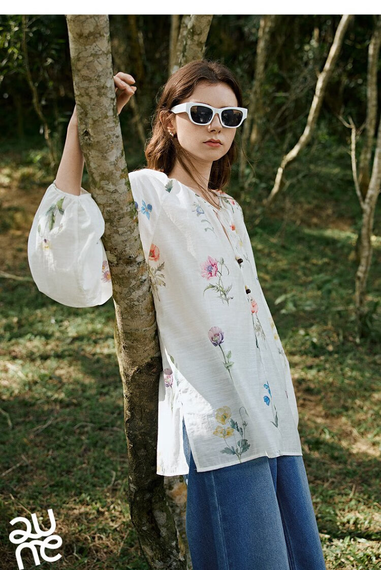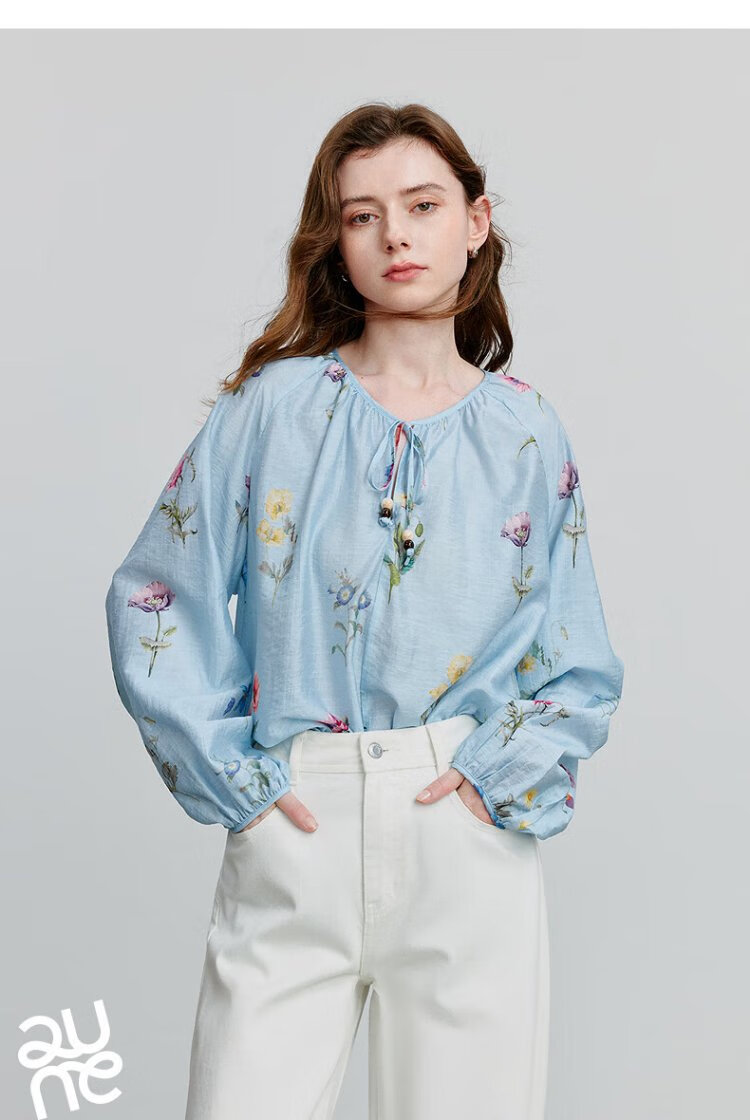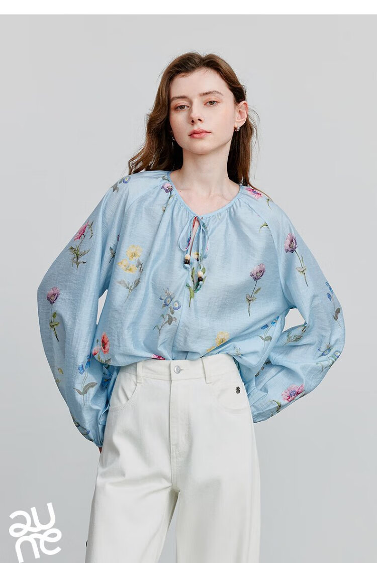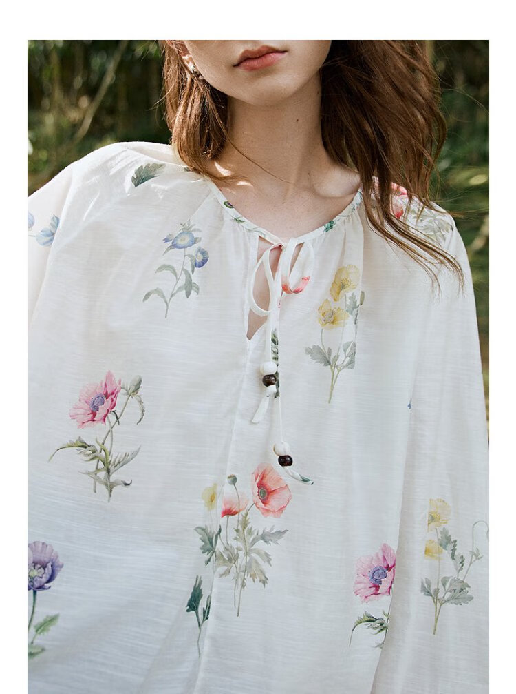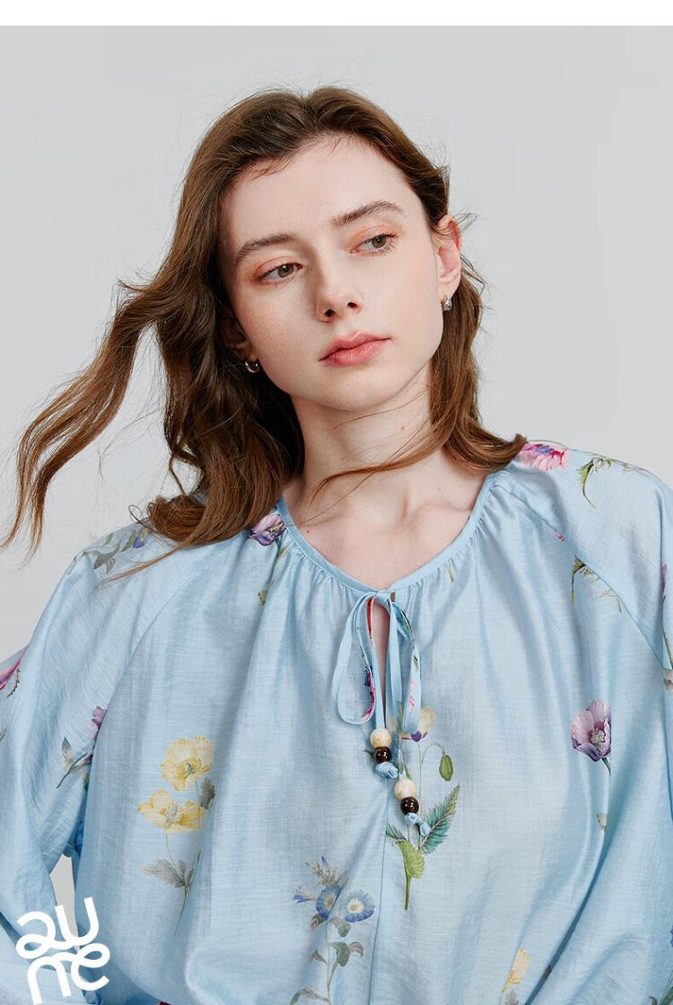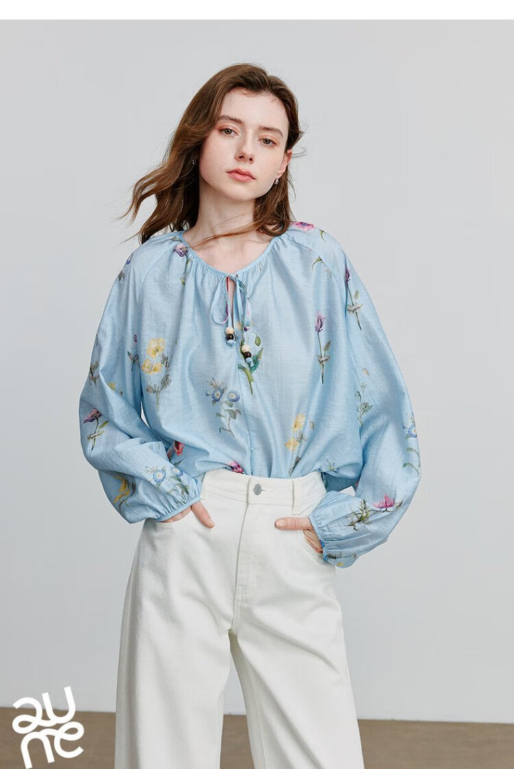 Chuyu Small Fresh Linen Printed Shirt Women's 2025 Spring New Loose Shirt Top Blue Bottom Green Velvet XL