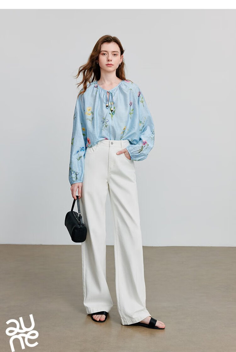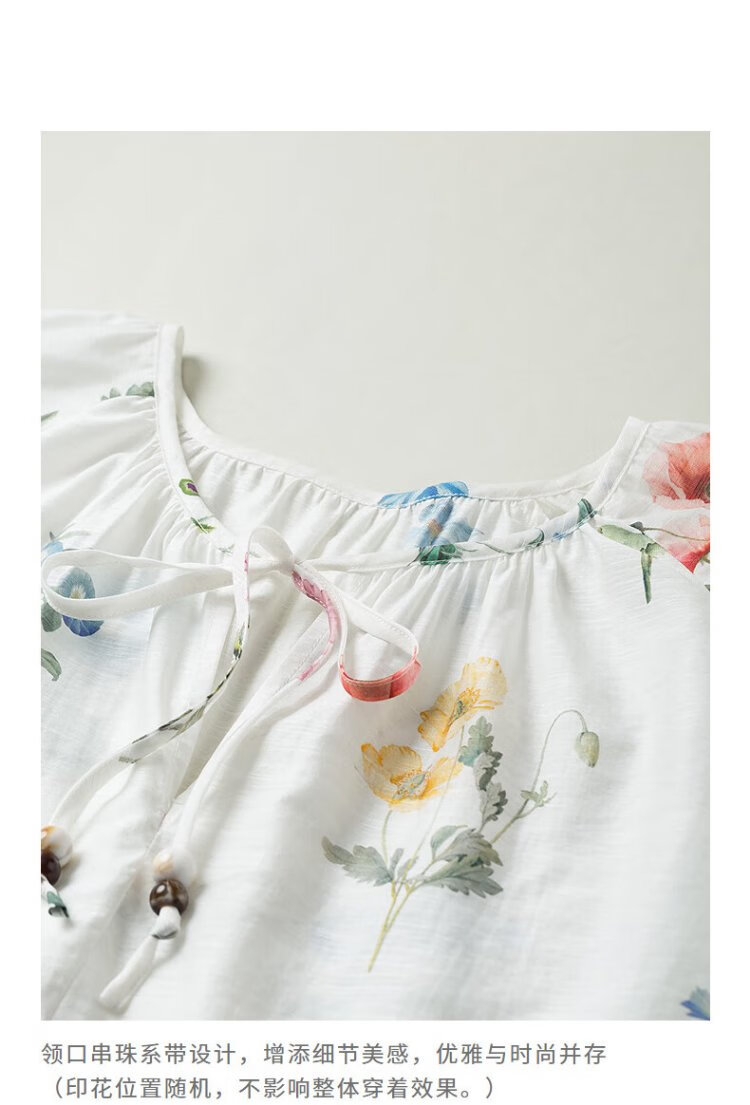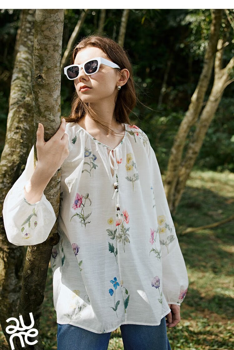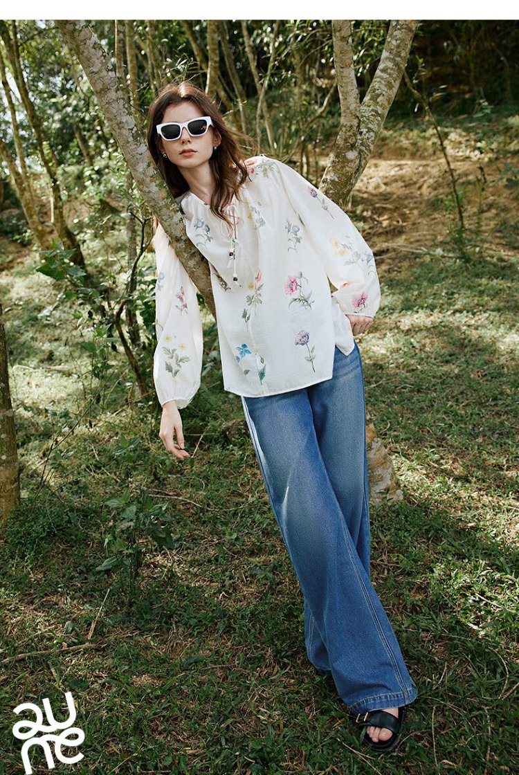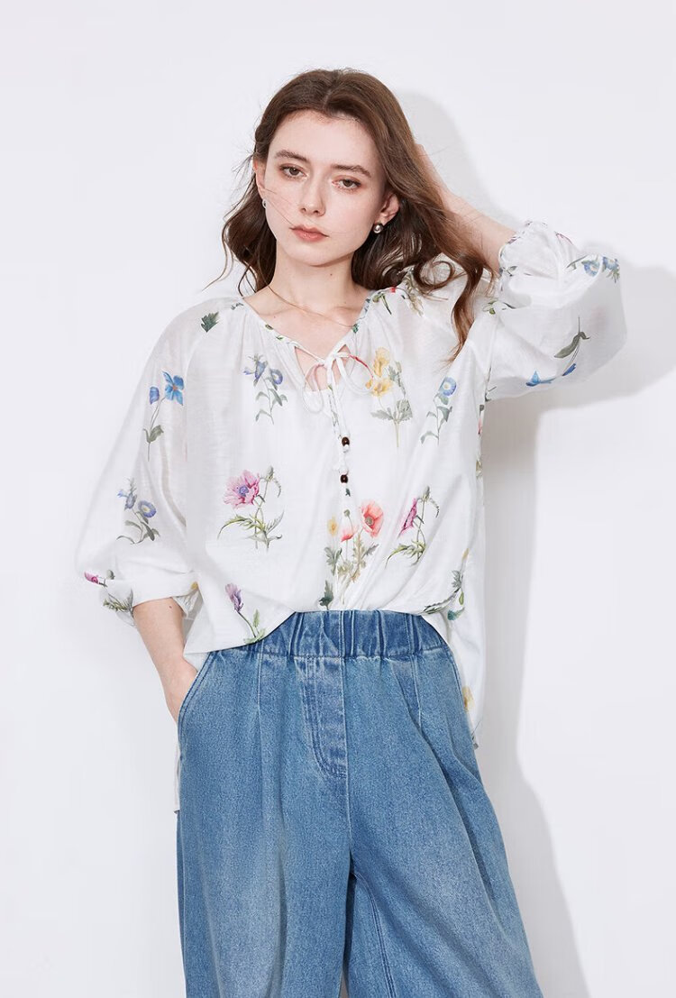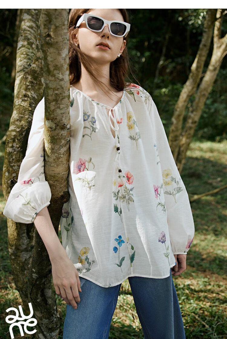 Chuyu Small Fresh Linen Printed Shirt Women's 2025 Spring New Loose Shirt Top Blue Bottom Green Velvet XL
