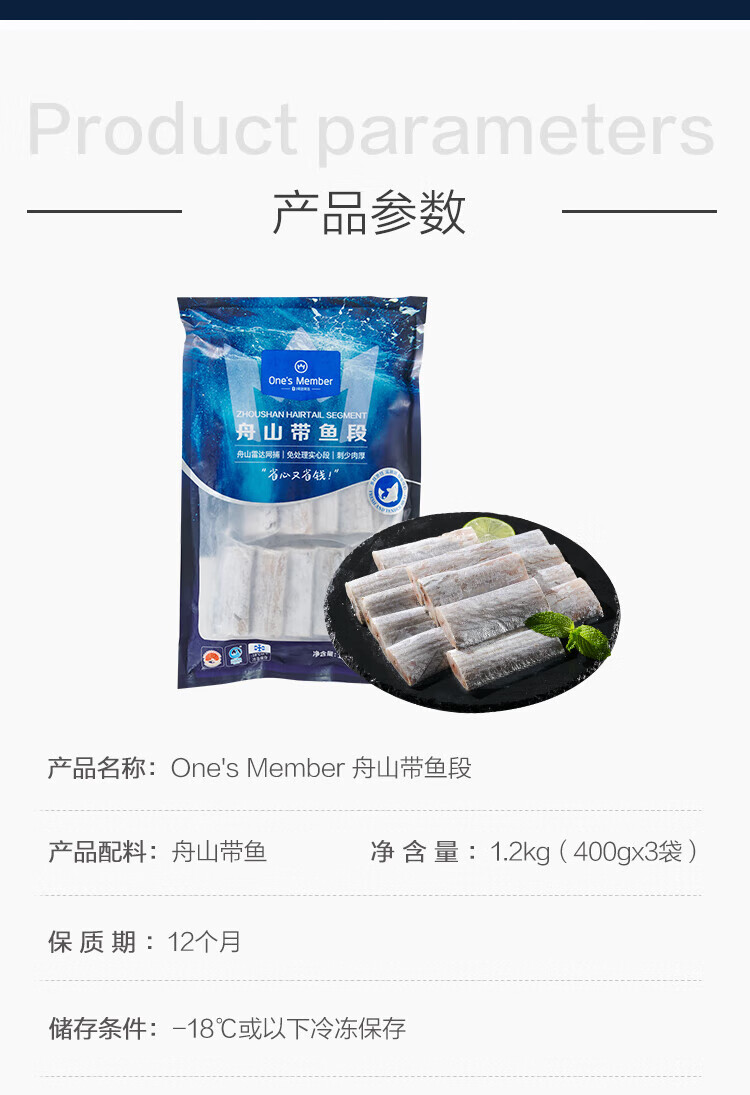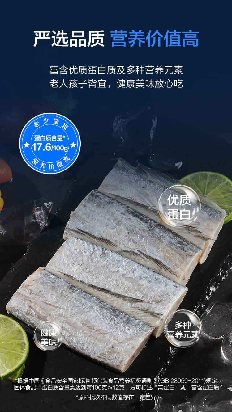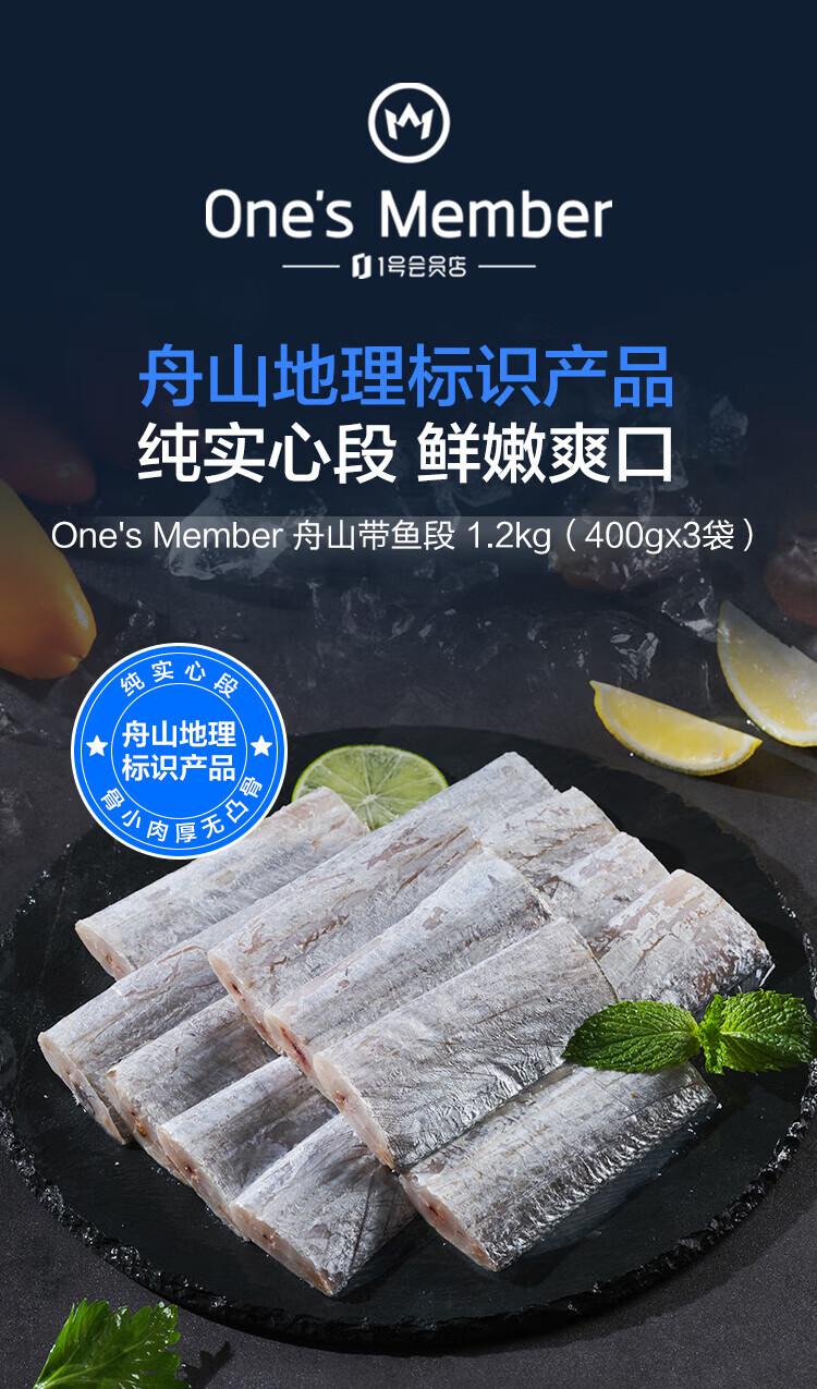 No. 1 Member Store Frozen Zhoushan Solid Hairtail Segments (400g*3 bags) 1.2kg, no internal organs, geographical indication, fresh fish