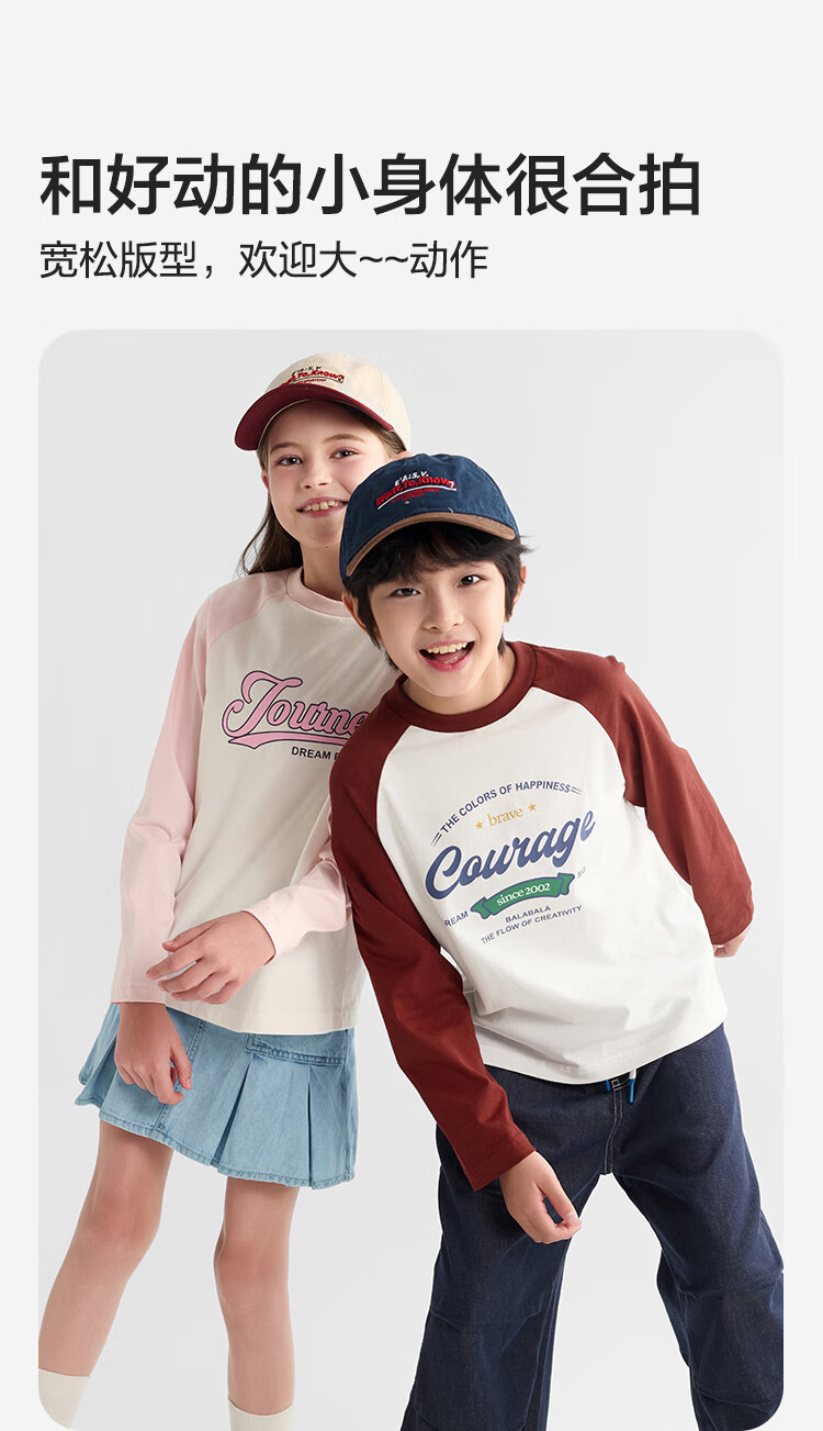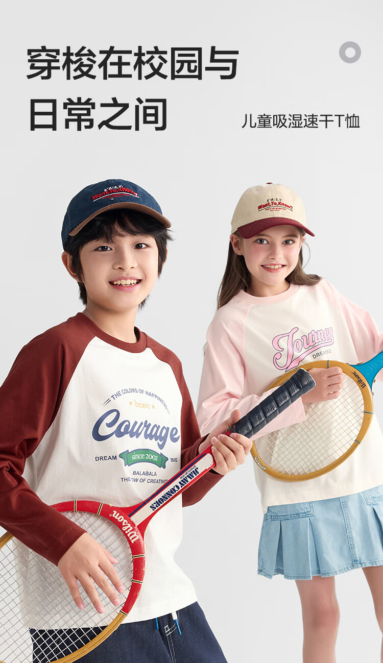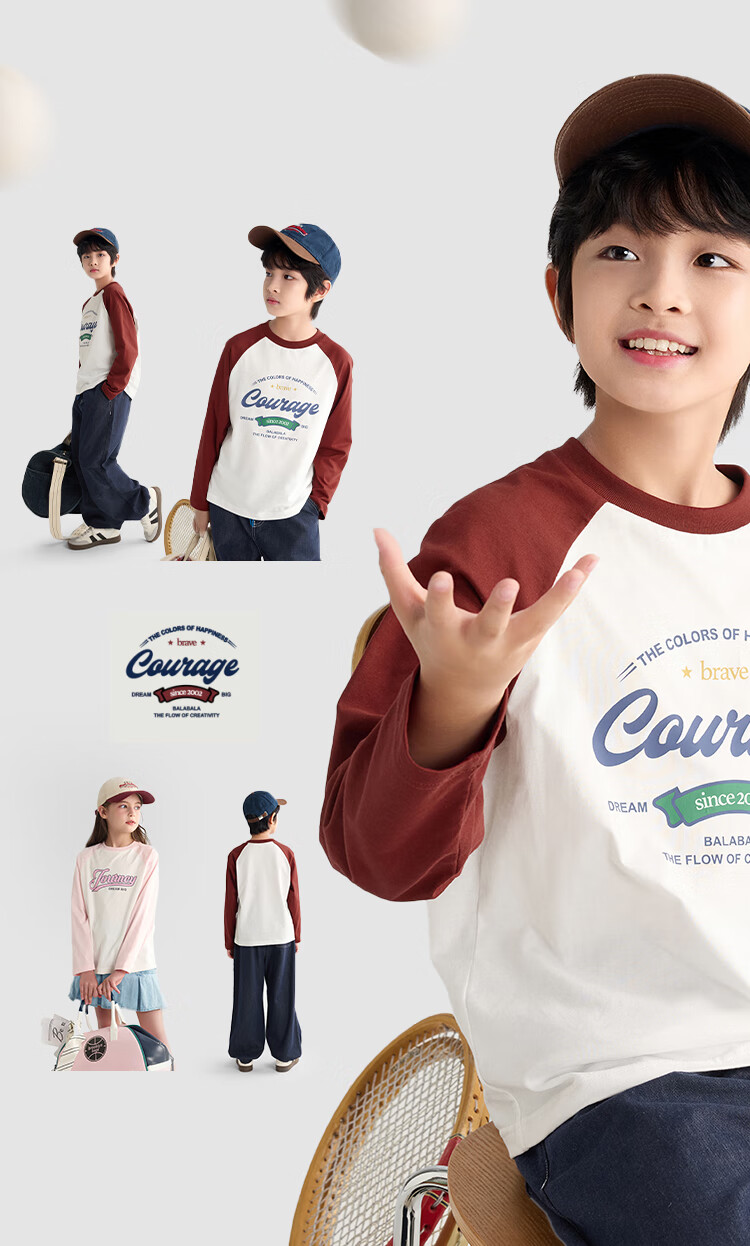 Balabala children's clothing children's long-sleeved T-shirt 2025 autumn boys and girls raglan sleeve quick-drying top 208325100208