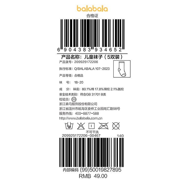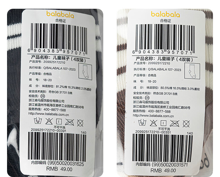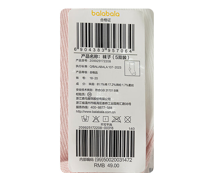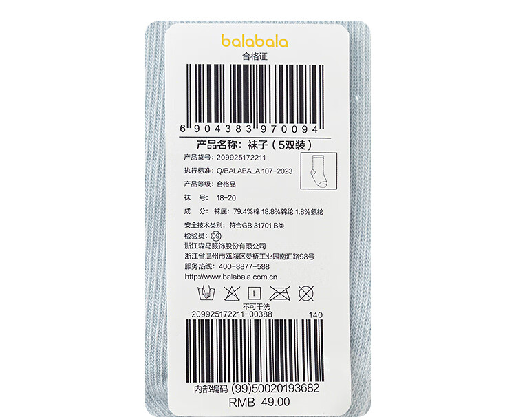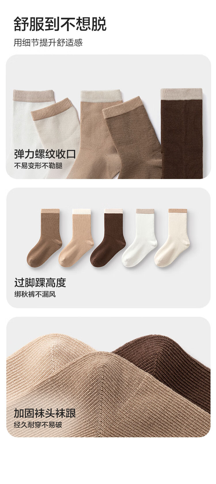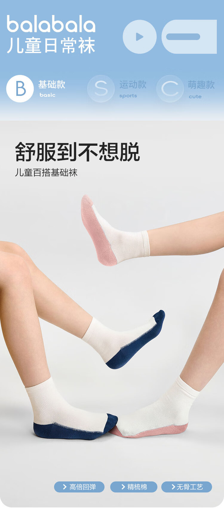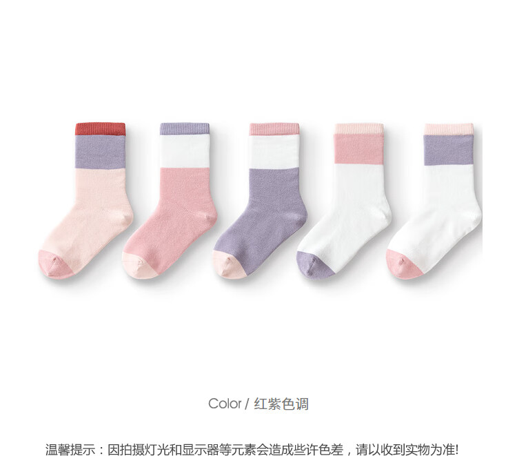 Balabala Children's Socks Boys' Mid-Tube Socks Girls' School Socks Bottoming Soft and Flexible Five Pairs 209925172211