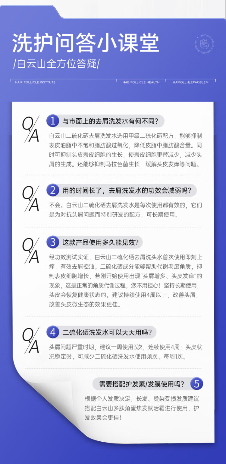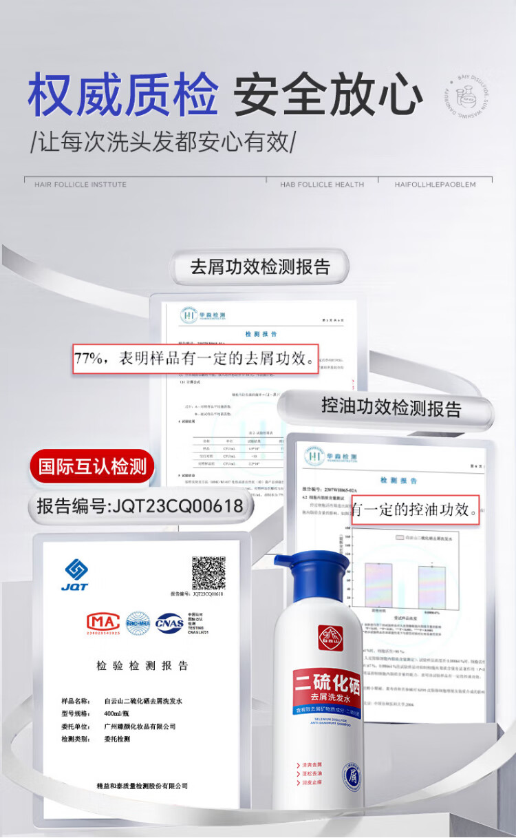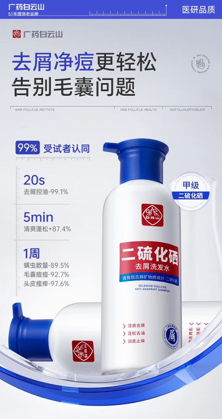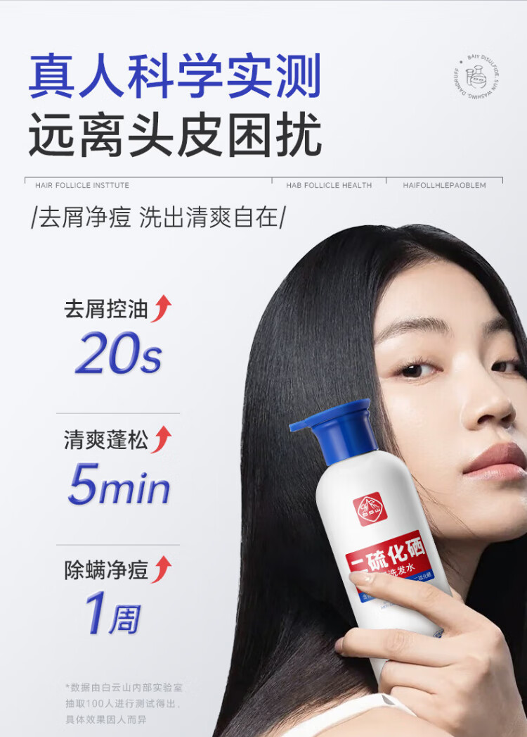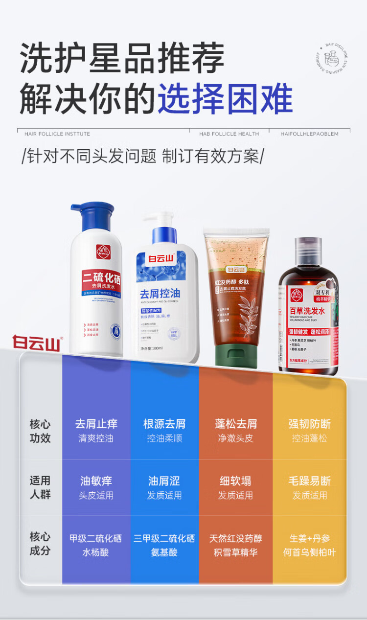 Baiyunshan selenium disulfide shampoo anti-dandruff, anti-itch, oil control, fluffy, refreshing, silicone-free shampoo for men and women 400ml