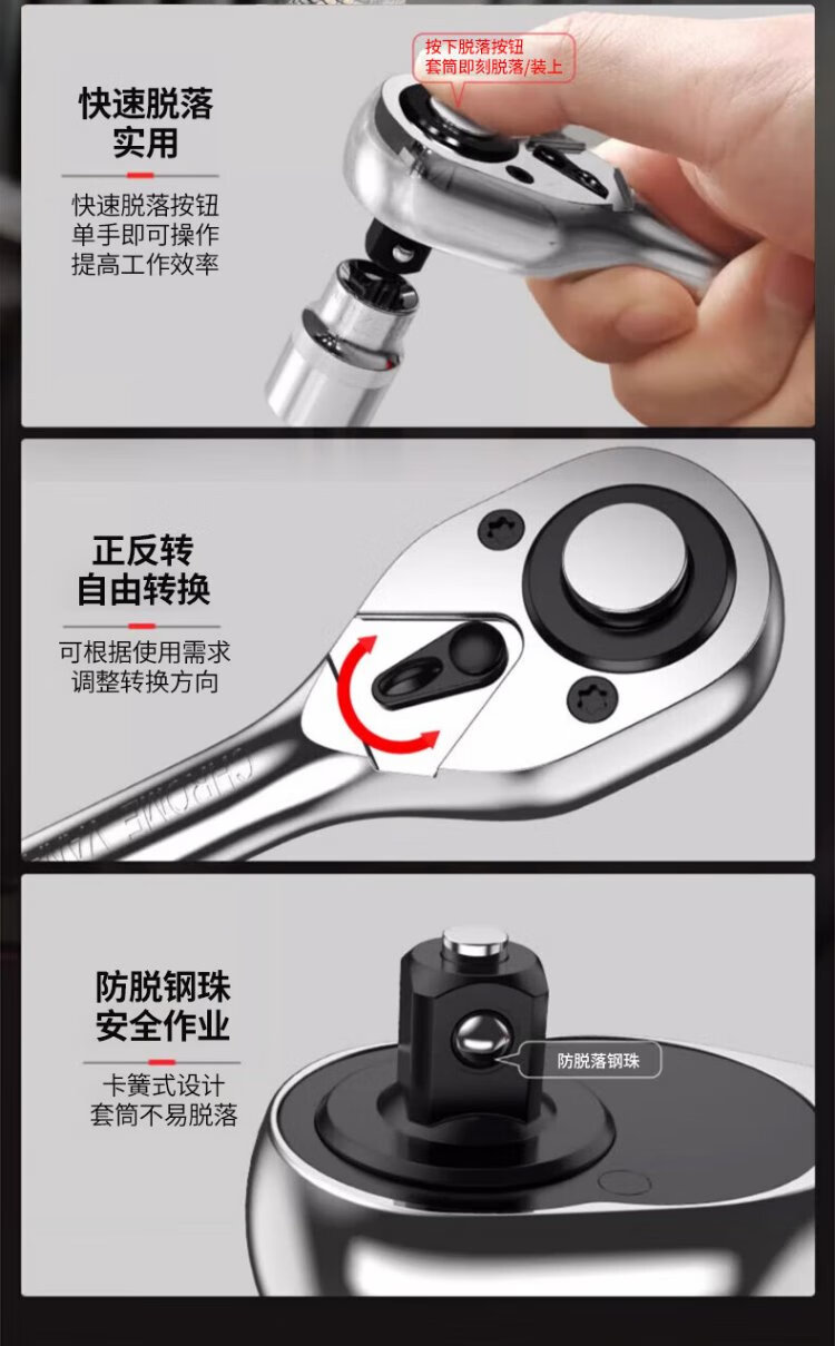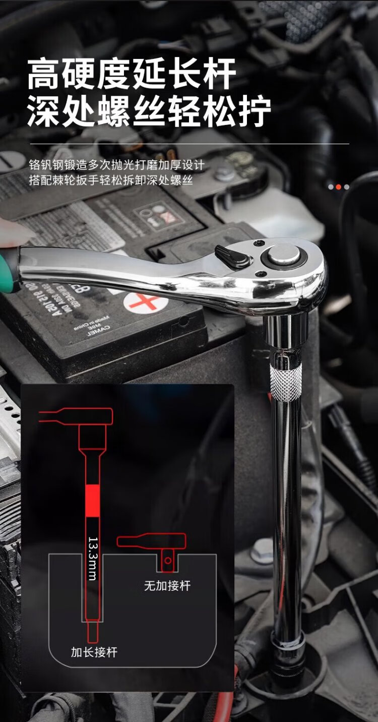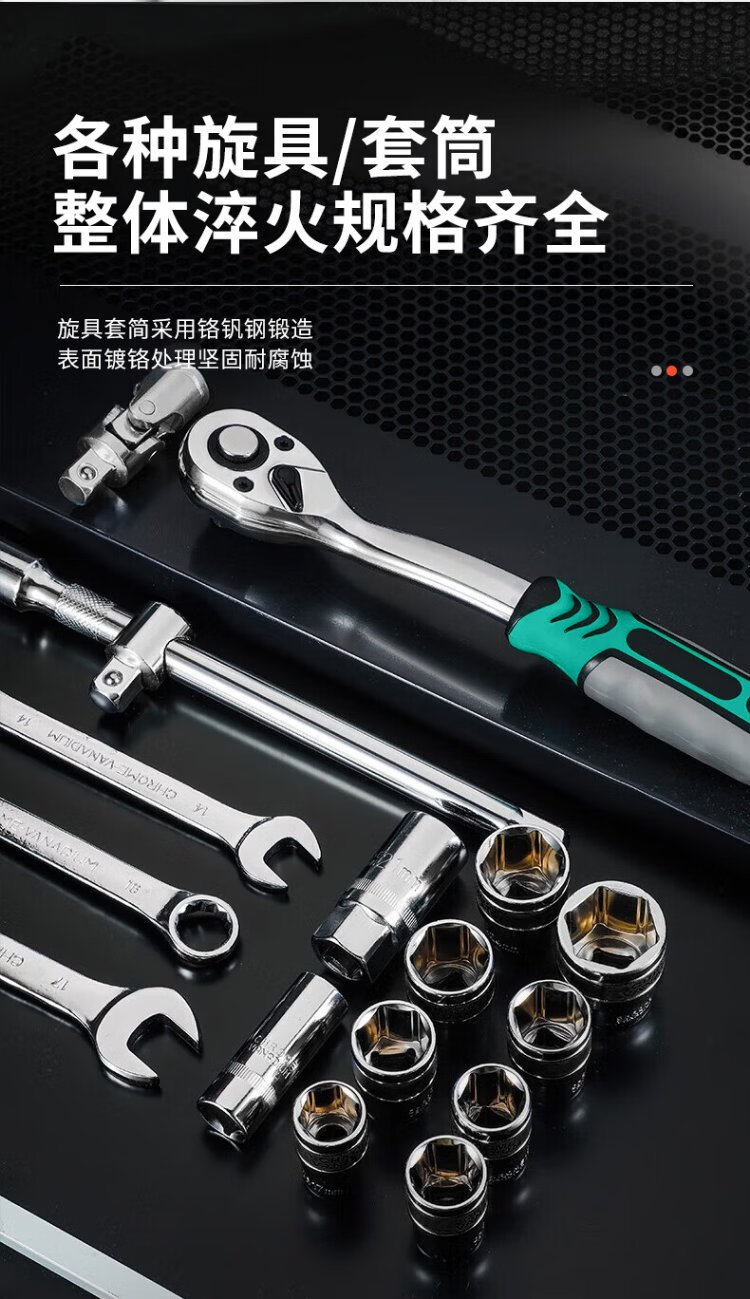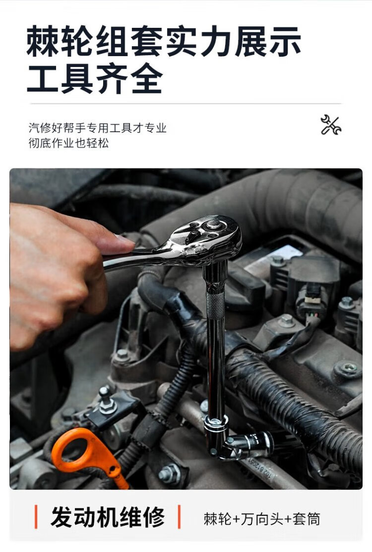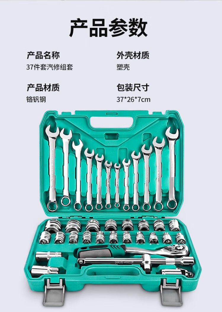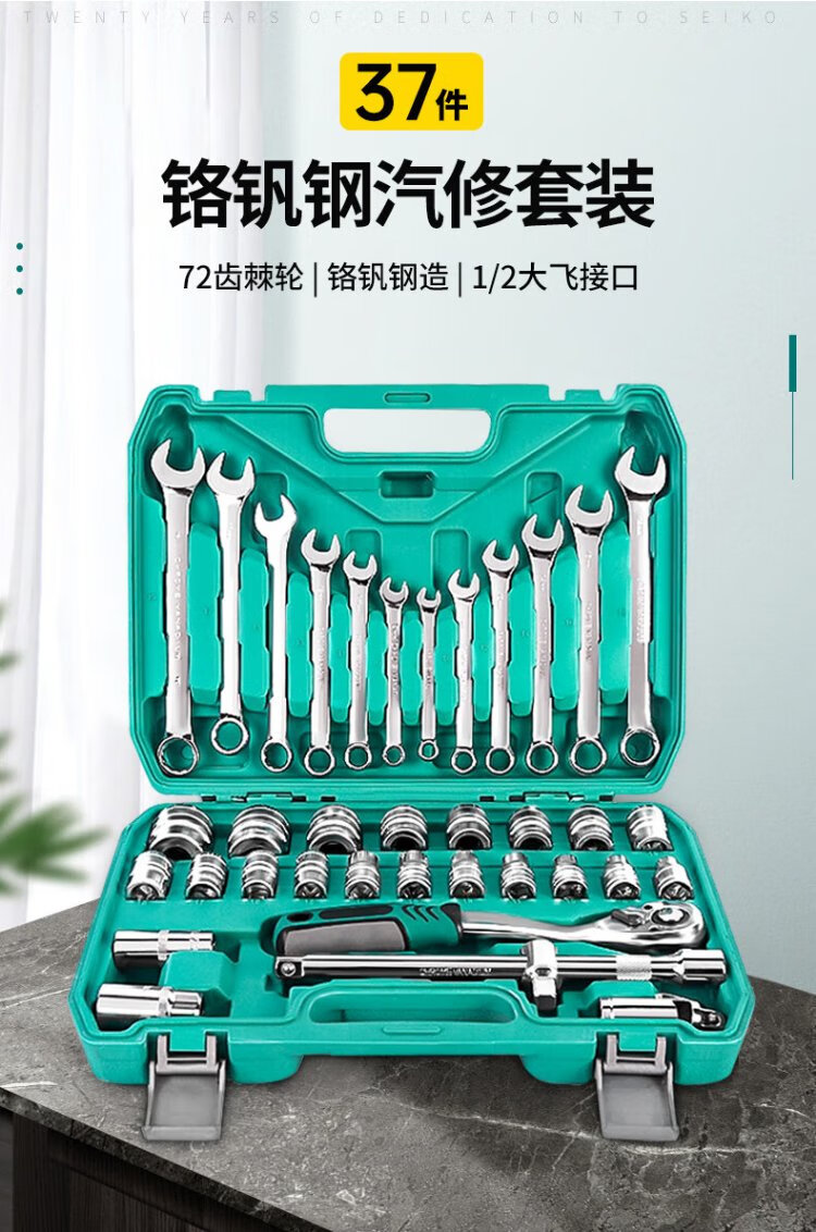 Fengshang 37-piece auto repair tool set 72-tooth ratchet quick wrench socket combination repair car home tool box