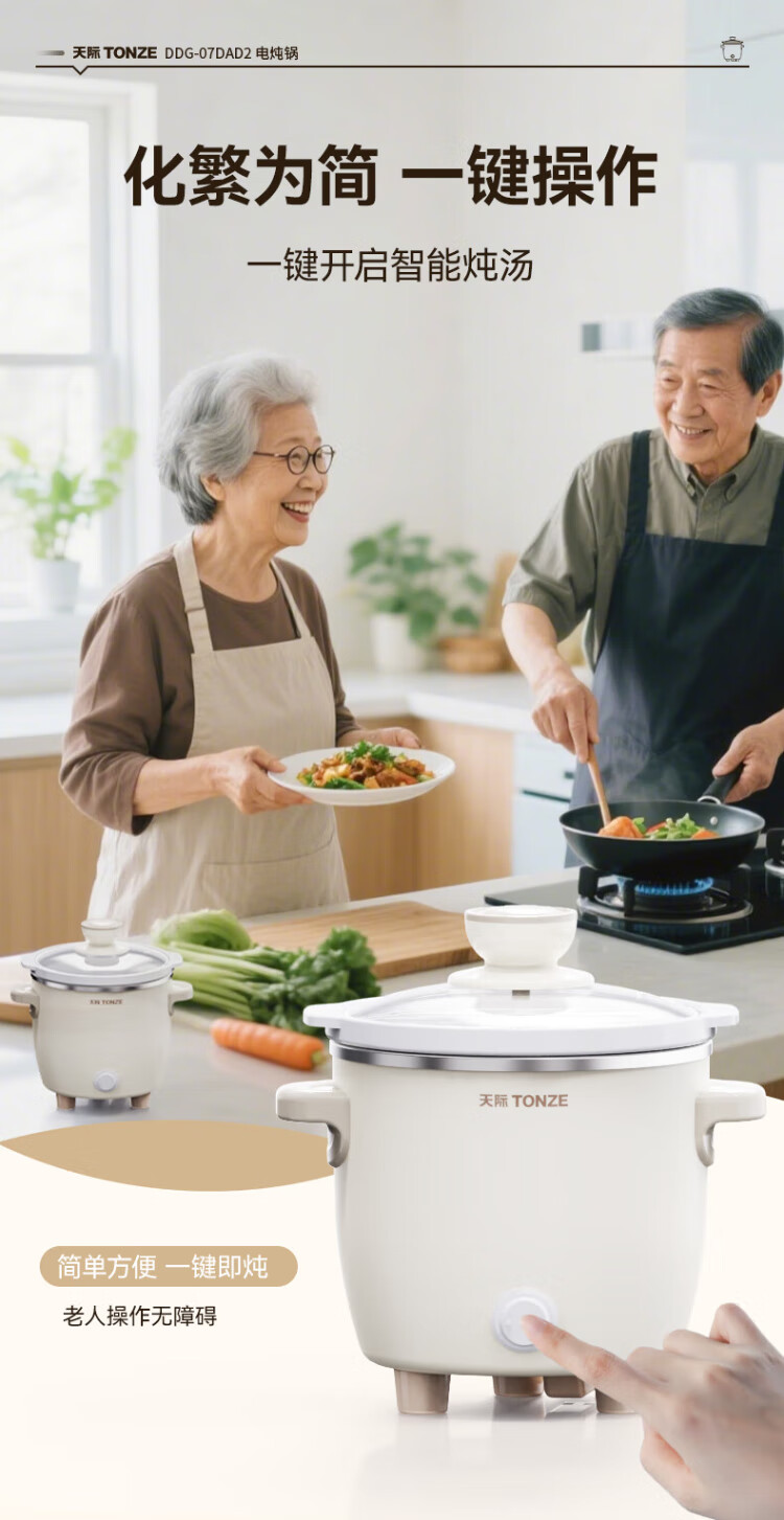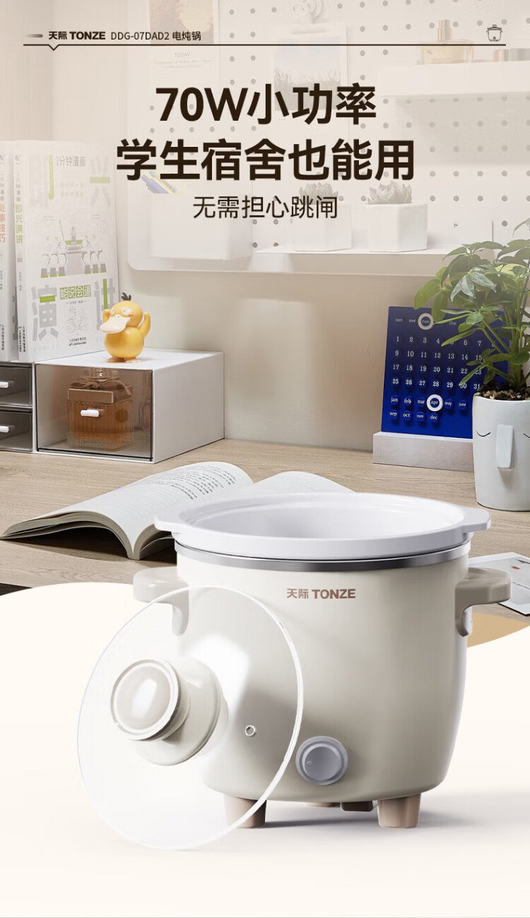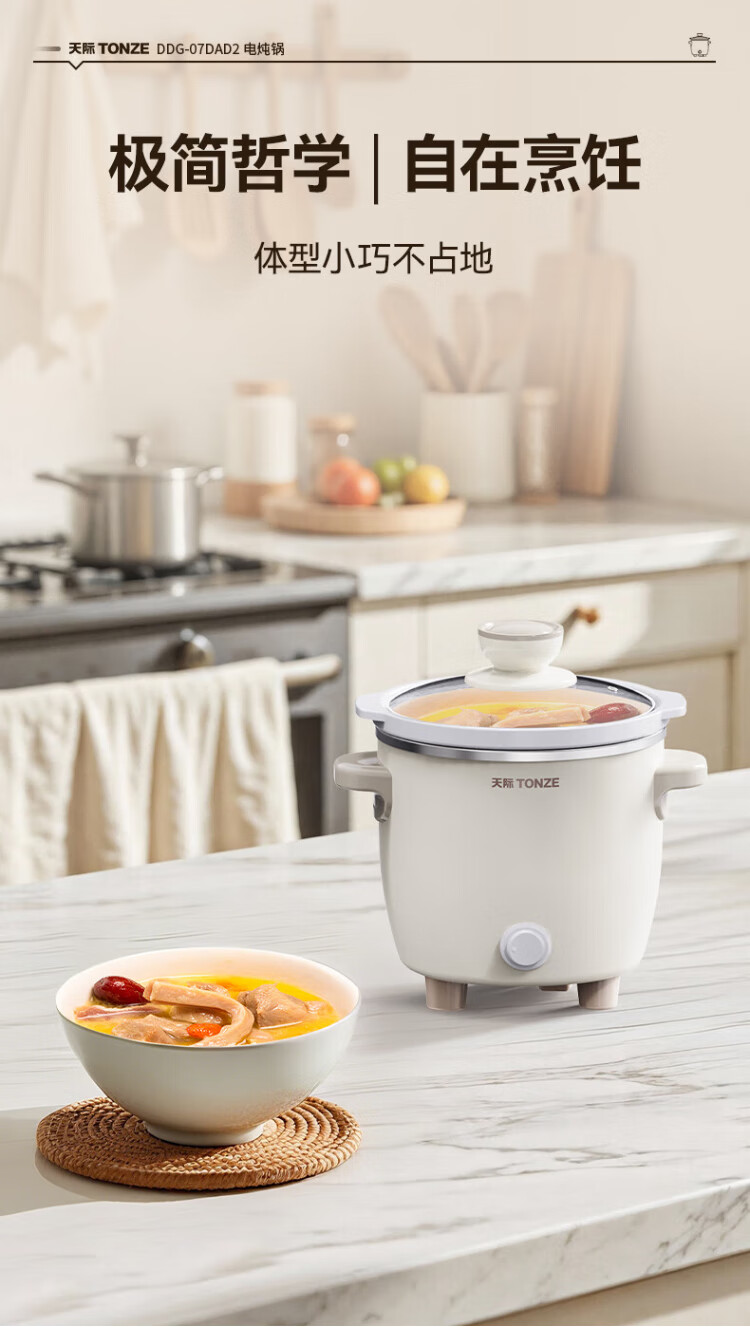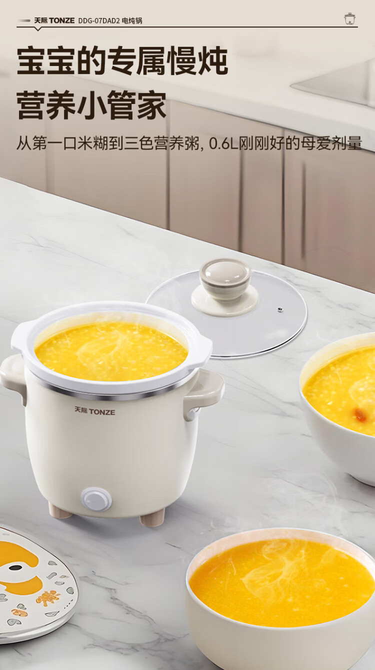 Tianji (TONZE) electric stew pot, electric stew pot, baby porridge pot, bb pot, soup pot, stew pot, porridge health pot, household push-button mini stew pot DDG-07DAD2 0.6 liters