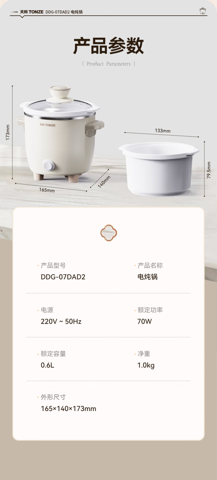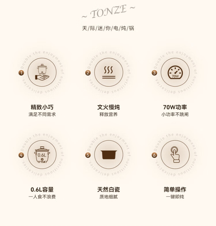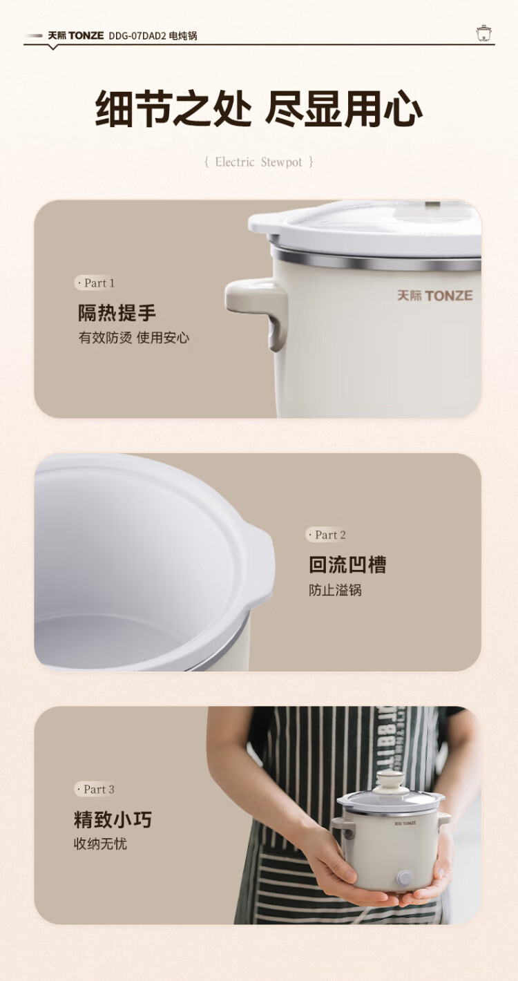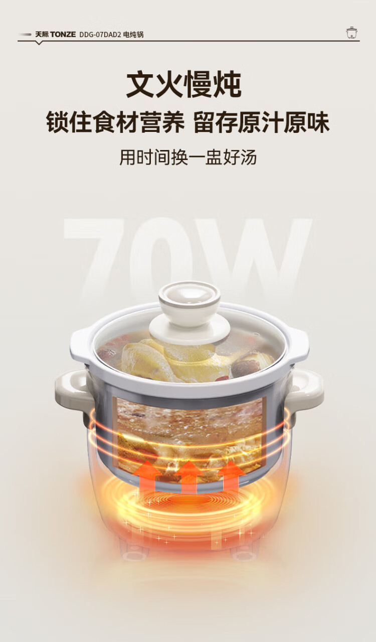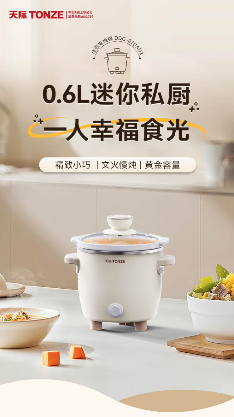 Tianji (TONZE) electric stew pot, electric stew pot, baby porridge pot, bb pot, soup pot, stew pot, porridge health pot, household push-button mini stew pot DDG-07DAD2 0.6 liters