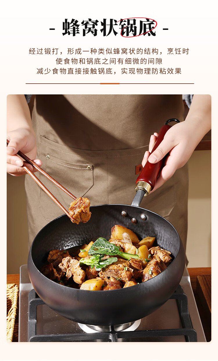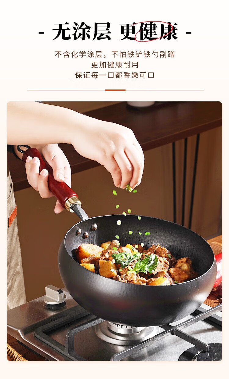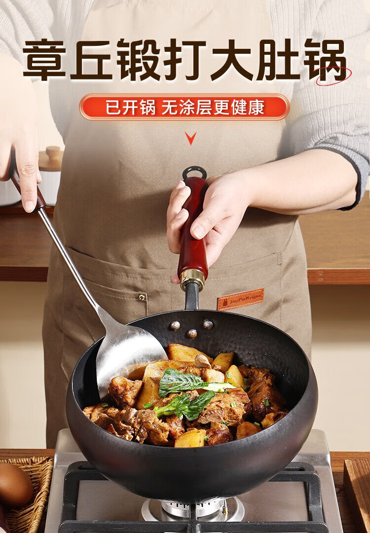 Yan Blacksmith Zhangqiu big belly pot wok iron pot uncoated household cooking pot flat bottom stew pot forged open pot 26cm