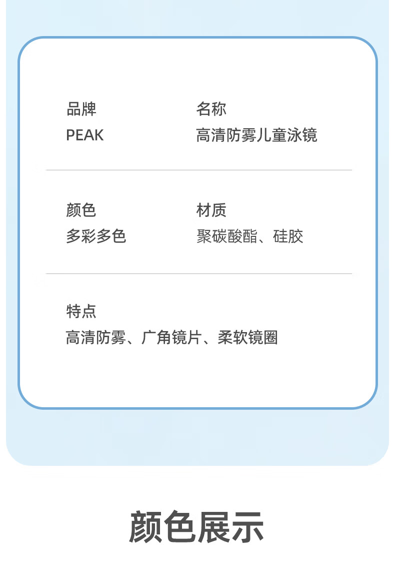 Peak children's swimming goggles for boys and girls high-definition waterproof and anti-fog large-frame swimming goggles equipment swimming goggles and swimming cap set