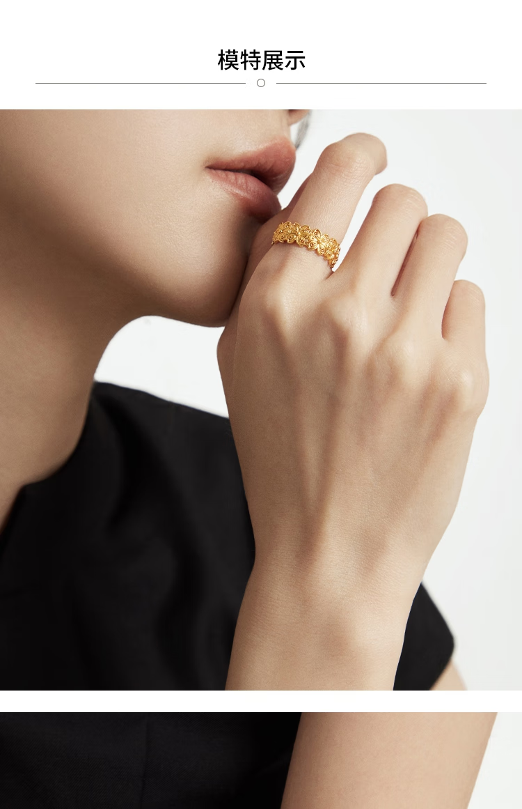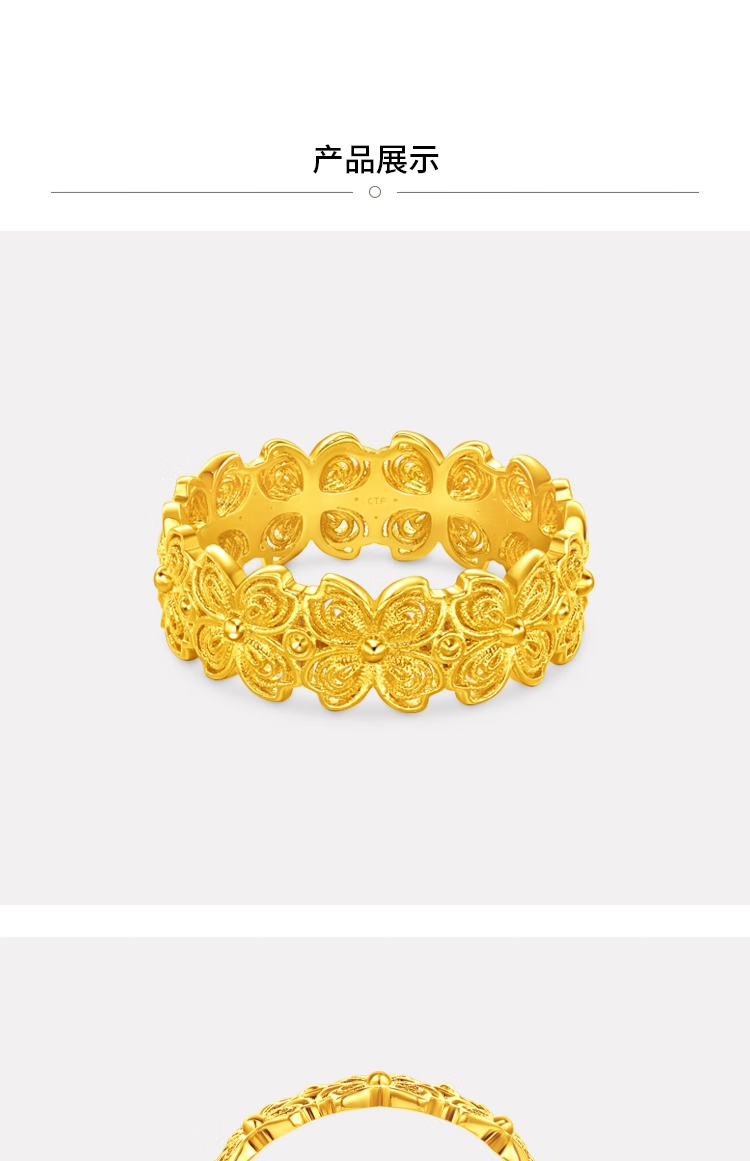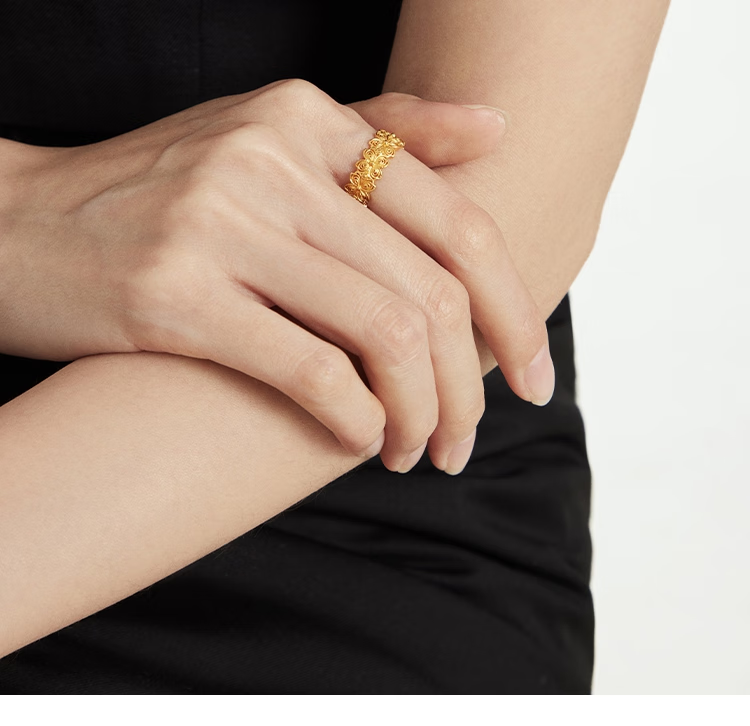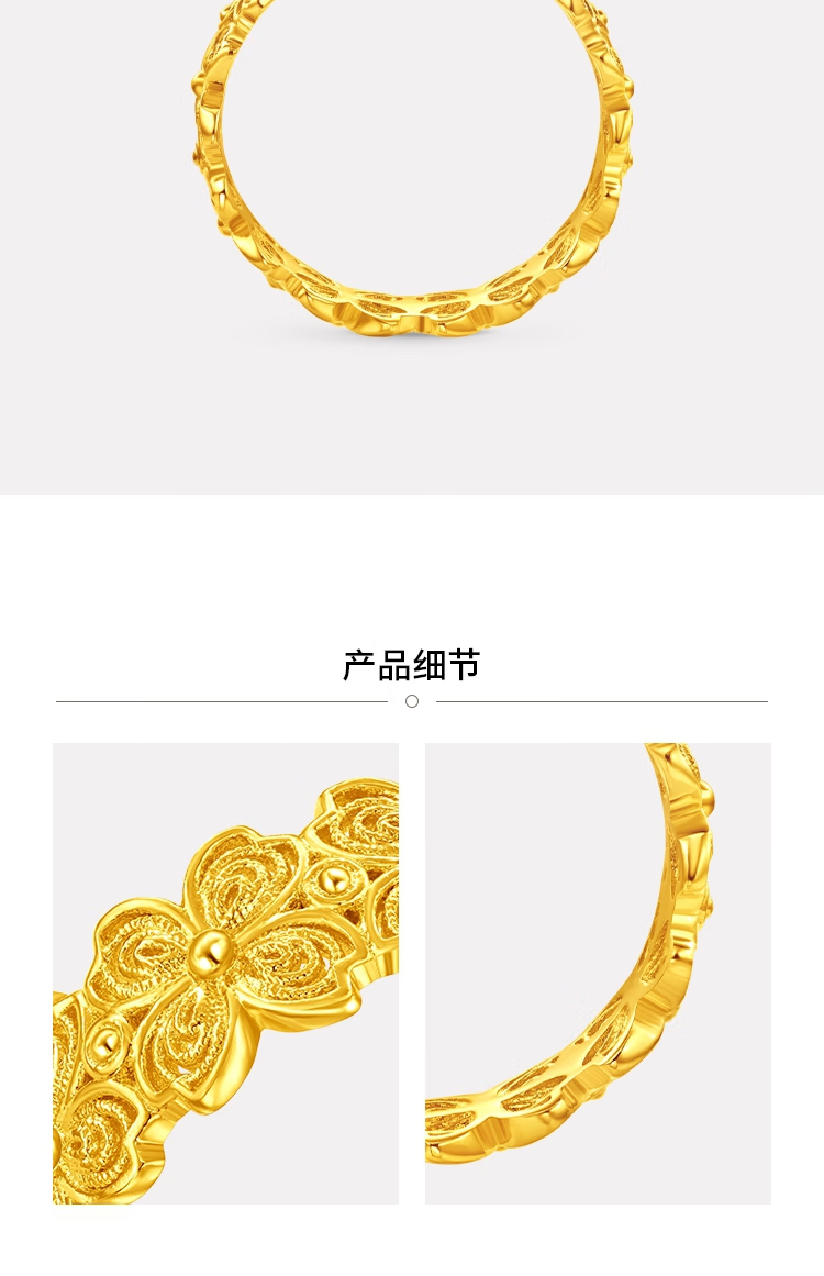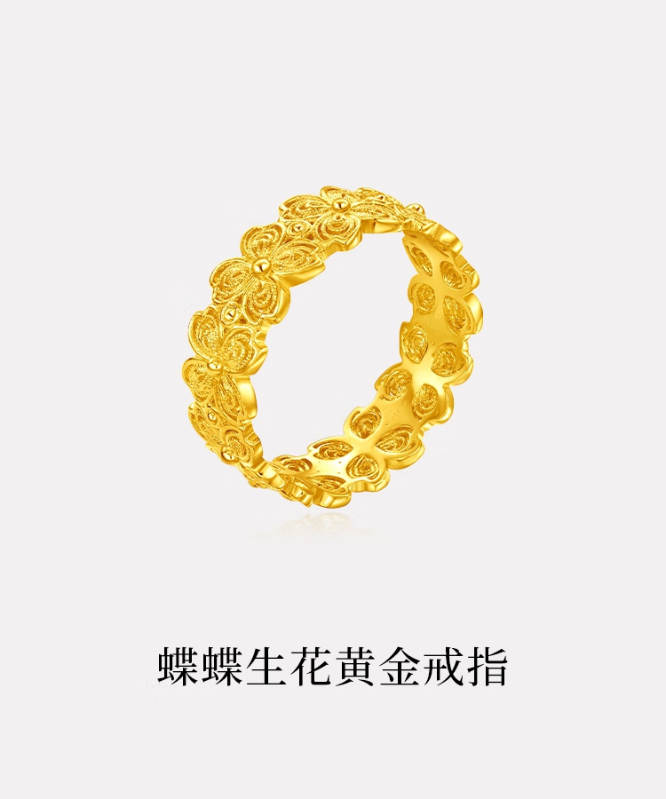 Chow Tai Fook butterfly flower solid gold four-leaf clover gold ring (labor cost 520) No. 10, about 4.95g EOF1414