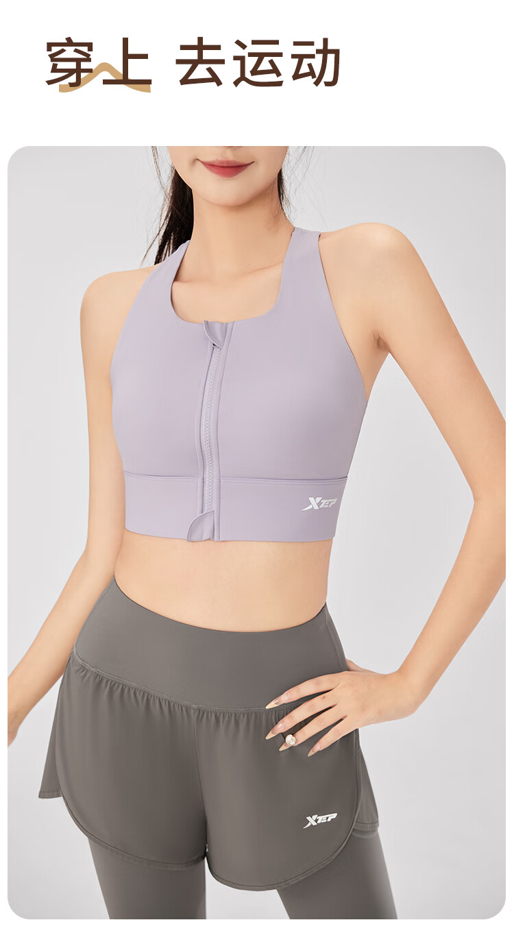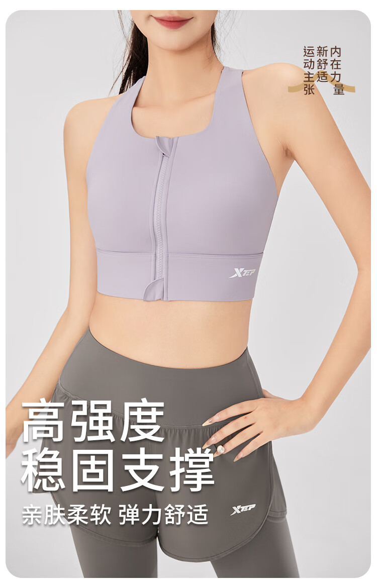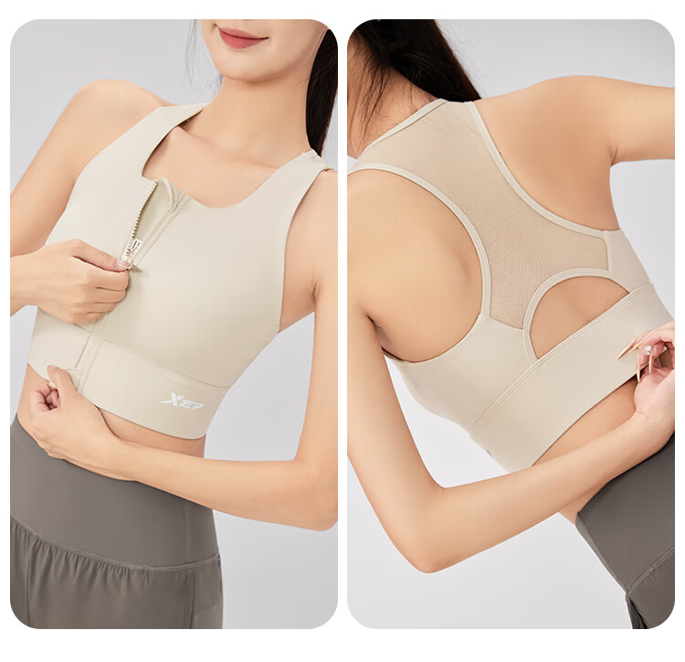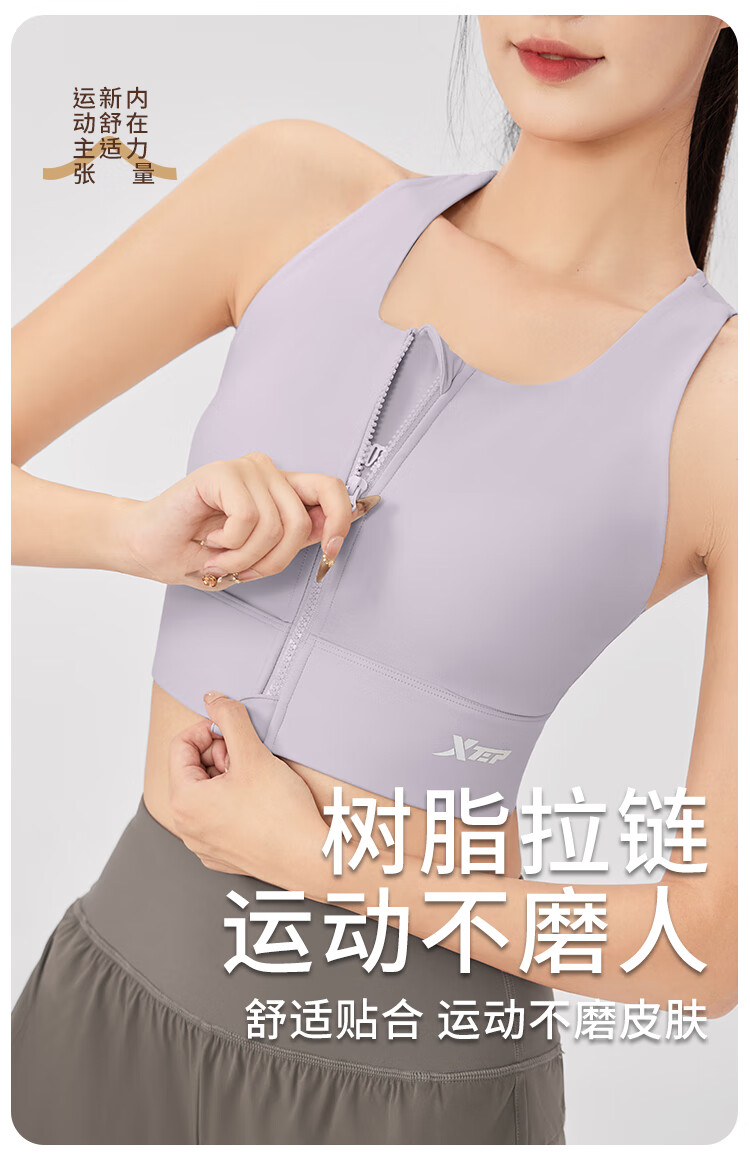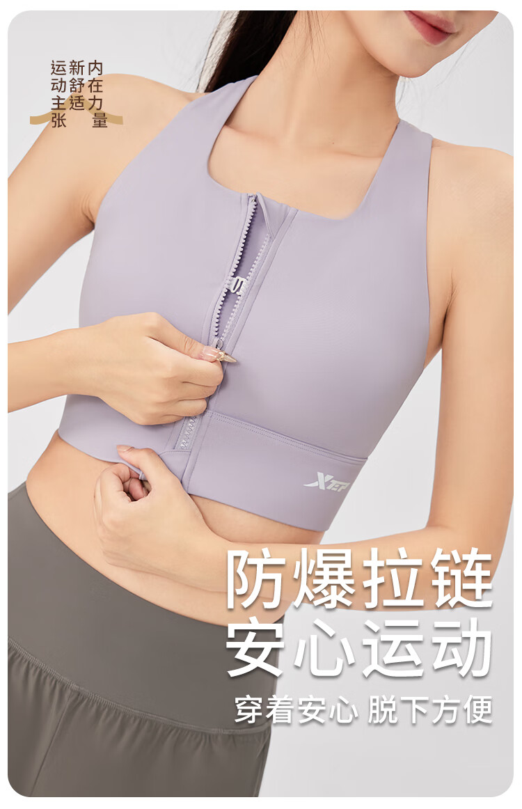 XTEP sports bra women's front zipper anti-shock and anti-sagging running fitness bra 2025 new beautiful back yoga vest for women